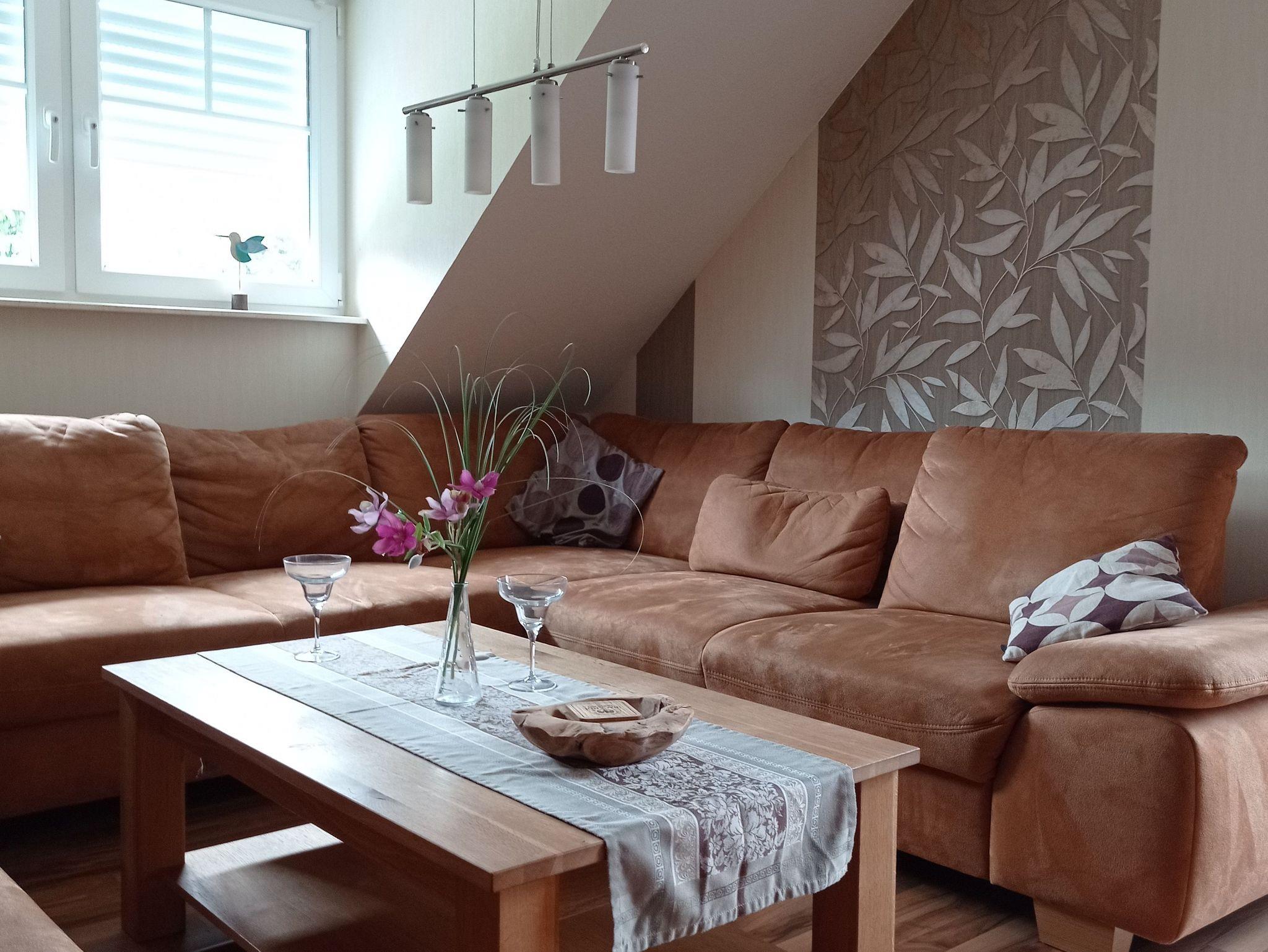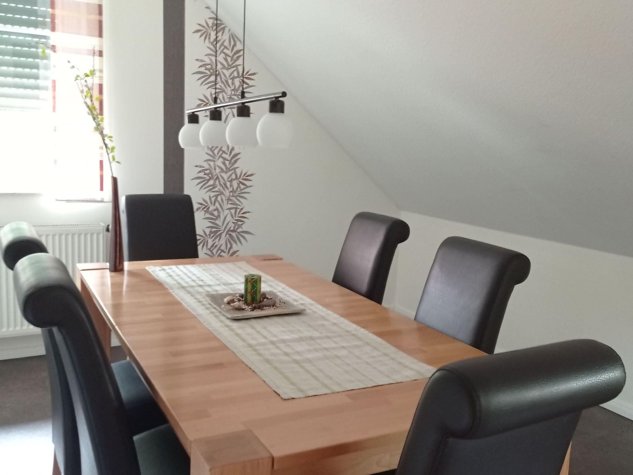 Die Ferienwohnung ist modern eingerichtet und voll ausgestattet. Auf 120qm finden maximal 4 Erwachsene und 1 Kleinkind eine gemütliche Unterkunft zum Wohlfühlen vor. Der große Balkon lädt zum Verweilen ein. Bettwäsche, Handtücher und WLAN sind vorhanden. Die Oberwohnung mit Badewanne liegt ruhig, aber zentral.