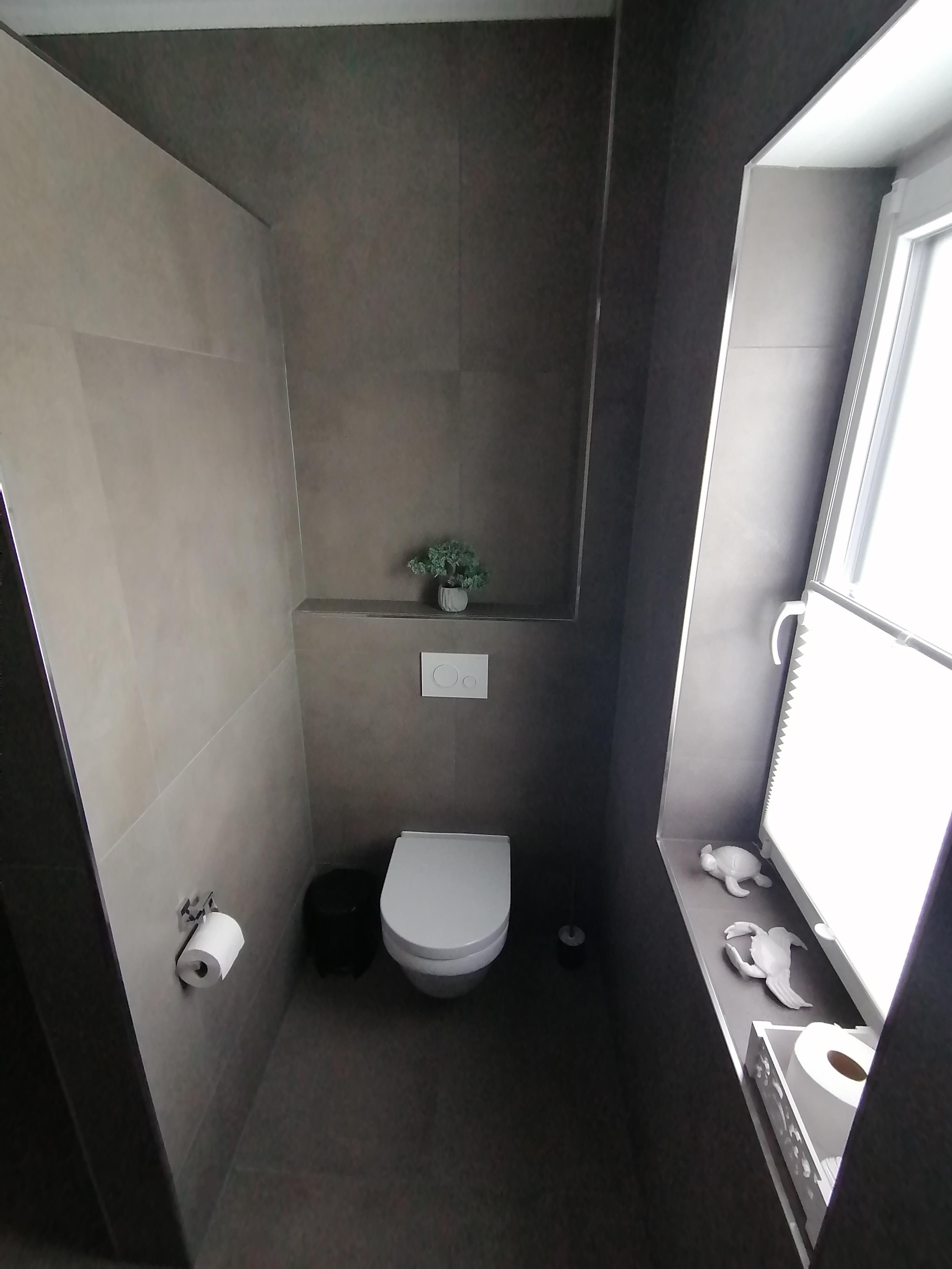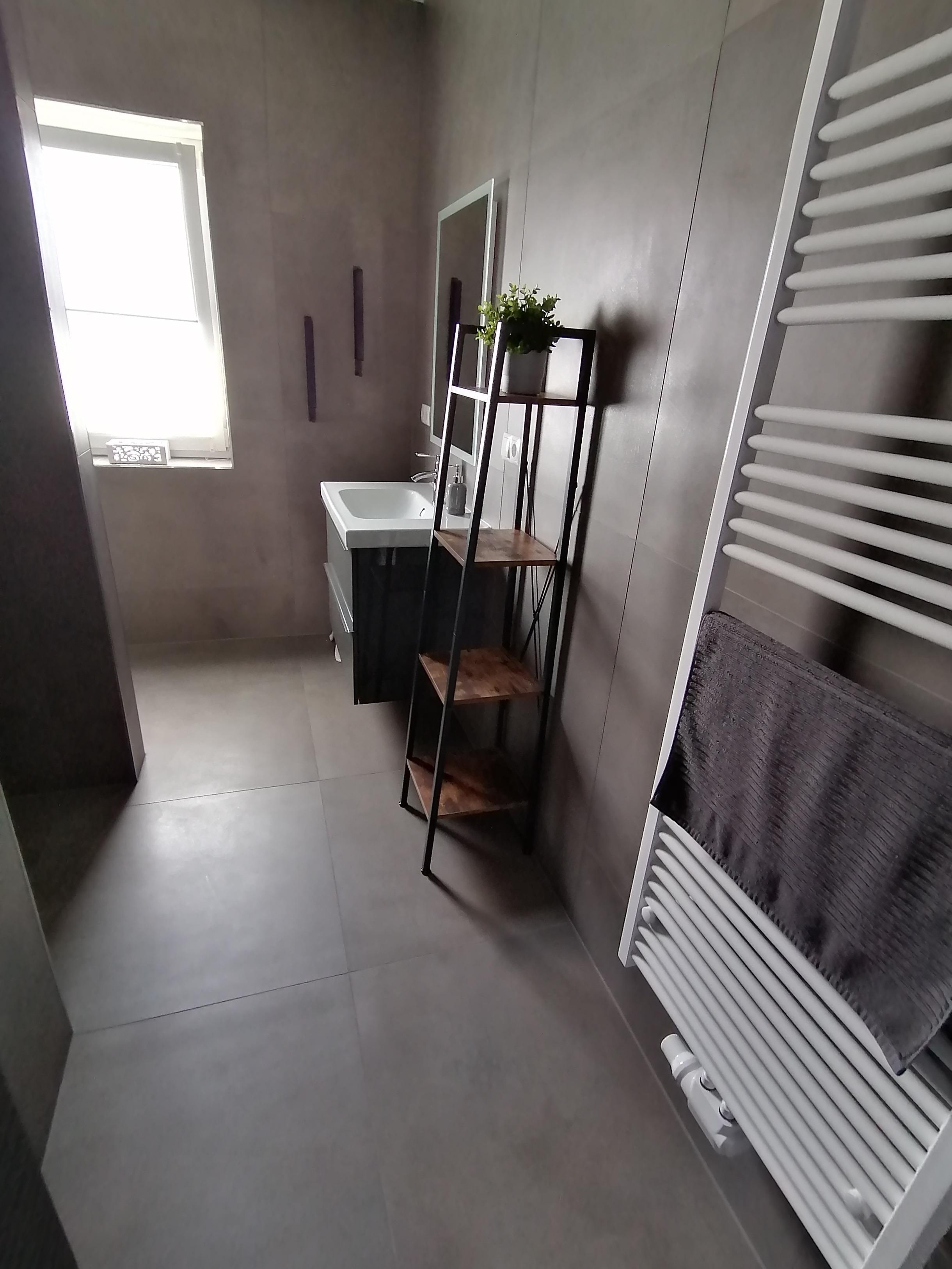 Im Bad befindet sich eine 1m Breite ebenerdige Dusche, die auch für körperlich eingeschränkte Personen gut zugänglich ist.