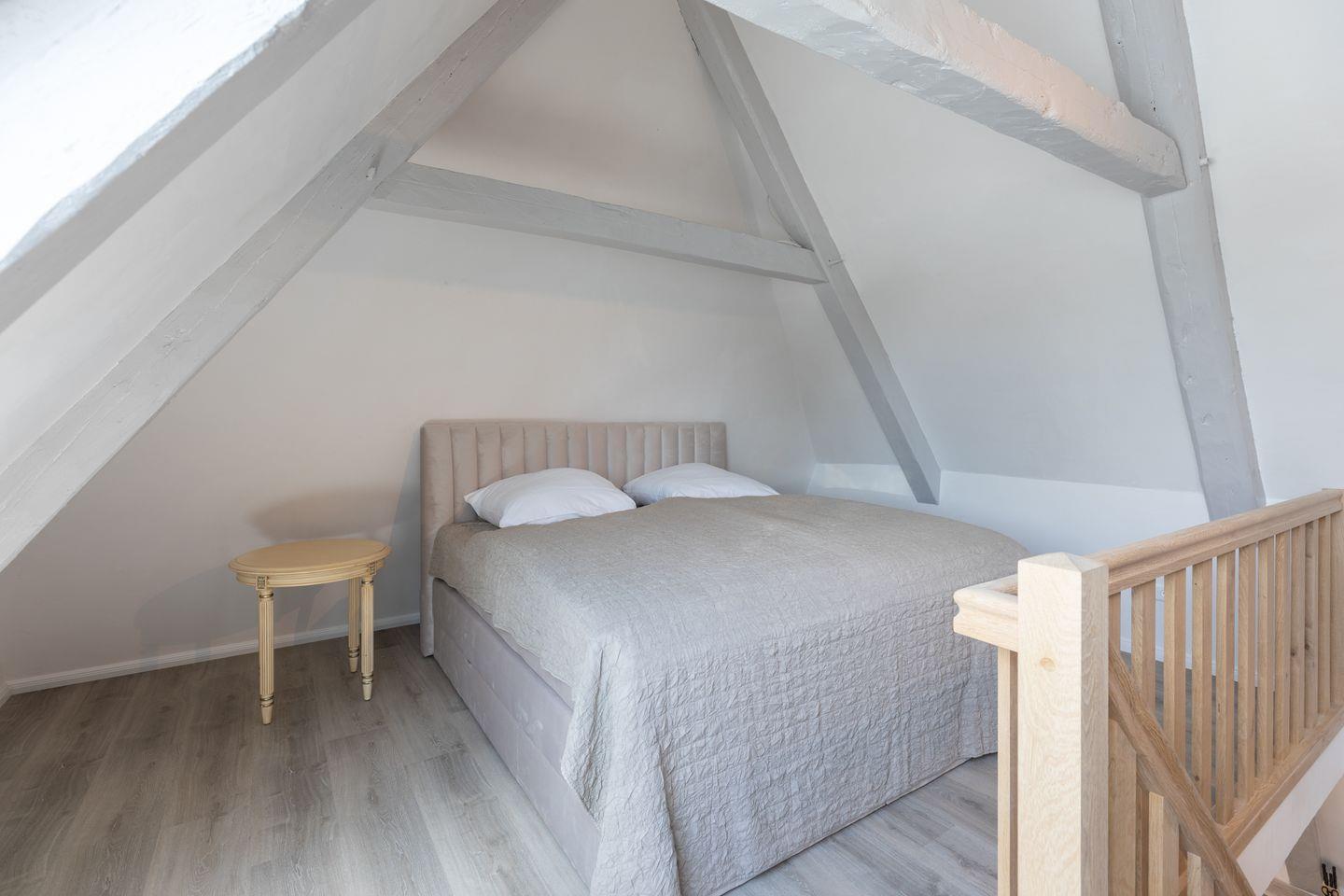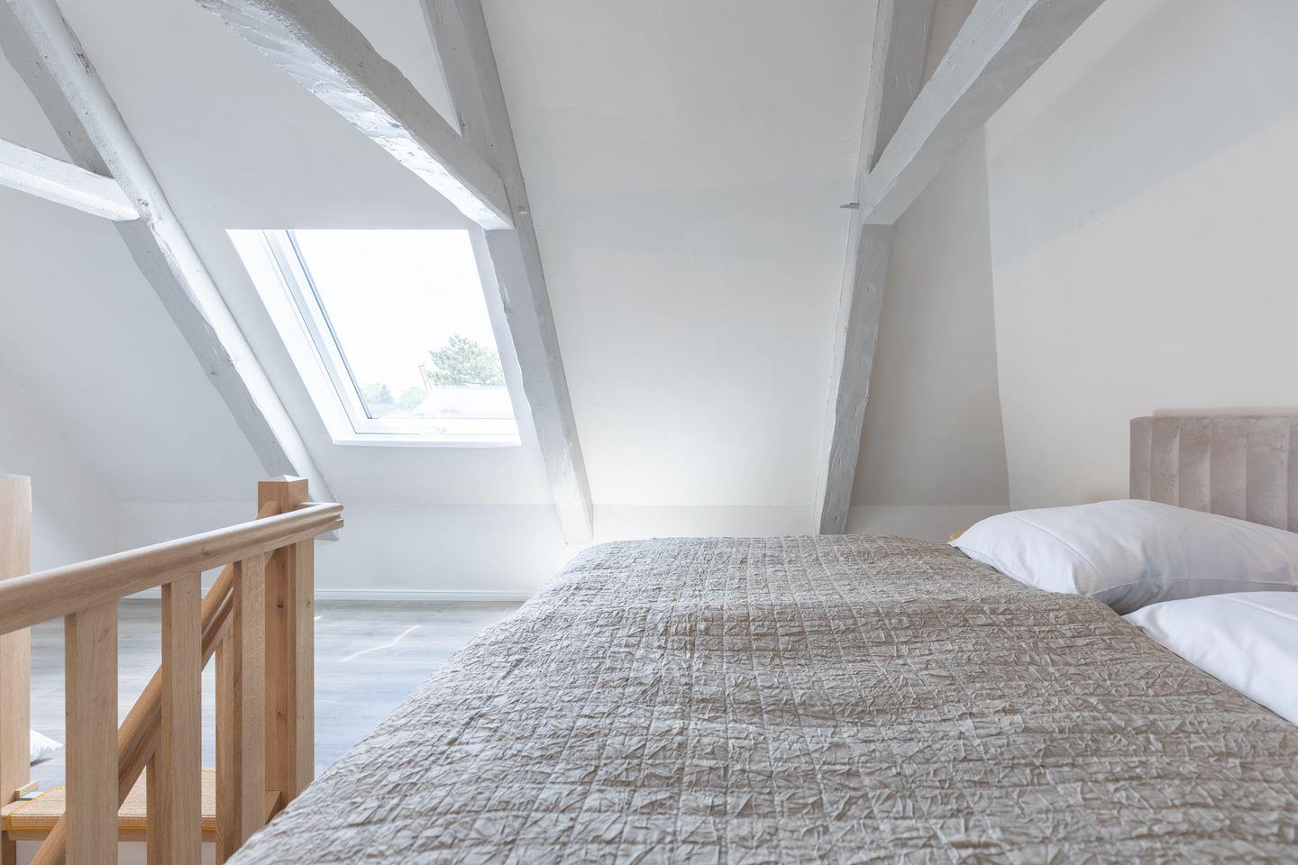 Das offene Wohnzimmer lädt mit einem Flachbild-TV zum Verweilen ein. Die Wohnung verfügt über insgesamt drei Schlafzimmer, wovon zwei mit einem bequemen Boxspring-Bett ausgestattet sind, eines mit einem ausziehbaren Kojenbett (160 x 200) . Das gemütliche Schlafzimmer im Obergeschoss ist in einer Art Galerie (Spitzboden) und Sie erreichen es über eine Holztreppe. Allen Schlafräume sind mit Fenster-Verdunkelungen ausgestattet.