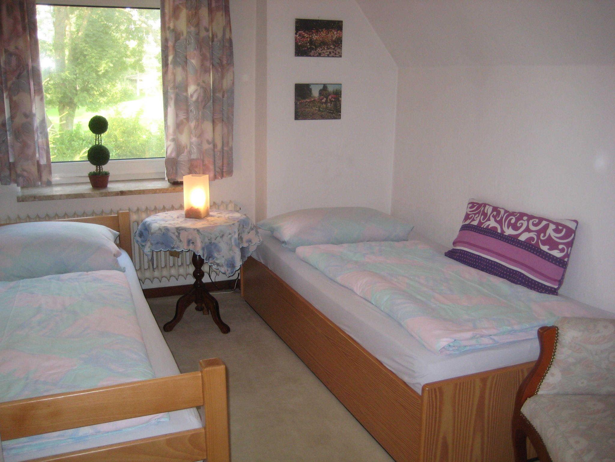 Die Nichtraucherzimmer werden nur an gemeinsam reisende Gäste abgegeben. Ein Zimmer mit Doppelbett und ein Zimmer mit 2 Einzelbetten (90x200 cm), Babybett bei Bedarf. Großzügiges Duschbad zur Alleinnutzung. Reisen nur 2 Personen, kann das 2. Schlafzimmer zum getrennten Schlafen hinzugebucht werden. Unser reichhaltiges Frühstück servieren wir Ihnen im Wintergarten. Dort befindet sich auch ein Kühlschrank mit Gefrierfach, ein Mikrowellengerät und eine Kaffeemaschine nebst ausreichendem Geschirr. So können Sie sich kleine Mahlzeiten selbst bereiten. SAT-TV und Radio sind vorhanden.