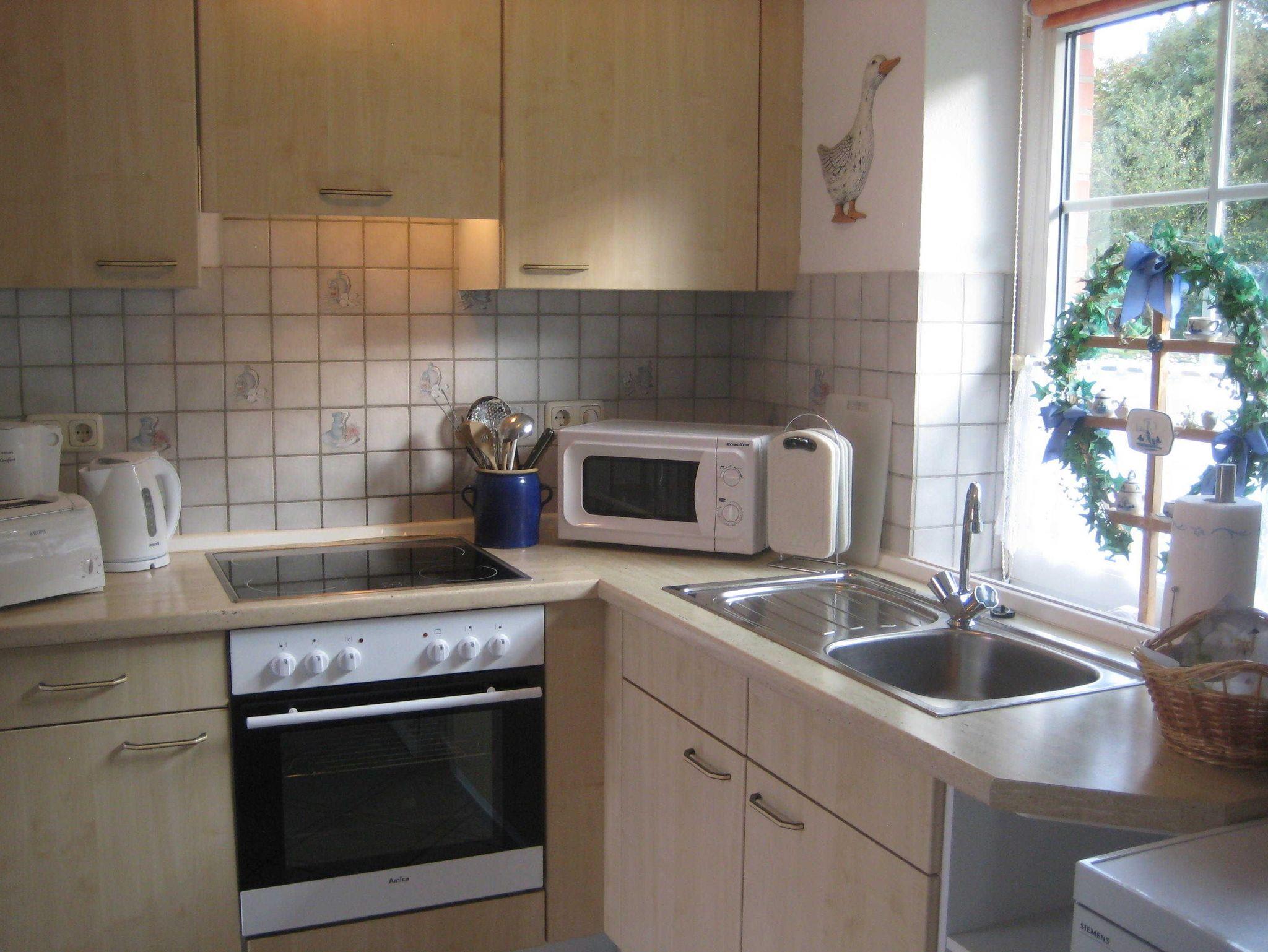 • 2. Küche als offene Küchenzeile mit vollständiger Ausstattung, Herd mit Backofen. Selbstverständlich sind Kleingeräte wie Kaffeemaschine, Wasserkocher und Toaster vorhanden.