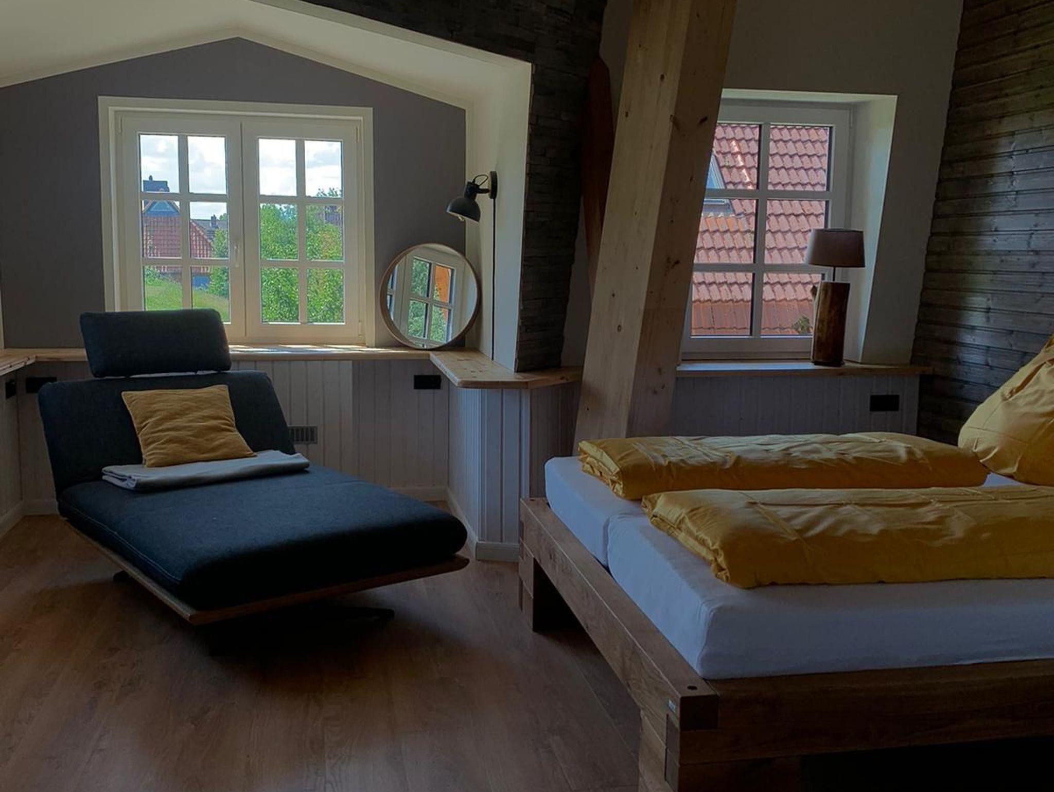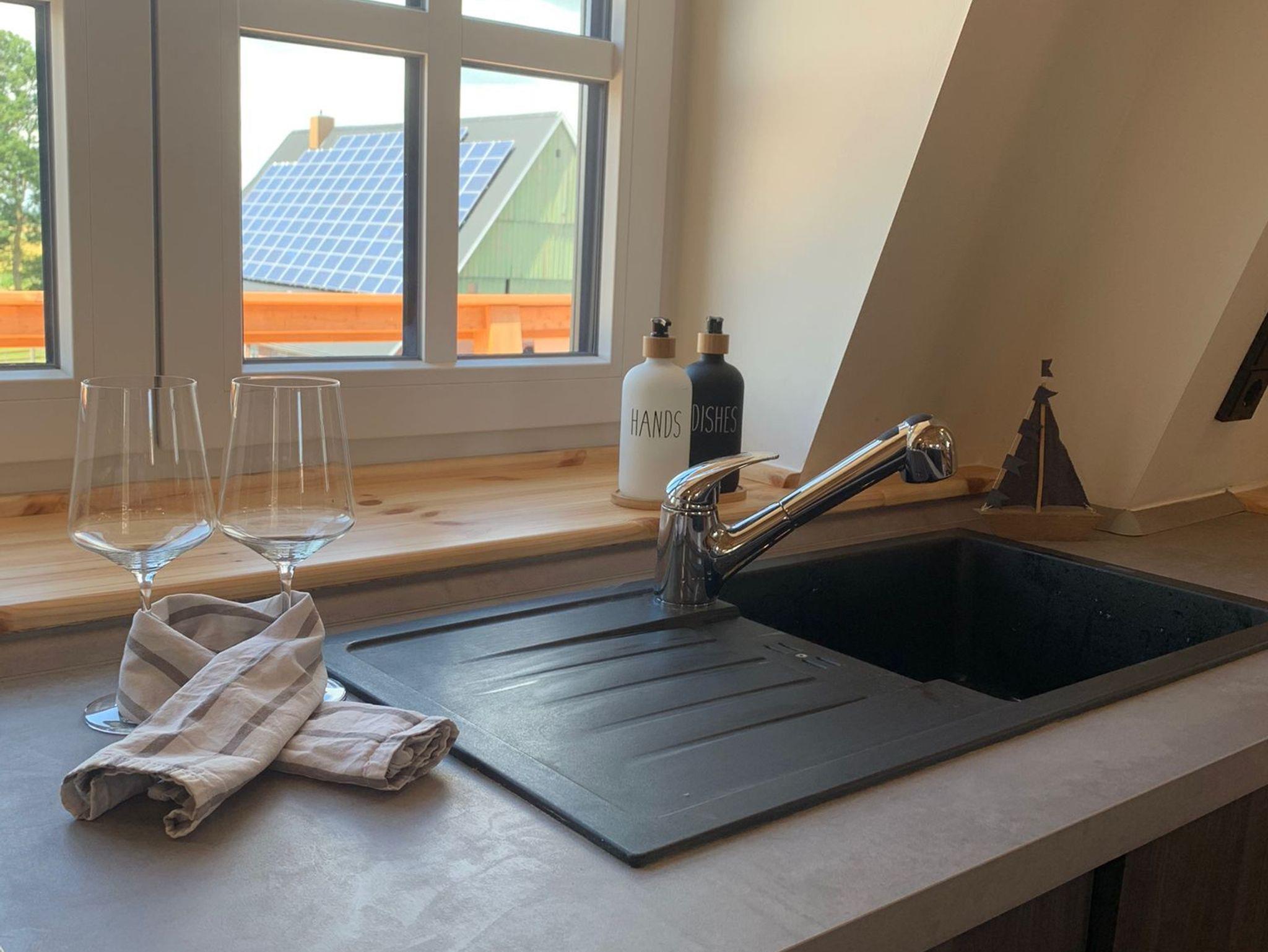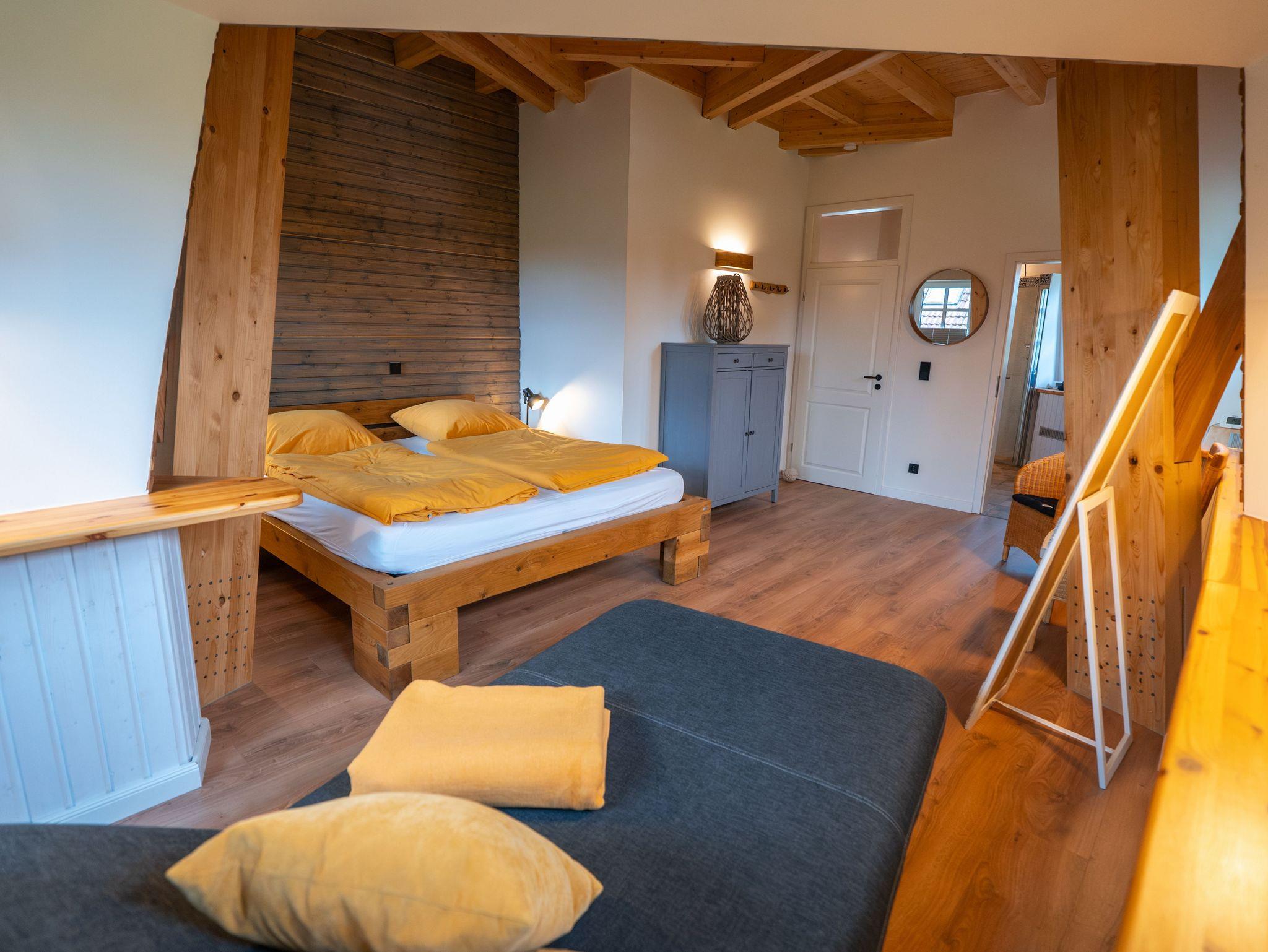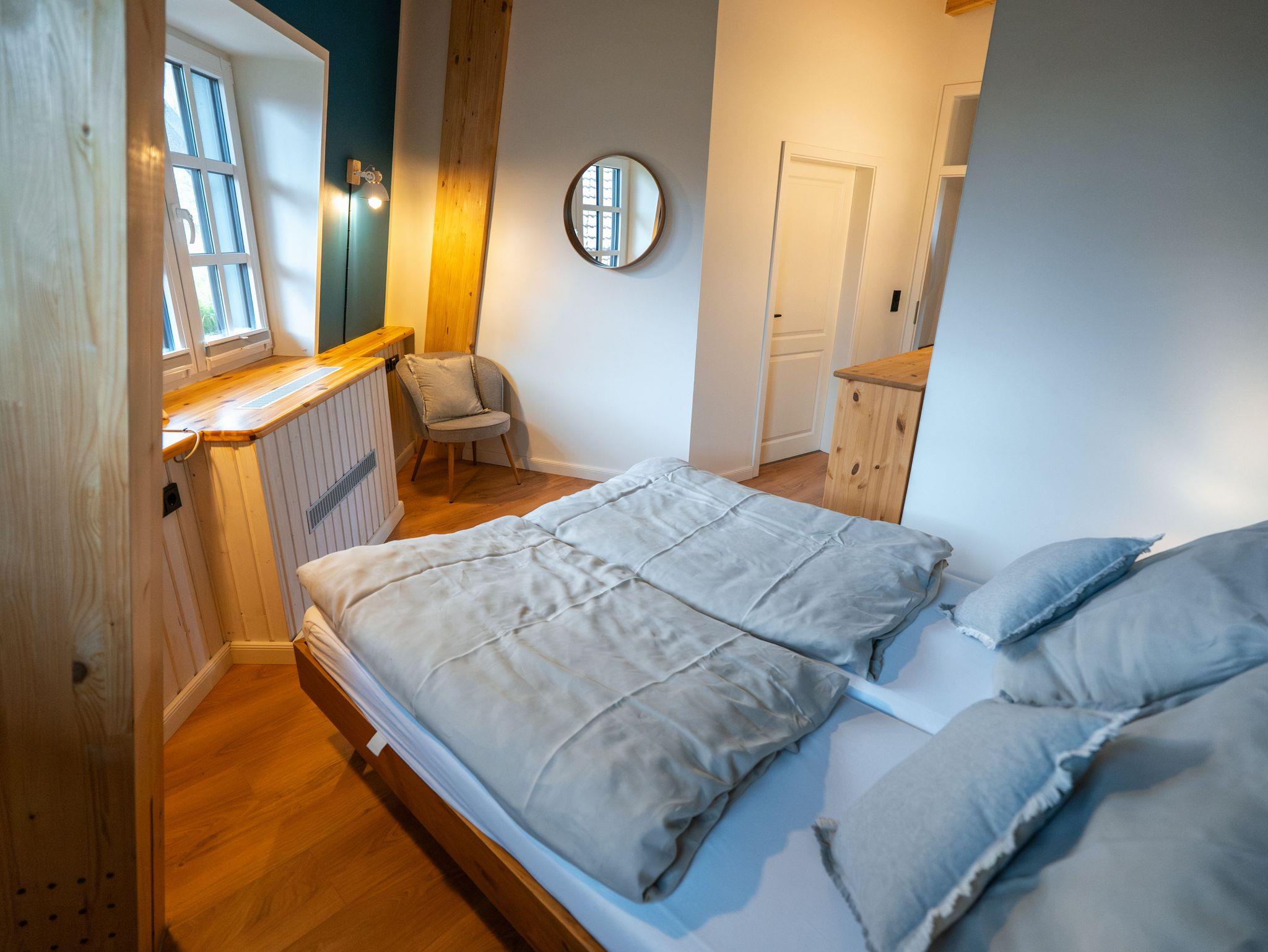 Im Inneren befindet sich eine moderne Ferienwohnung mit bis zu 5 Schlafmöglichkeiten. Es handelt sich um 2 separate Schlafzimmer und 1 Zustellbett in einem der Schlafzimmer.