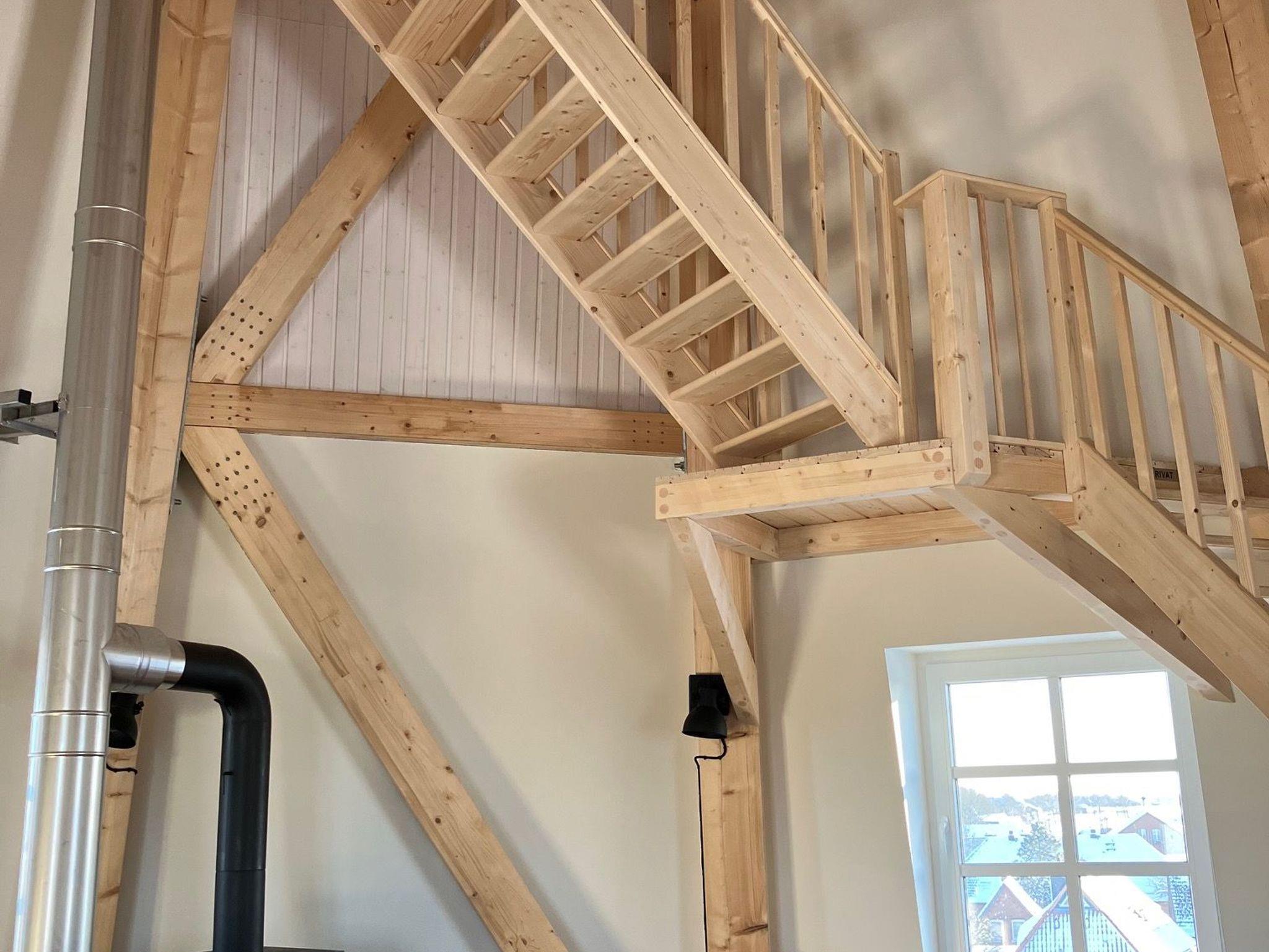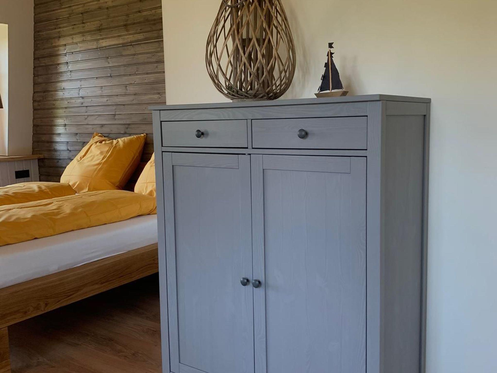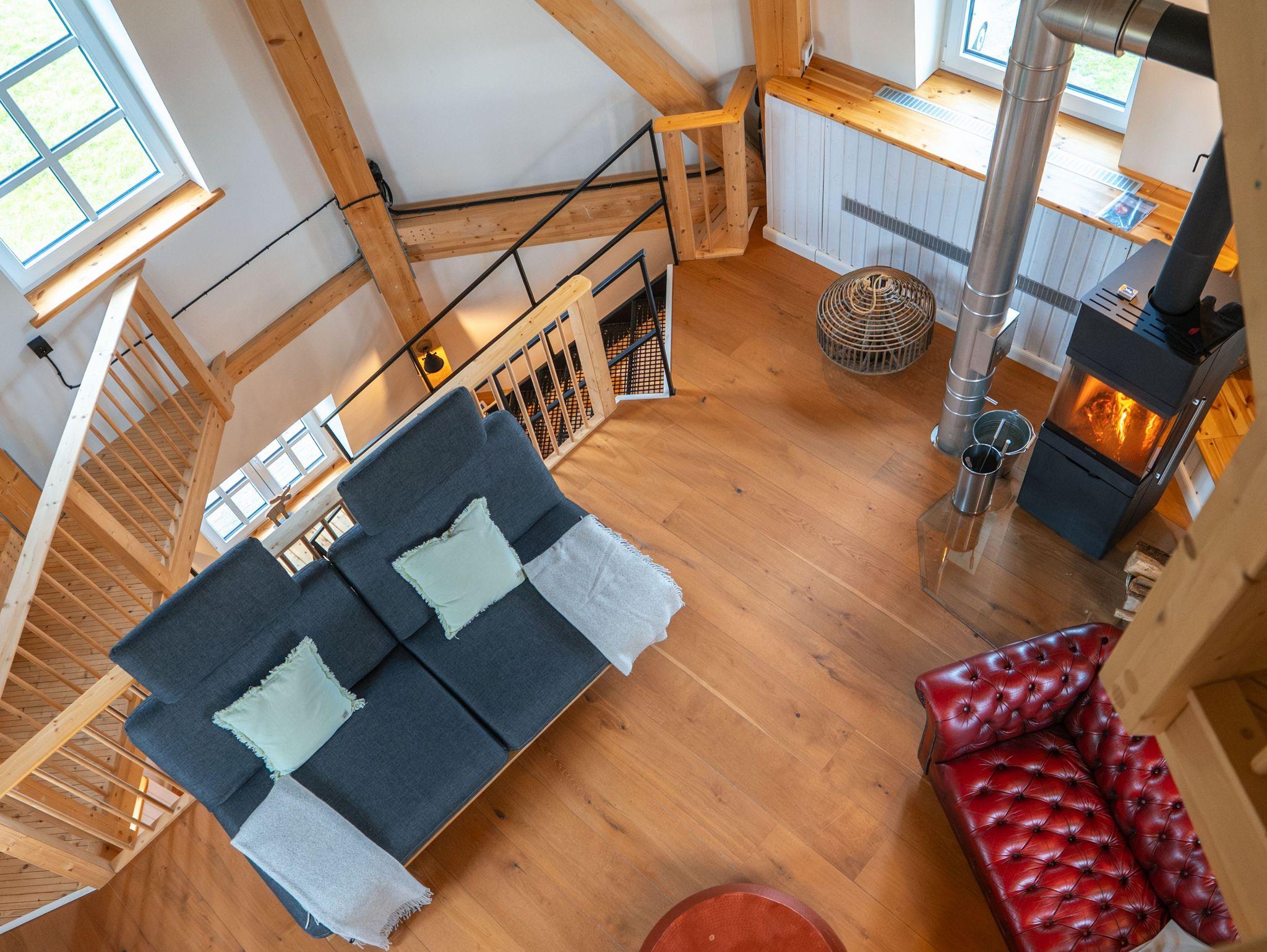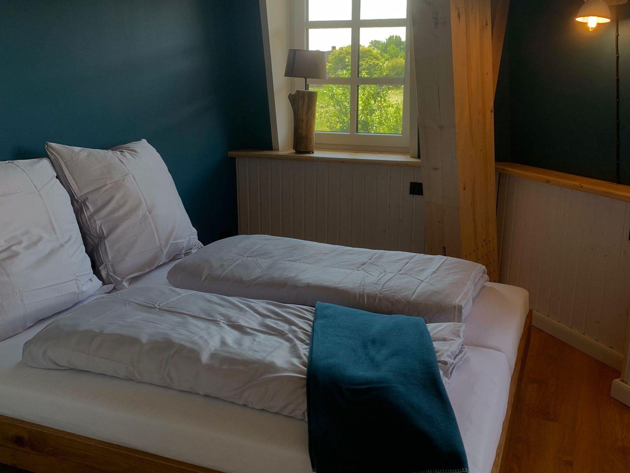 Im Inneren befindet sich eine moderne Ferienwohnung mit bis zu 5 Schlafmöglichkeiten. Es handelt sich um 2 separate Schlafzimmer und 1 Zustellbett in einem der Schlafzimmer.