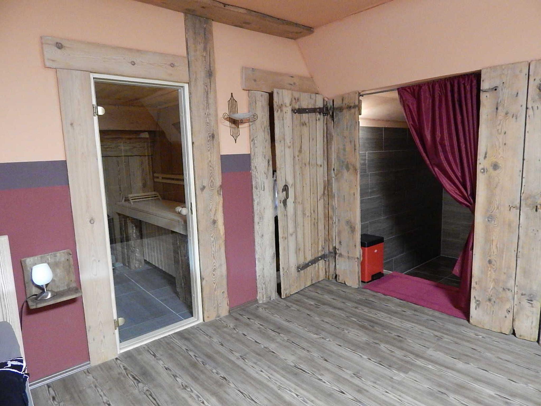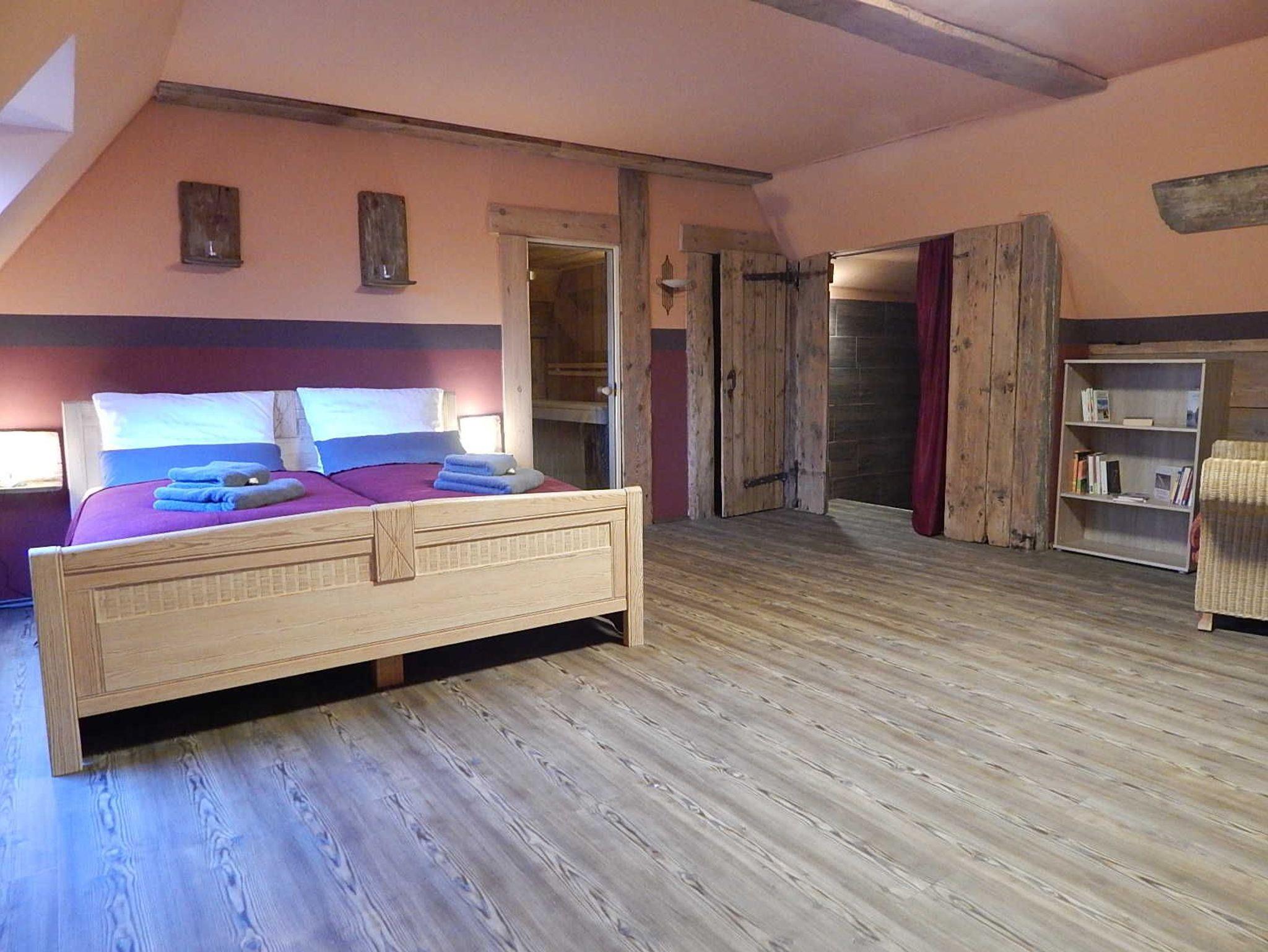 Im Obergeschoss der Ferienwohnung Nordsee befindet sich eine eigene Sauna, in der bis zu 6 Personen Platz finden.
