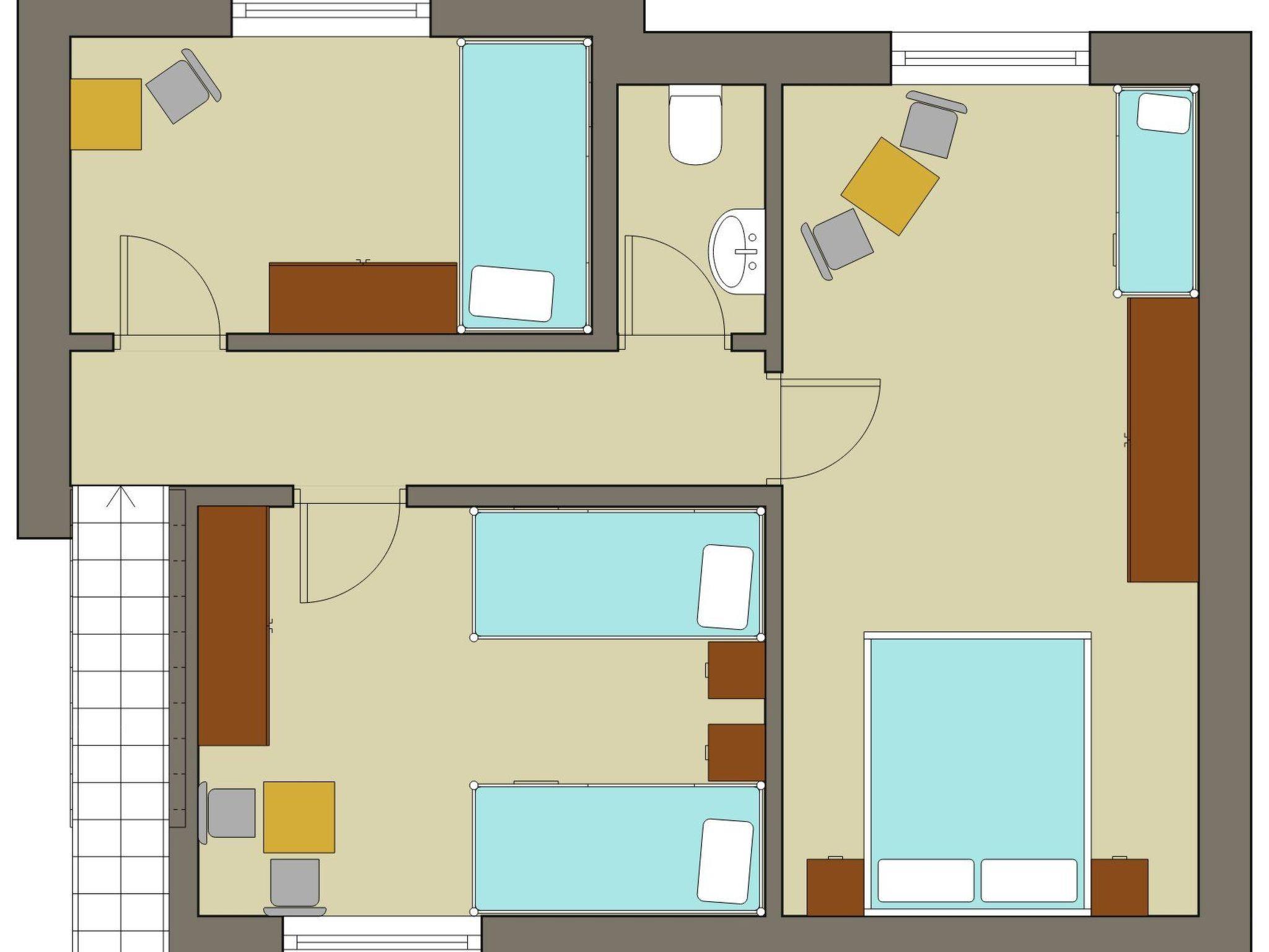 In jeder Wohnung erwarten Sie im Erdgeschoss eine voll ausgestattete Wohnküche mit gemütlicher Sofaecke, einer Küchenzeile, die keine Wünsche offenlässt, und einem Badezimmer mit separatem WC. Im Obergeschoss befinden sich drei liebevoll eingerichtete Schlafzimmer, die komplette Verdunkelung durch Dachfensterrollos bieten: ein Elternschlafzimmer mit Doppelbett und Babybett, ein Kinderschlafzimmer mit zwei Einzelbetten und ein weiteres Einbettzimmer. Komfortable, verstellbare Lattenroste in allen Betten und eine zusätzliche separate Toilette sorgen für Ihren Komfort. Neben alltäglichen Annehmlichkeiten wie Geschirr und Elektrogeräten sind auch eine Spülmaschine, Waschmaschine, Wäschetrockner, Satelliten-TV und ein Radio verfügbar, um Ihnen den Aufenthalt so angenehm wie möglich zu gestalten.