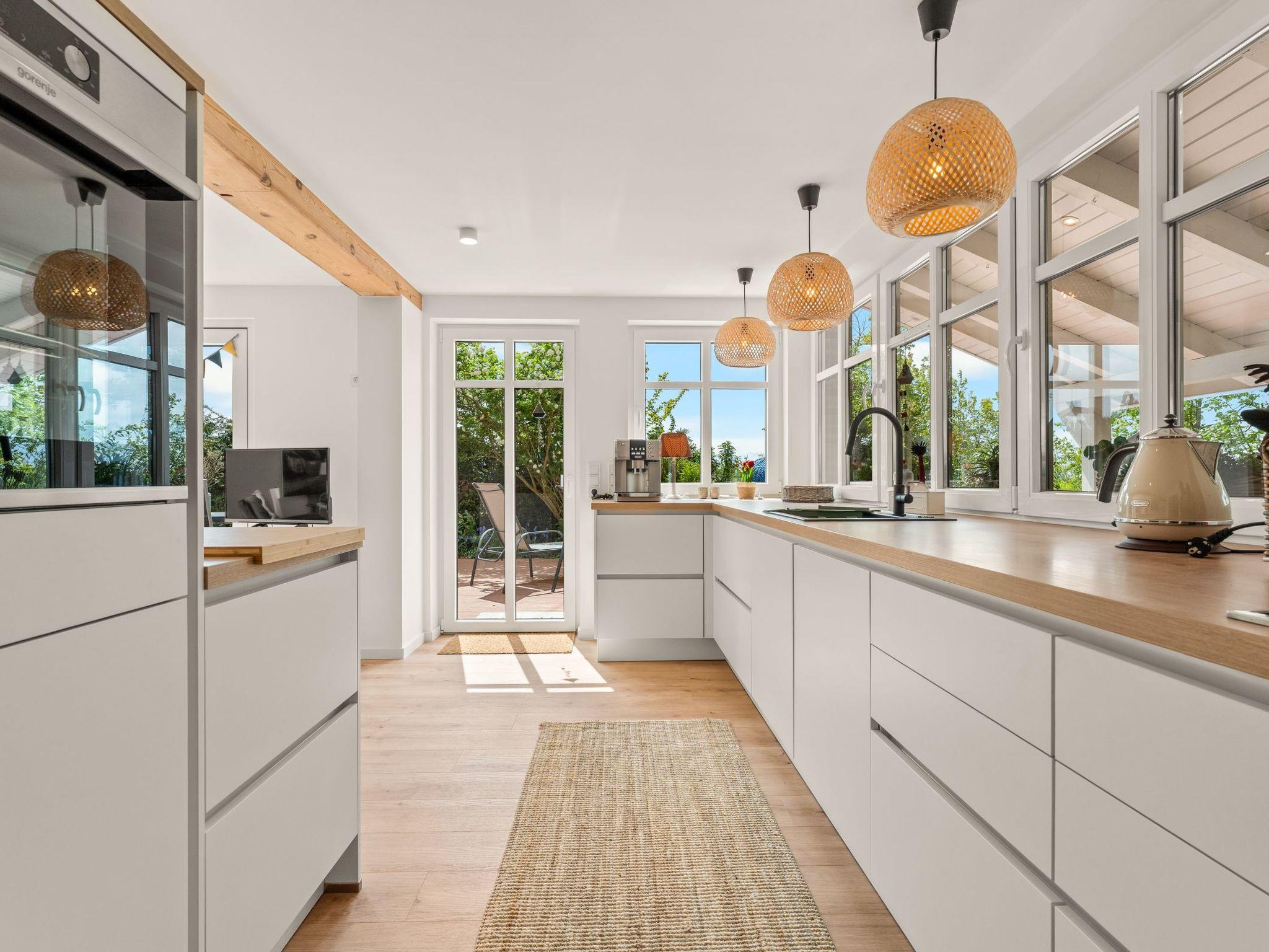 Innen erwartet Sie eine offene Raumaufteilung, die Ihnen geräumige und helle Räumlichkeiten bietet. Durch die behutsame und kernsanierte Neugestaltung konnte eine harmonische Verbindung zwischen historischem Charme und zeitgemäßer Einrichtung geschaffen werden. Der Innenbereich ist geprägt von einer liebevollen, detailreichen Gestaltung, die Ihren Aufenthalt zu etwas ganz Besonderem macht.