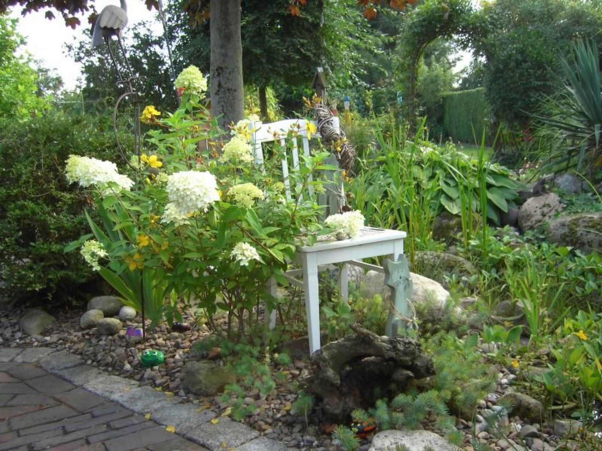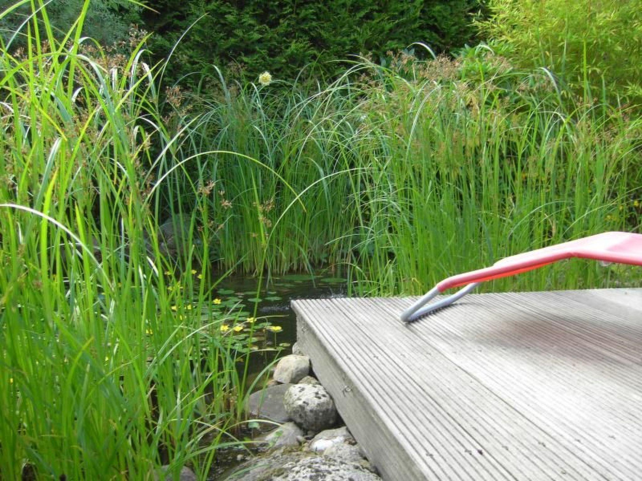 Vom Wohnbereich aus gelangen sie auf eine der beiden herrlichen Terrasse mit Grillplatz und Zugang zum wunderschönen Garten mit einer idyllischen kleinen Teichanlage. Im Garten befindet sich das „Backhaus“ mit einer voll ausgestatteten Sauna-Anlage mit Liege- und Ruhe-Gelegenheiten zur Verfügung.