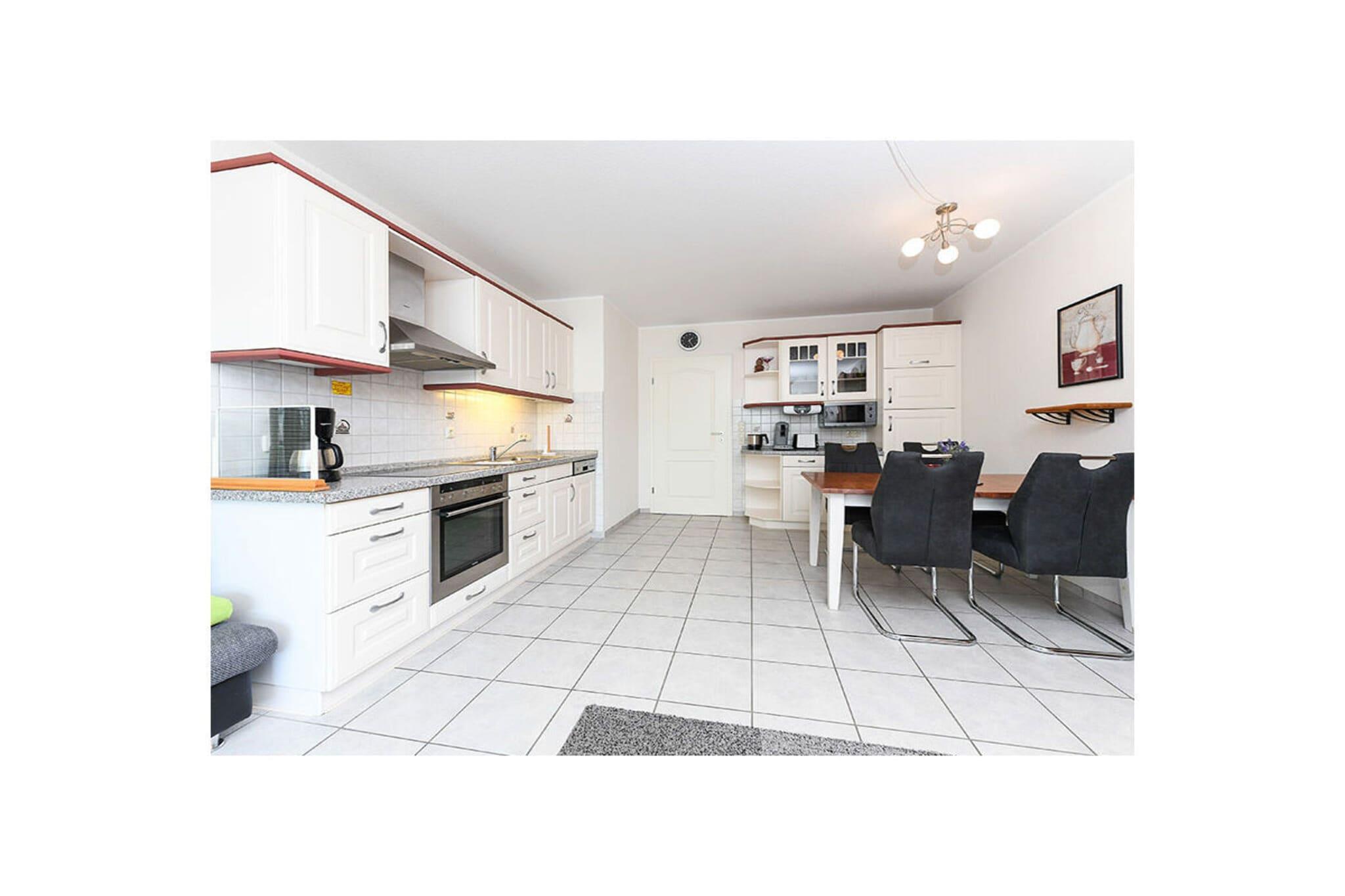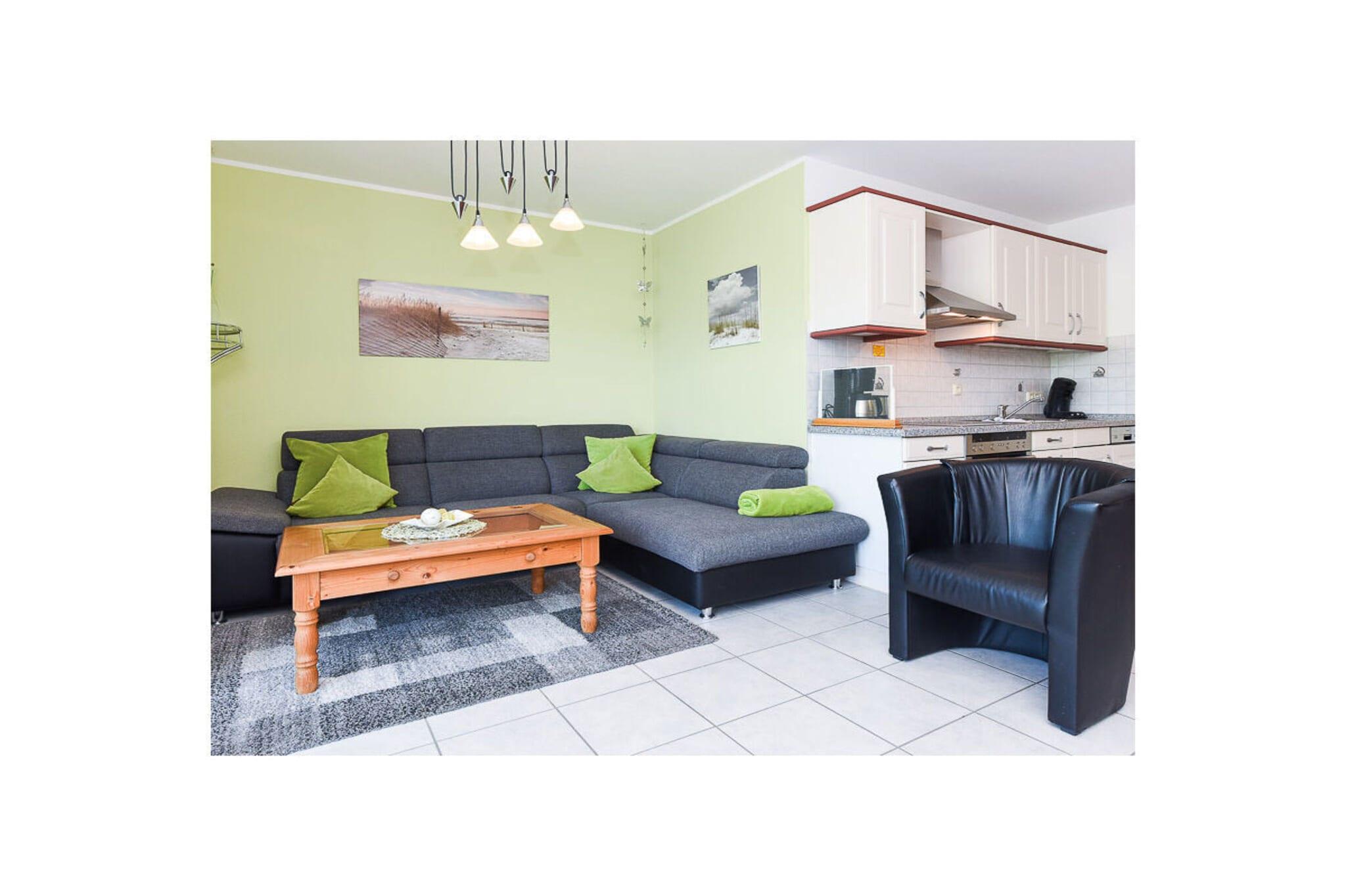 Komfortable Ferienresidenz Friesengold im Nordsee-Gartenpark mit Balkon, moderner Küche und barrierefreiem Zugang.