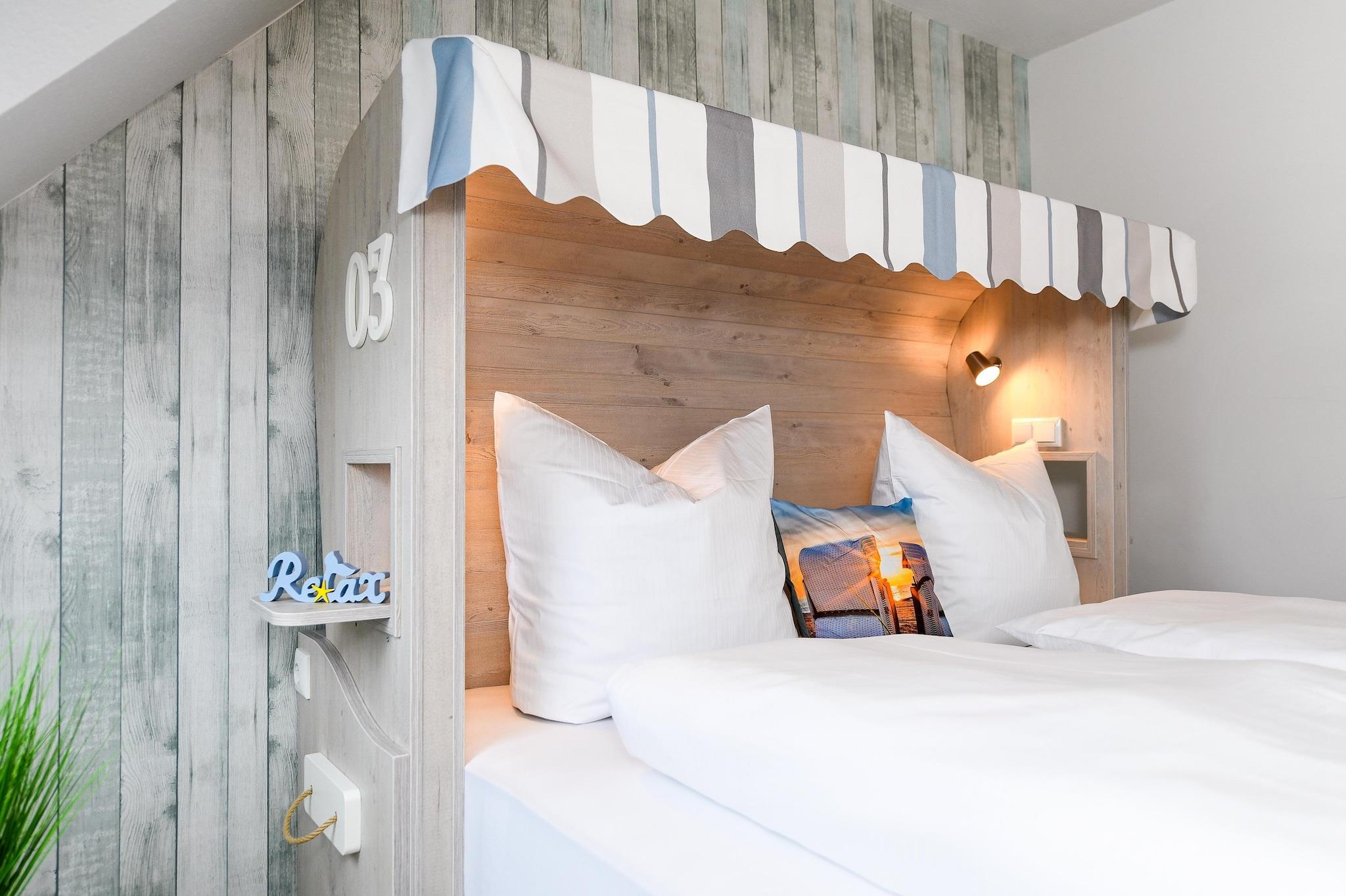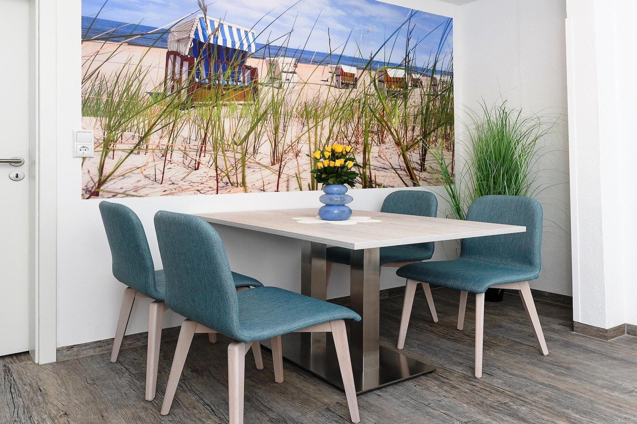 Diese großzügige Ferienwohnung im Obergeschoss bietet auf ca. 65?m² viel Platz für 2 bis 4 Personen sowie ein zusätzliches Kleinkind. Zwei separate Schlafzimmer – eines davon als gemütliches Kinderzimmer – schaffen ideale Voraussetzungen für einen entspannten Familienurlaub an der Nordsee. Der lichtdurchflutete Wohnbereich mit integrierter, voll ausgestatteter Küche und gemütlichem Essplatz lädt zum Verweilen ein. Das moderne Badezimmer verfügt über eine Dusche, Waschtisch und WC. Hochwertige Matratzen, ein Flachbildfernseher und kostenloses WLAN sorgen für angenehmen Wohnkomfort. Im gemeinschaftlich nutzbaren Bereich stehen Waschmaschine und Trockner zur Verfügung. Der große Garten hinter dem Haus bietet Kindern viel Raum zum Spielen und Erwachsenen Platz zur Erholung. Die ruhige Lage in Küstennähe und die familienfreundliche Ausstattung machen diese Wohnung zur perfekten Unterkunft für alle, die einen erholsamen Nordseeurlaub verbringen möchten – ob als Paar oder mit Kindern. Highlights: WLAN, verbrauchsabhängige Energiekosten und Wäschepaket inklusive. Hinweis zur Endreinigung: Bei einem Aufenthalt von unter 5 Nächten ist eine Gebühr von 80 EURO zu zahlen, ansonsten ist die Endreinigung inklusive.