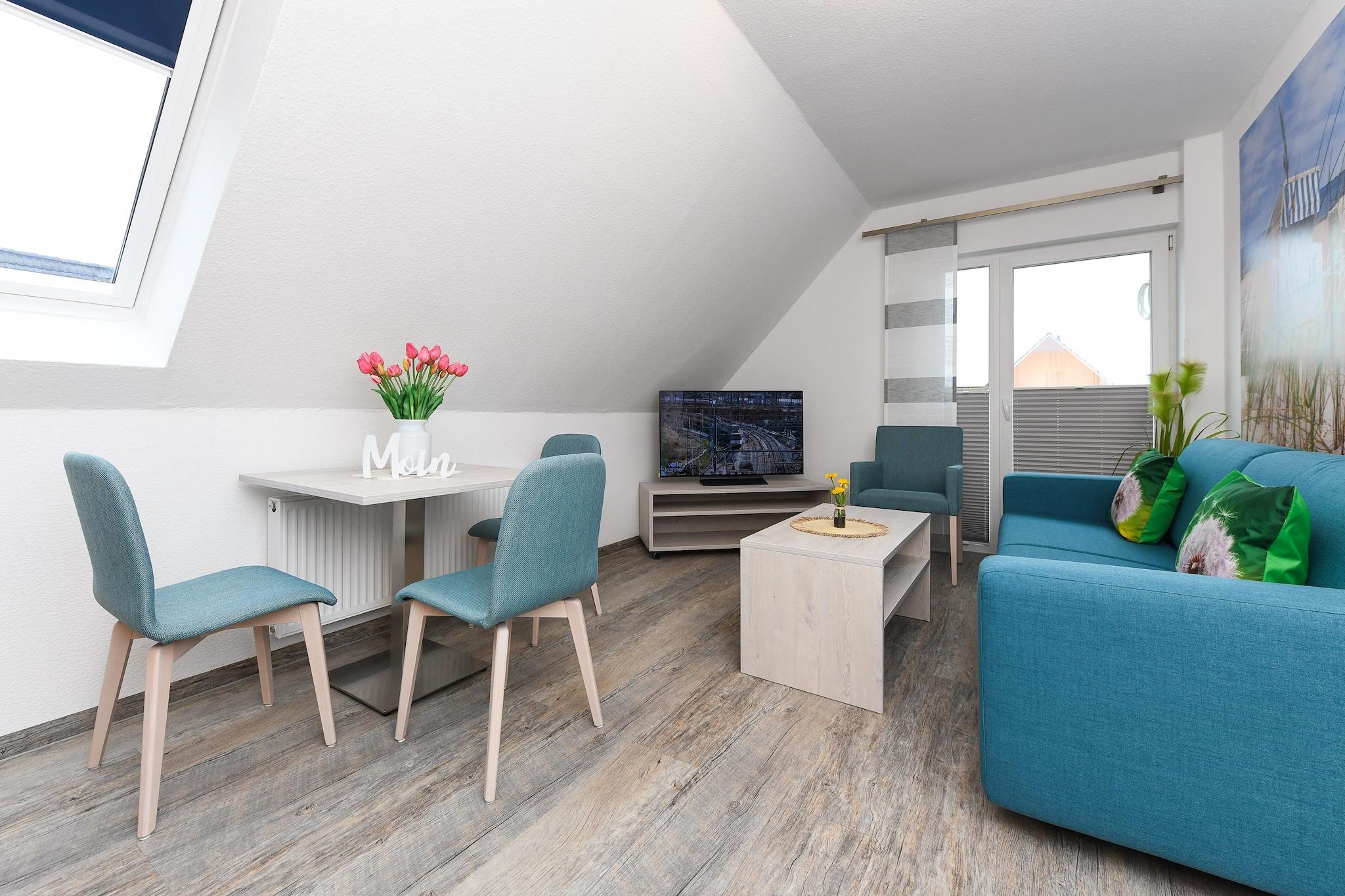 Gemütliche Ferienwohnung im Obergeschoss in Bensersiel mit moderner Ausstattung und Garten nahe der Nordsee.