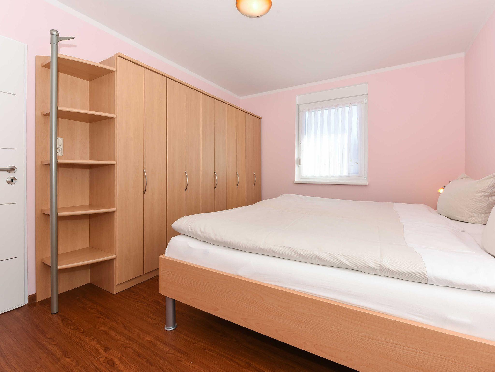 Größe ca. 52 Quadratmeter, Wohnzimmer mit räumlich abgeteilter Küchennische, Schlafzimmer, zweites separates Schlafzimmer, Badezimmer mit Dusche, Waschtisch und WC, Obergeschoss, Loggia (überdachter Balkon), optimal für 1 bis 4 Personen und zusätzlich ein Kleinkind.