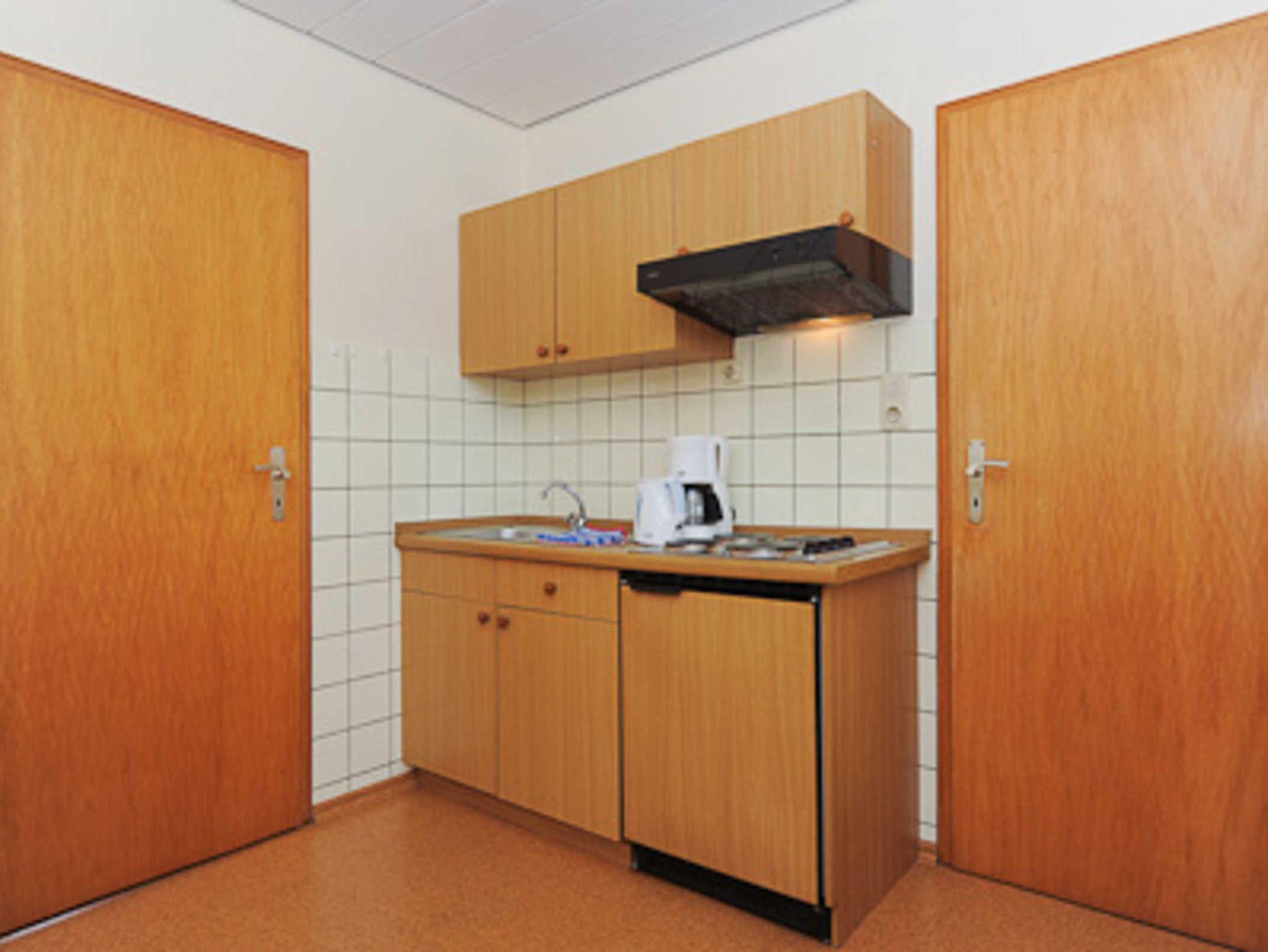 Größe ca. 29 Quadratmeter, Wohnraum mit integrierter Küche, Schlafzimmer/Kinderzimmer, Badezimmer mit Dusche, Waschtisch und WC, Erdgeschoss, Terrasse (überdacht), optimal für 2 bis 4 Personen.