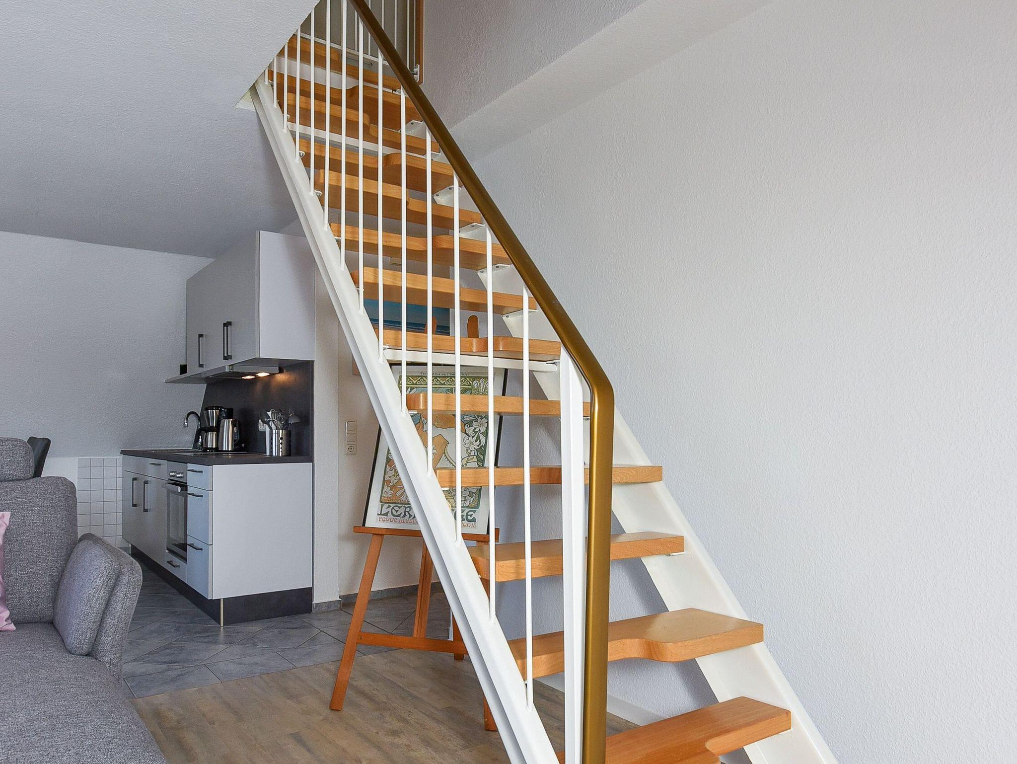zu den oberen Schlafzimmern führt eine relativ steile und schmale Raumspartreppe