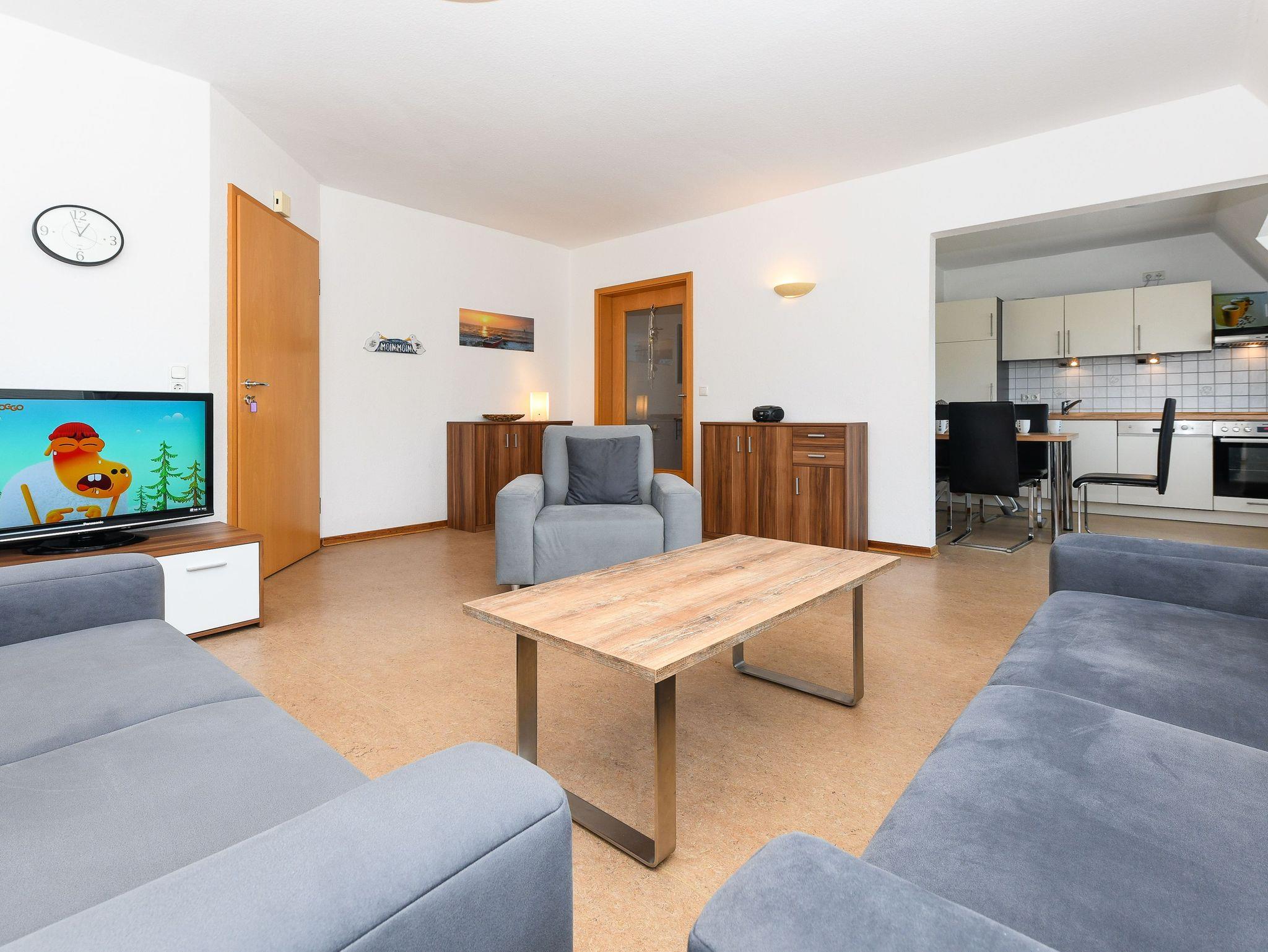 Unsere ungefähr 87 Quadratmeter große, sehr allergikerfreundliche und modern eingerichtete Ferienwohnung „Inselblick“ bietet viel Raum für 2 bis 5 Personen nebst zusätzlichem Kleinkind.