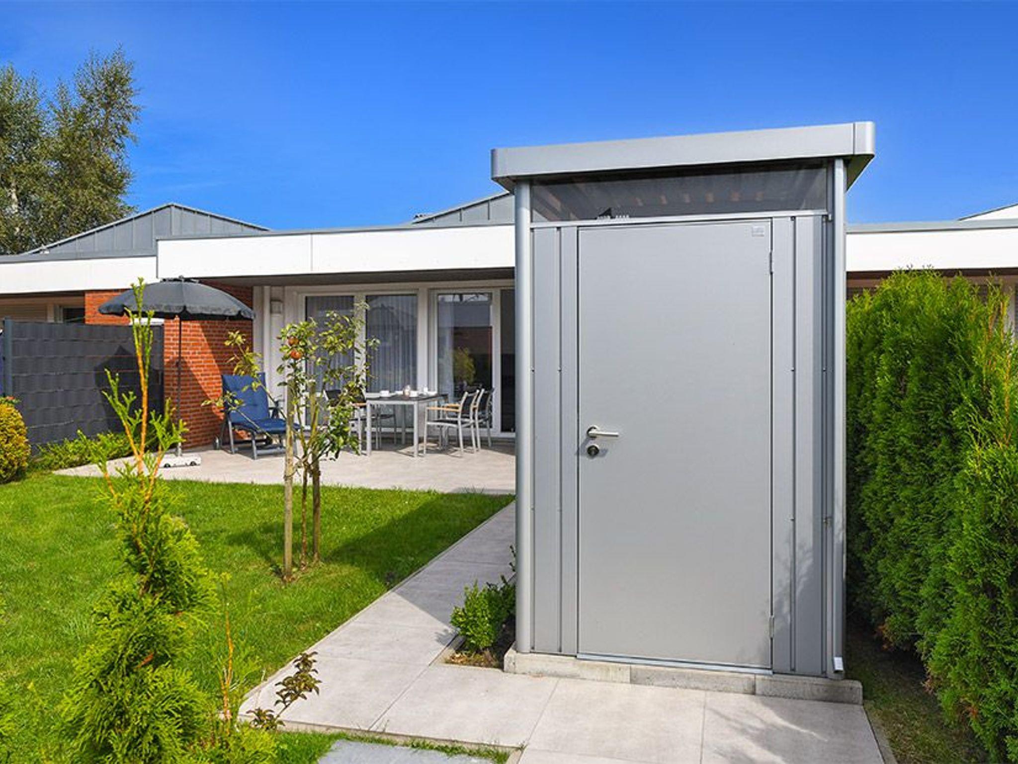 Abschließbarer Fahrradschuppen mit Lademöglichkeit für Fahrräder