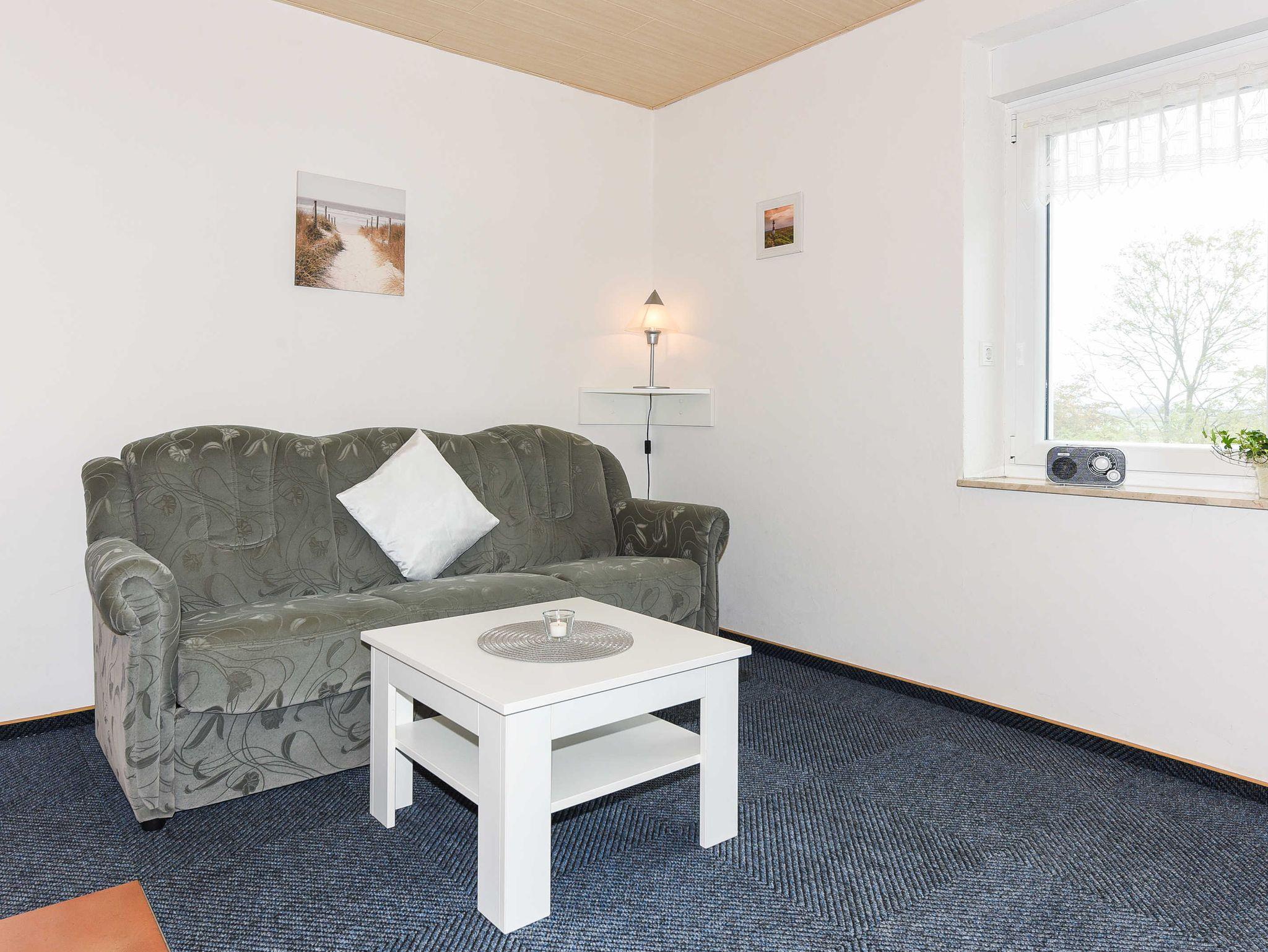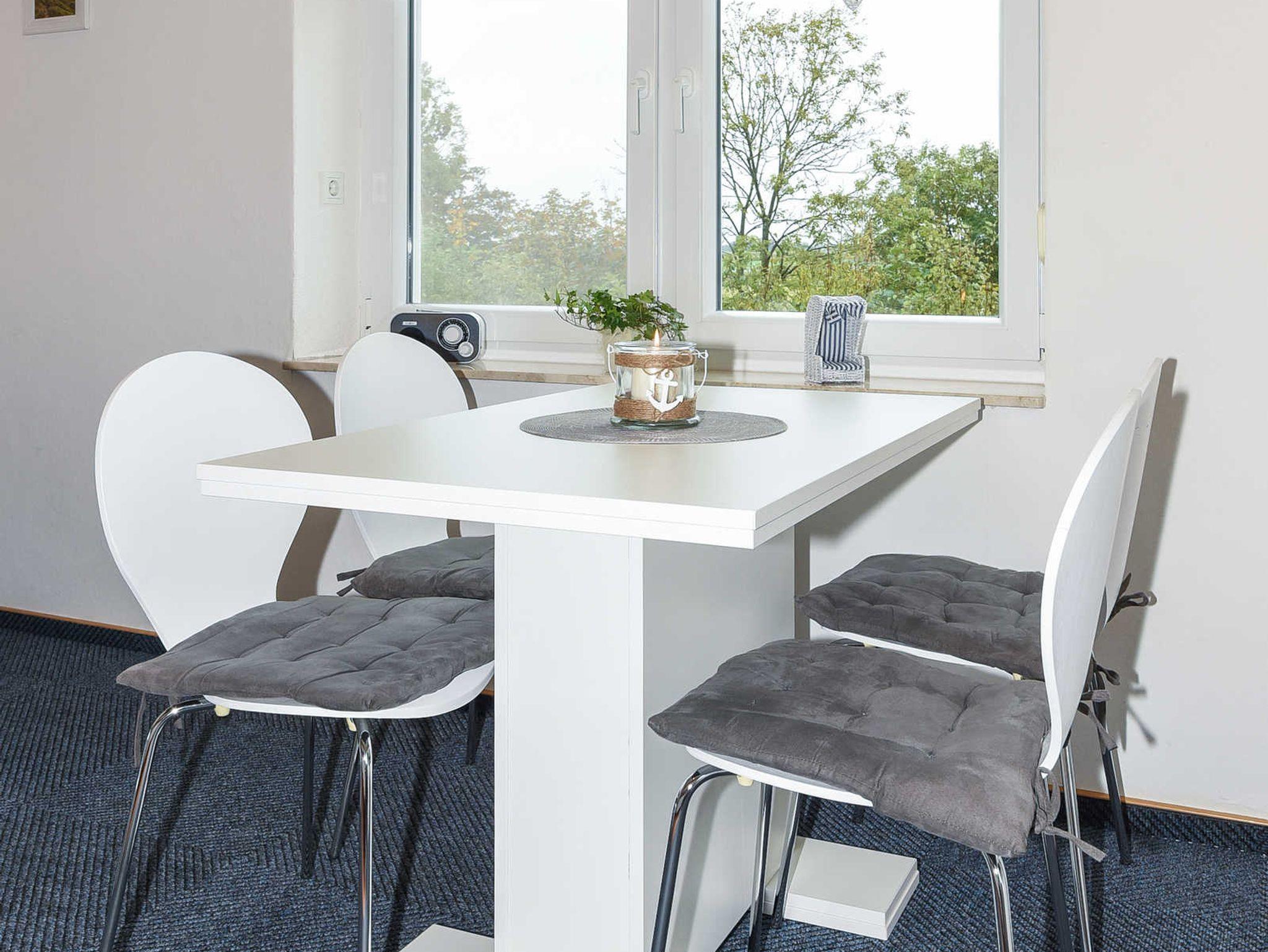 Größe ca. 48 Quadratmeter, Wohnraum mit integrierter Küche, Schlafzimmer, zweites separates Schlafzimmer/Kinderzimmer, Badezimmer mit Dusche, Waschtisch und WC, Obergeschoss, Terrasse (Sitzgruppe im Garten), ausschließlich für Nichtraucher, optimal für 1 bis 2 Personen.