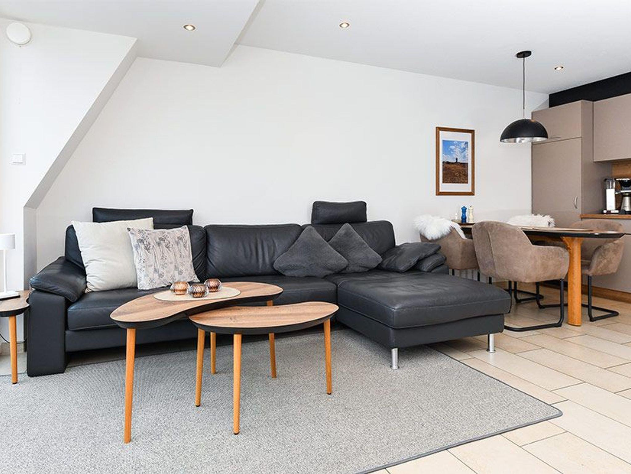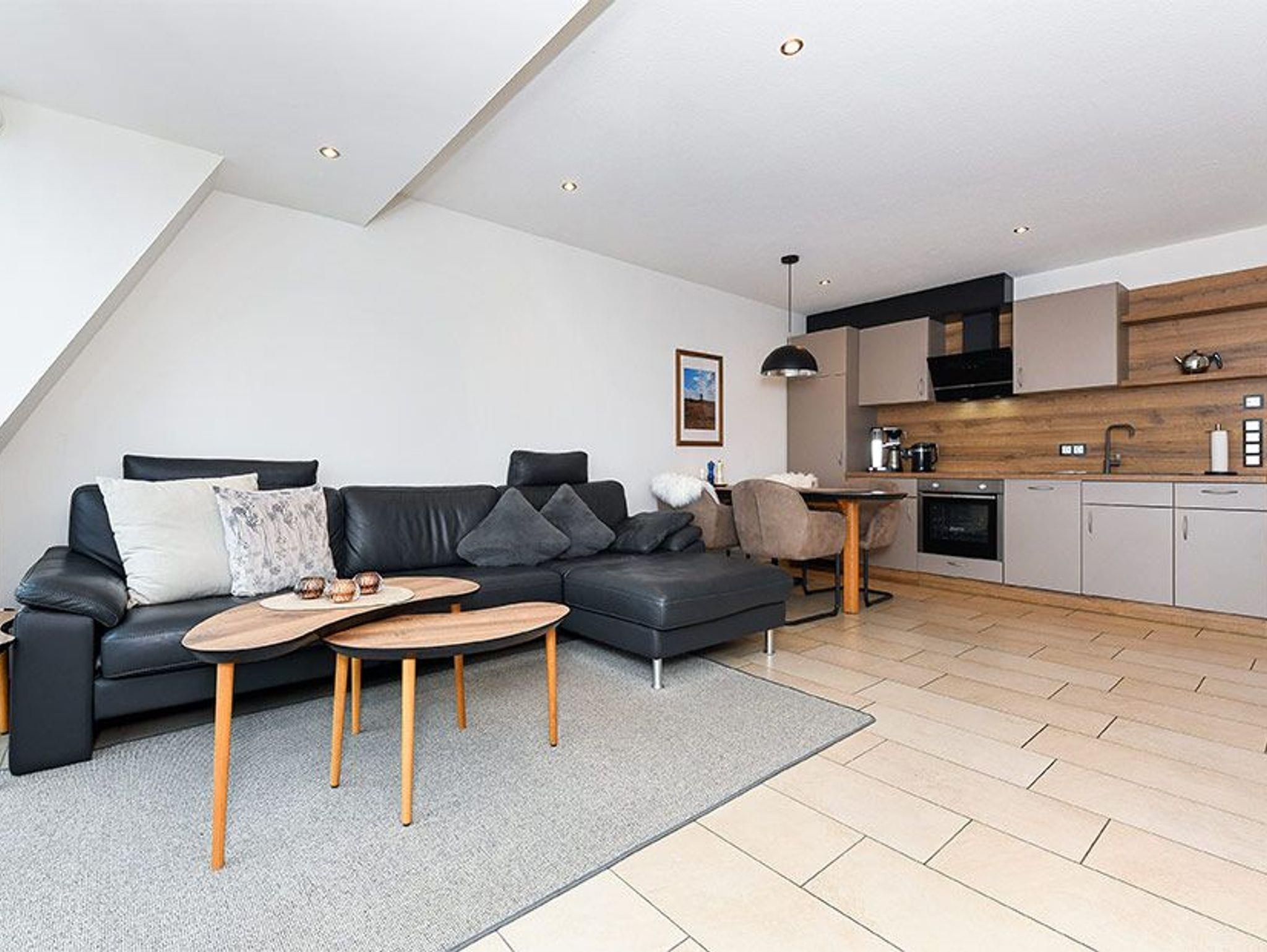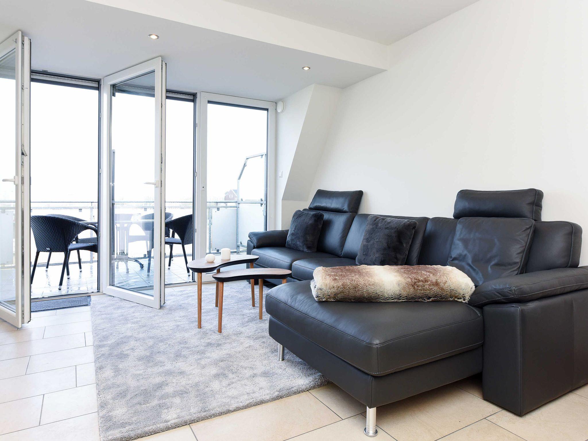 Die großzügige und ungefähr 63 Quadratmeter große „Meerblick-Ferienwohnung Black Pearl“ in der „Residenz am Hafen“ für eine bis vier Personen ist auf Top-Niveau eingerichtet und gemütlich-modern, sehr komfortabel und freundlich gestaltet sowie technisch hervorragend ausgerüstet.