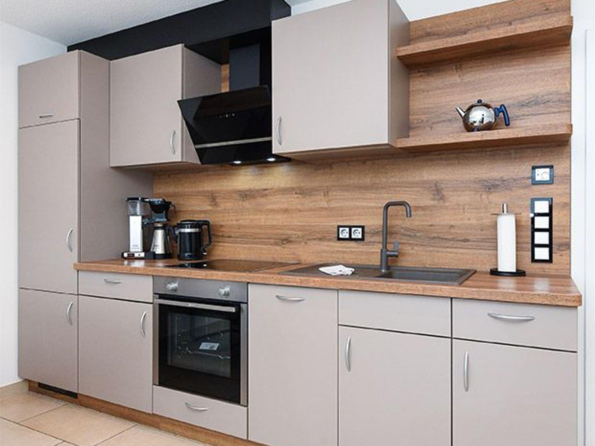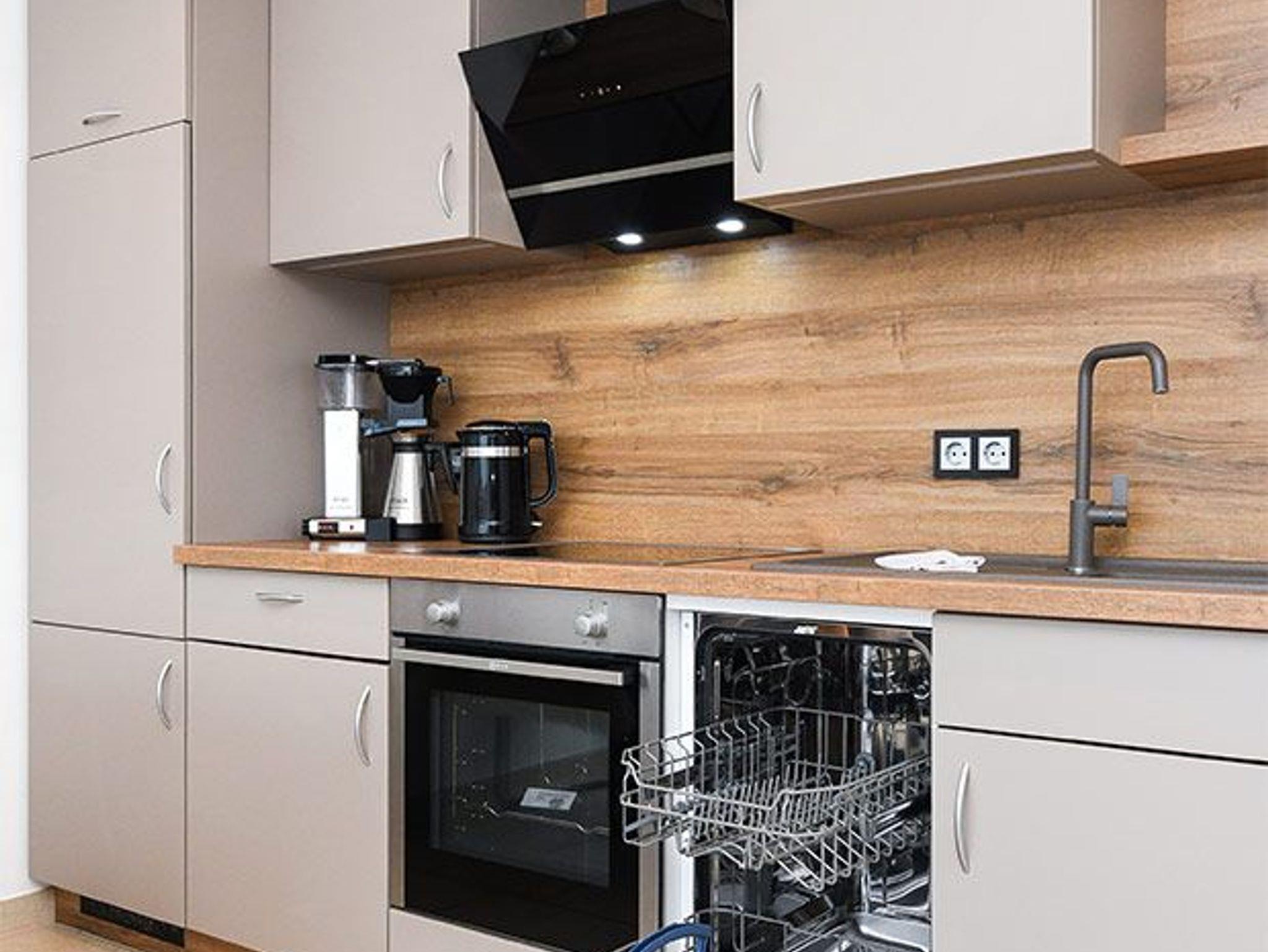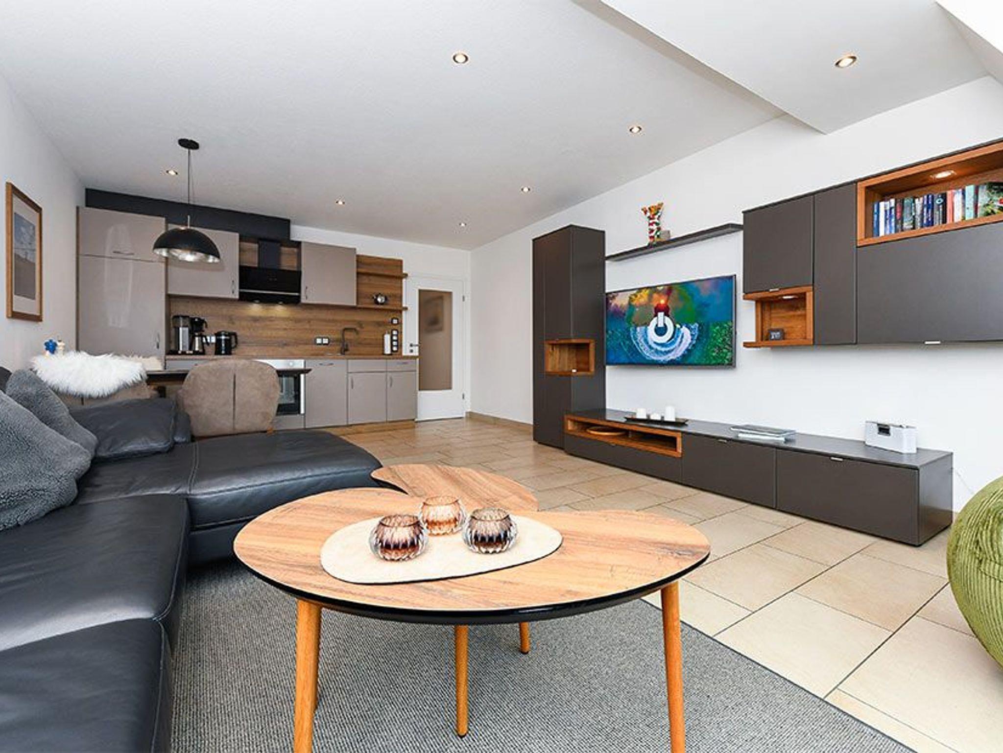 Zum Beispiel gibt es ein Boxspringbett, eine voll ausgerüstete Küche mit Induktionsherd, Geschirrspülmaschine und vielem mehr. Die Einrichtung wurde vom Tischler maßangefertigt. Zur Ferienwohnung gehört ein Tiefgaragenstellplatz von dem Sie mit einem Fahrstuhl bequem die Ferienwohnung erreichen.