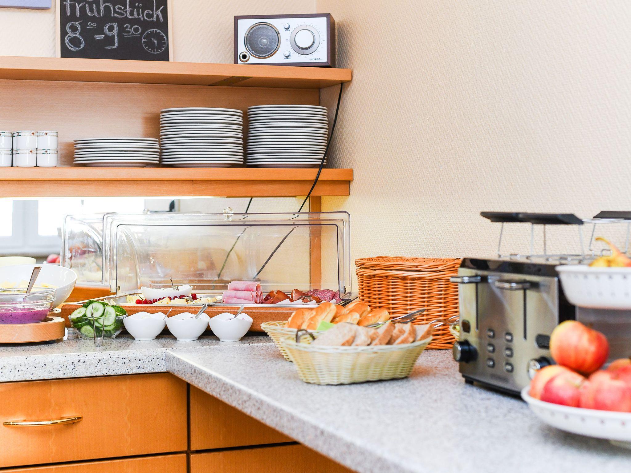 Jeder Morgen beginnt mit einem leckeren Frühstück. Im Aufenthalt in den Zimmern ist automatisch das Frühstück enthalten. Die Apartmentgäste können auf Wunsch gerne auch am Frühstück teilnehmen.