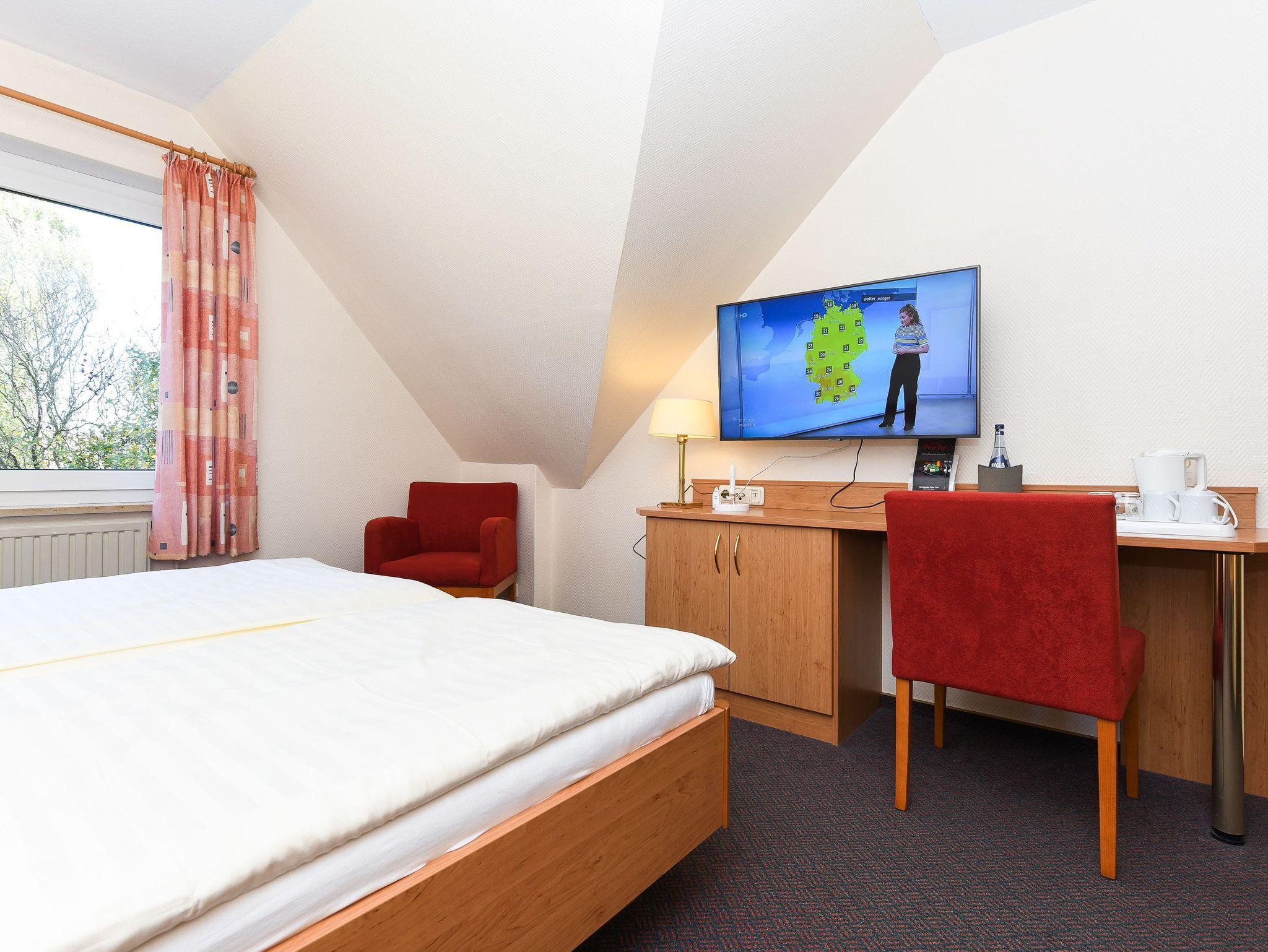 Gemütliches Doppelzimmer in der Pension Nordkap nahe Nordseetherme und Strand in Bensersiel.