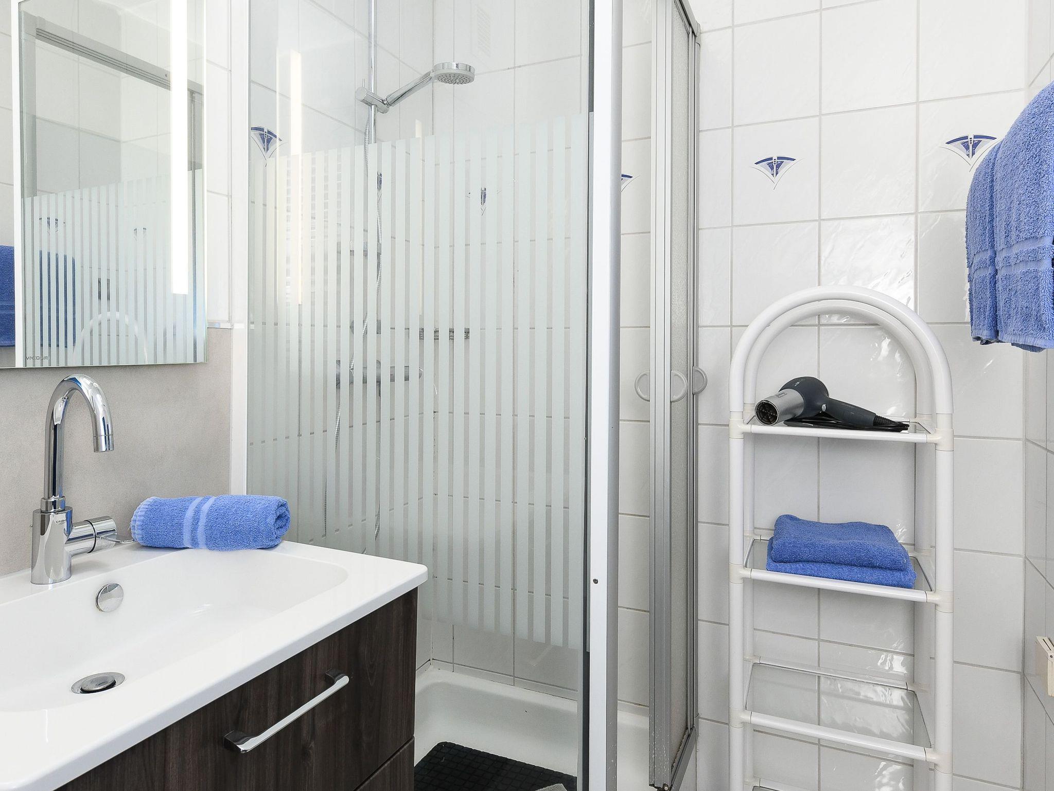 Badezimmer mit Dusche, Waschtisch und WC