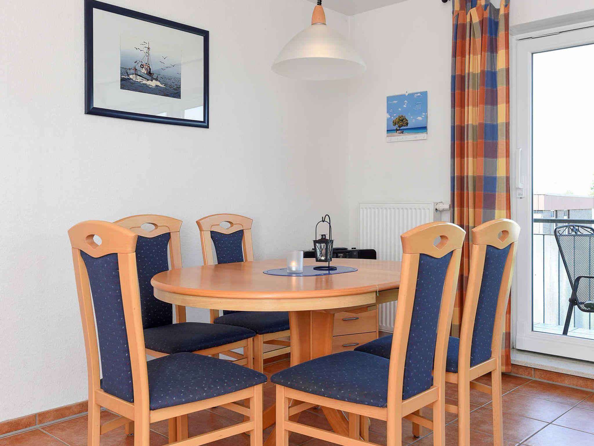 Moderne Ferienwohnung im Nordseegartenpark Bensersiel mit Balkon, Blick auf Hafen und Meer, nahe Strand und Zentrum.