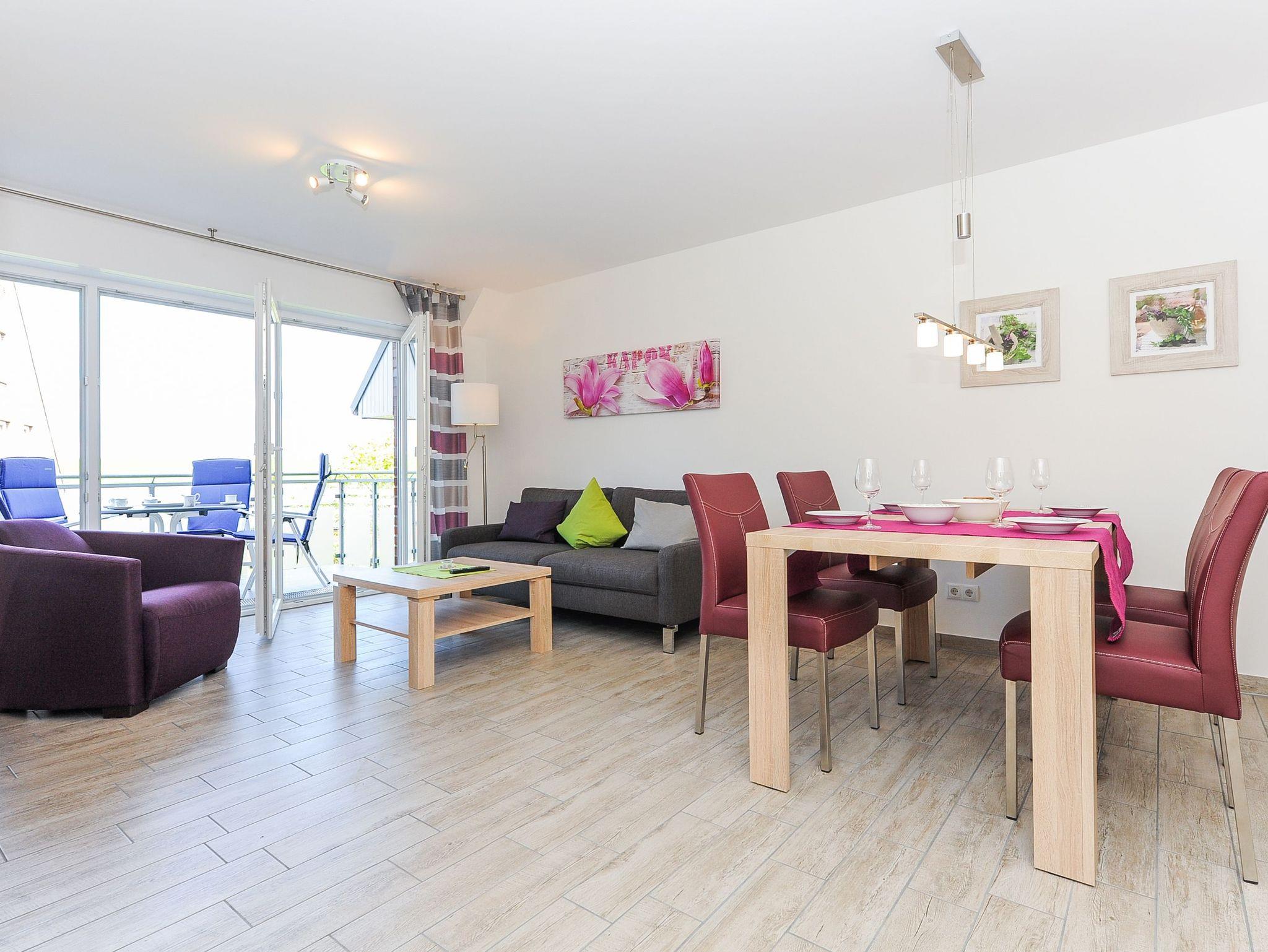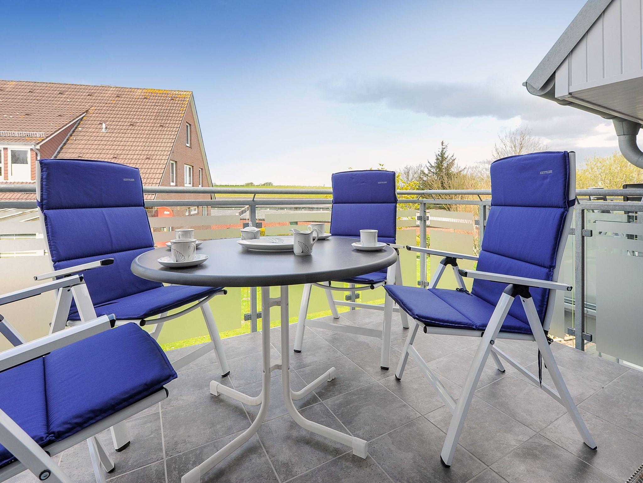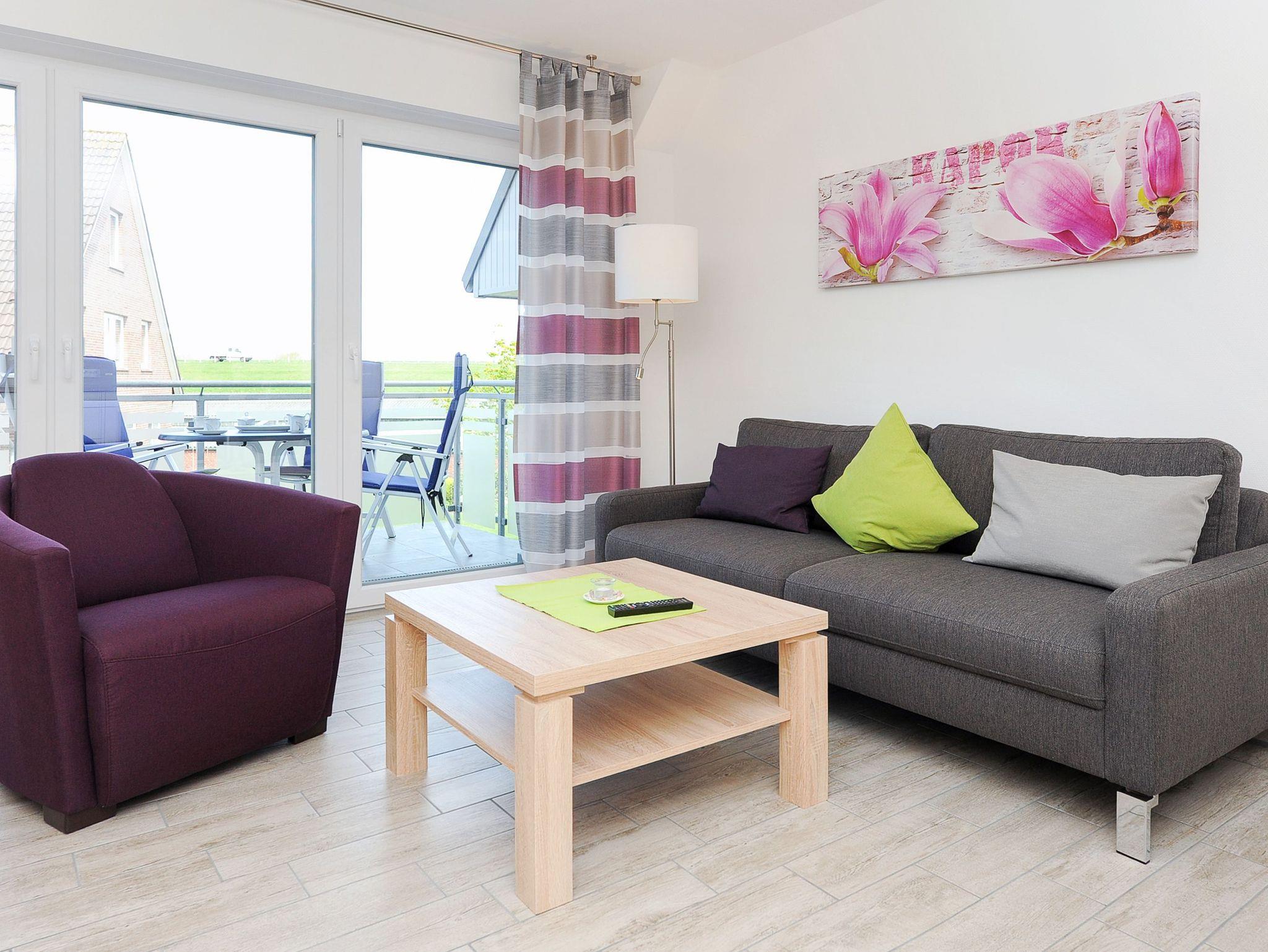 Moderne Ferienwohnung Strandflieder in Bensersiel mit Balkon, direktem Thermenzugang und Nähe zum Strand.