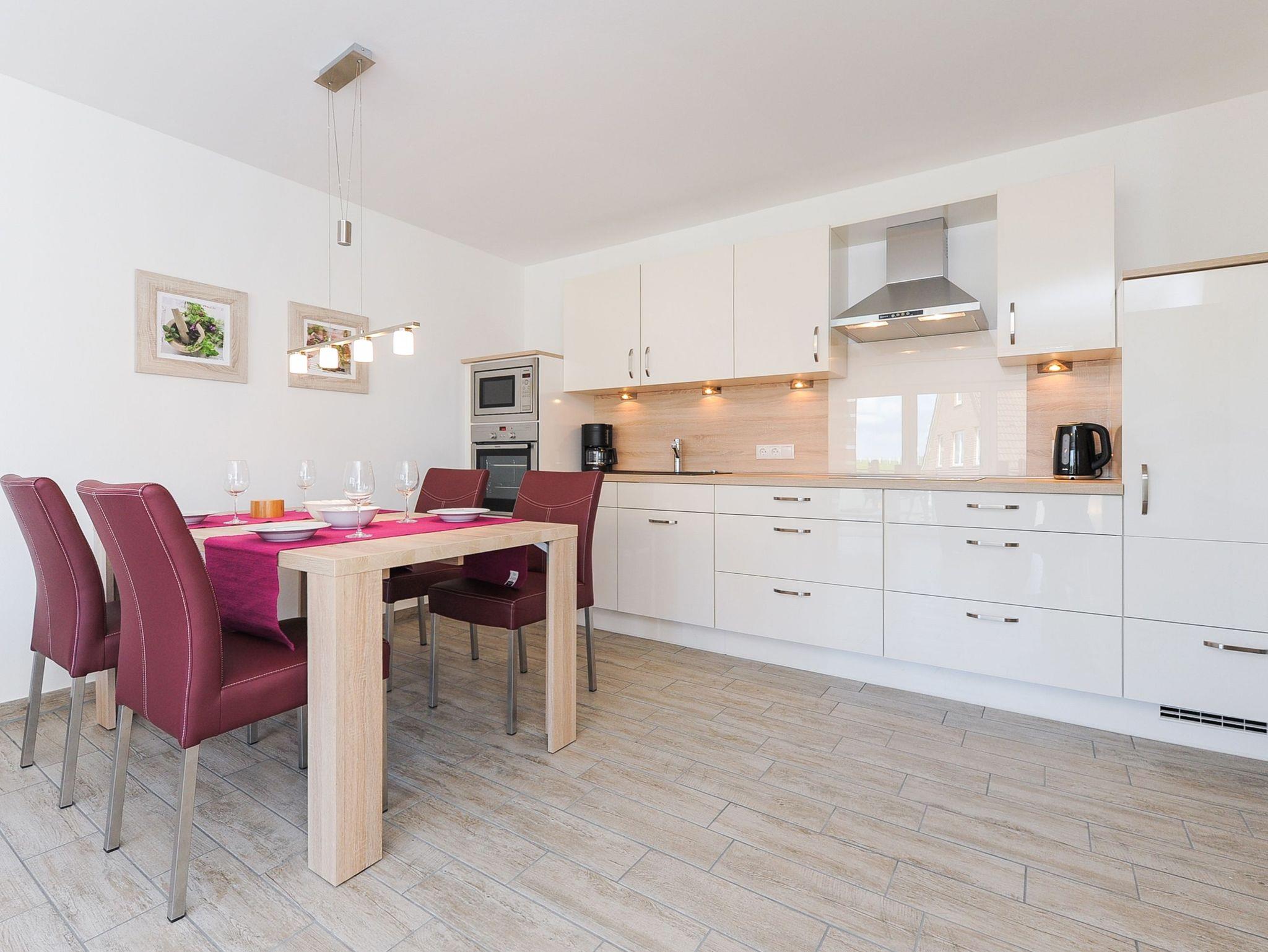 Die großzügige und ungefähr 76 Quadratmeter große Ferienwohnung Strandflieder in der „Residenz an der Nordseetherme“ für zwei bis vier Personen ist auf sehr hohem Standard, gemütlich-modern, sehr komfortabel und freundlich eingerichtet und gestaltet sowie technisch auf hervorragendem Stand ausgerüstet.