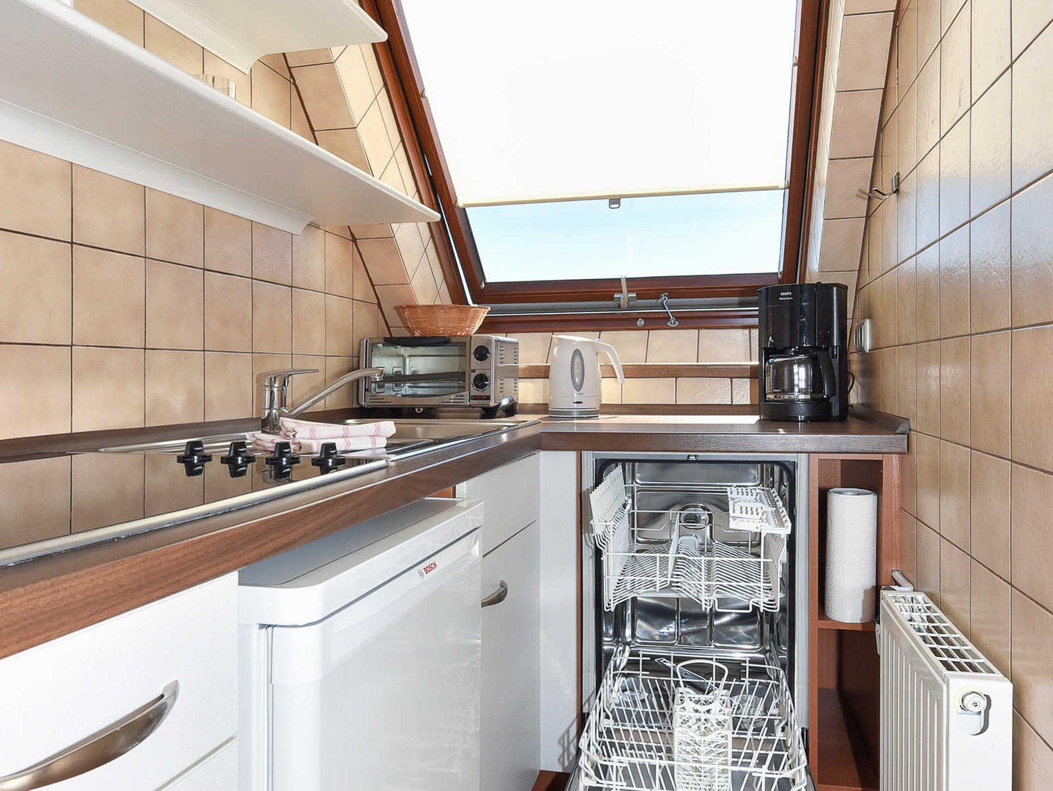 Größe: ca. 33 Quadratmeter, Wohnzimmer, Küche ,Schlafzimmer, Badezimmer mit Dusche, Waschtisch und WC, Obergeschoss, Balkon, optimal für 1 bis 2 Personen.