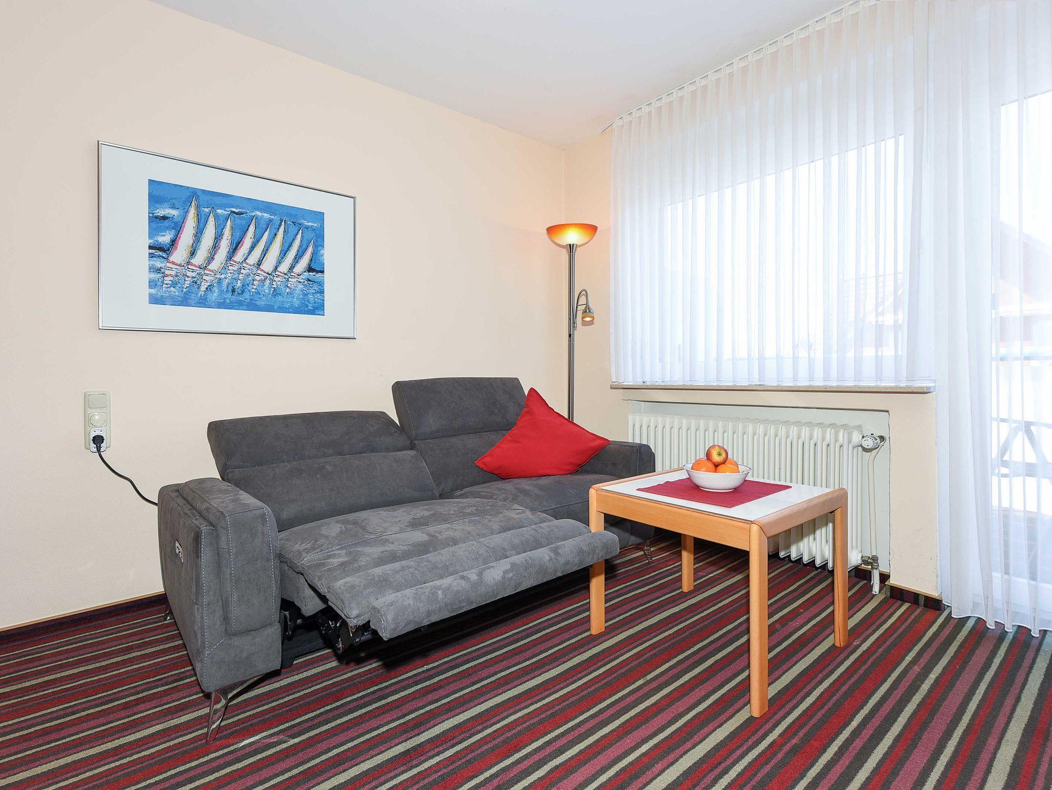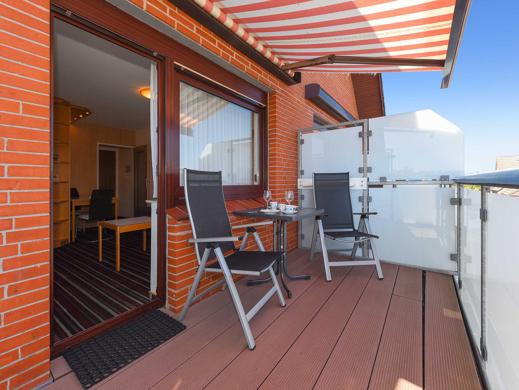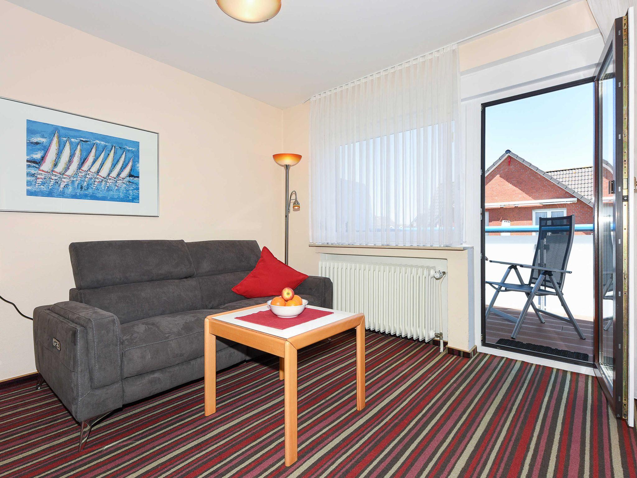 Modernes Apartment im Kapitänshaus Bensersiel, ideal für entspannte Nordsee-Urlaube mit Balkon und Nähe zum Strand.