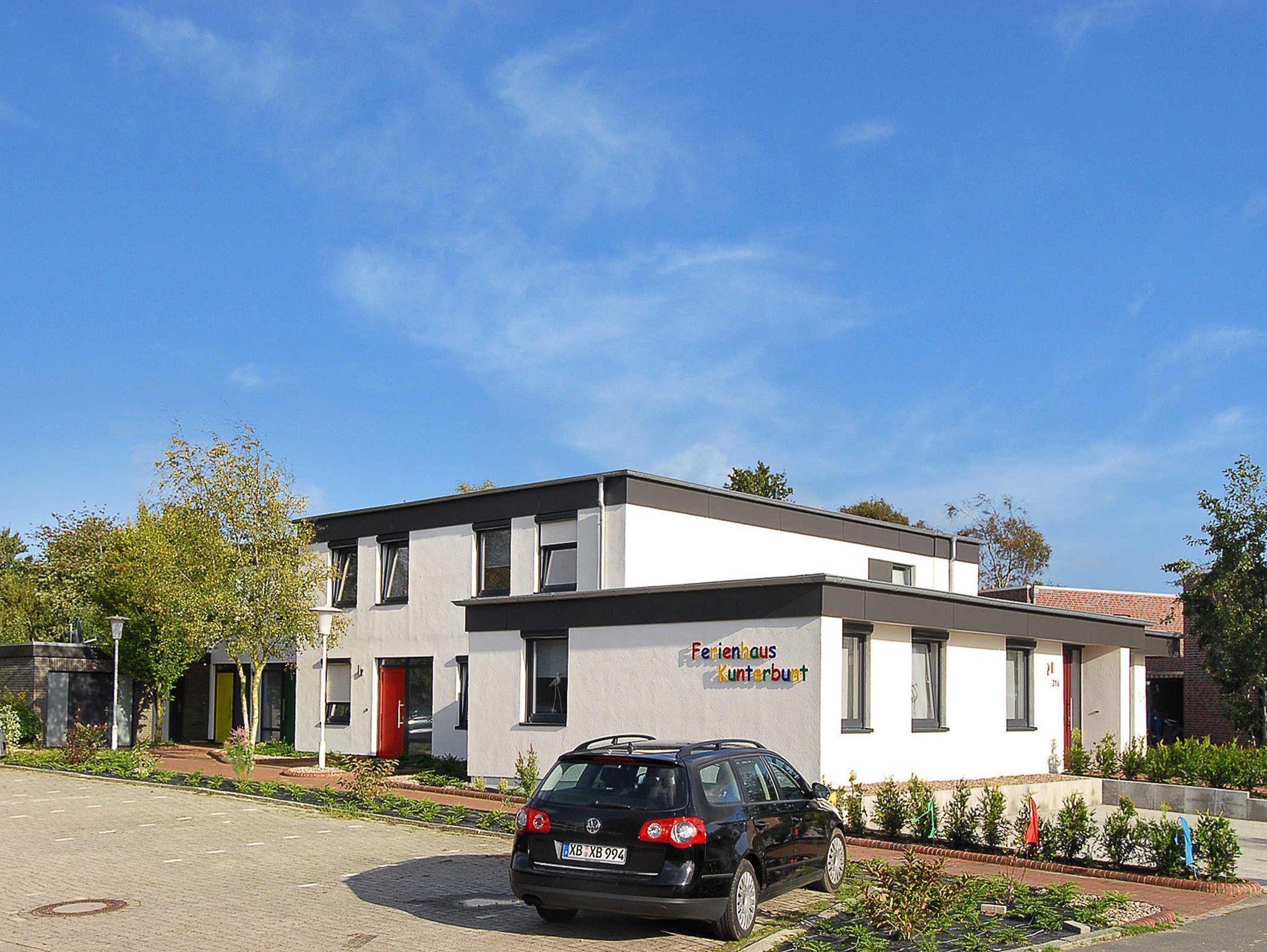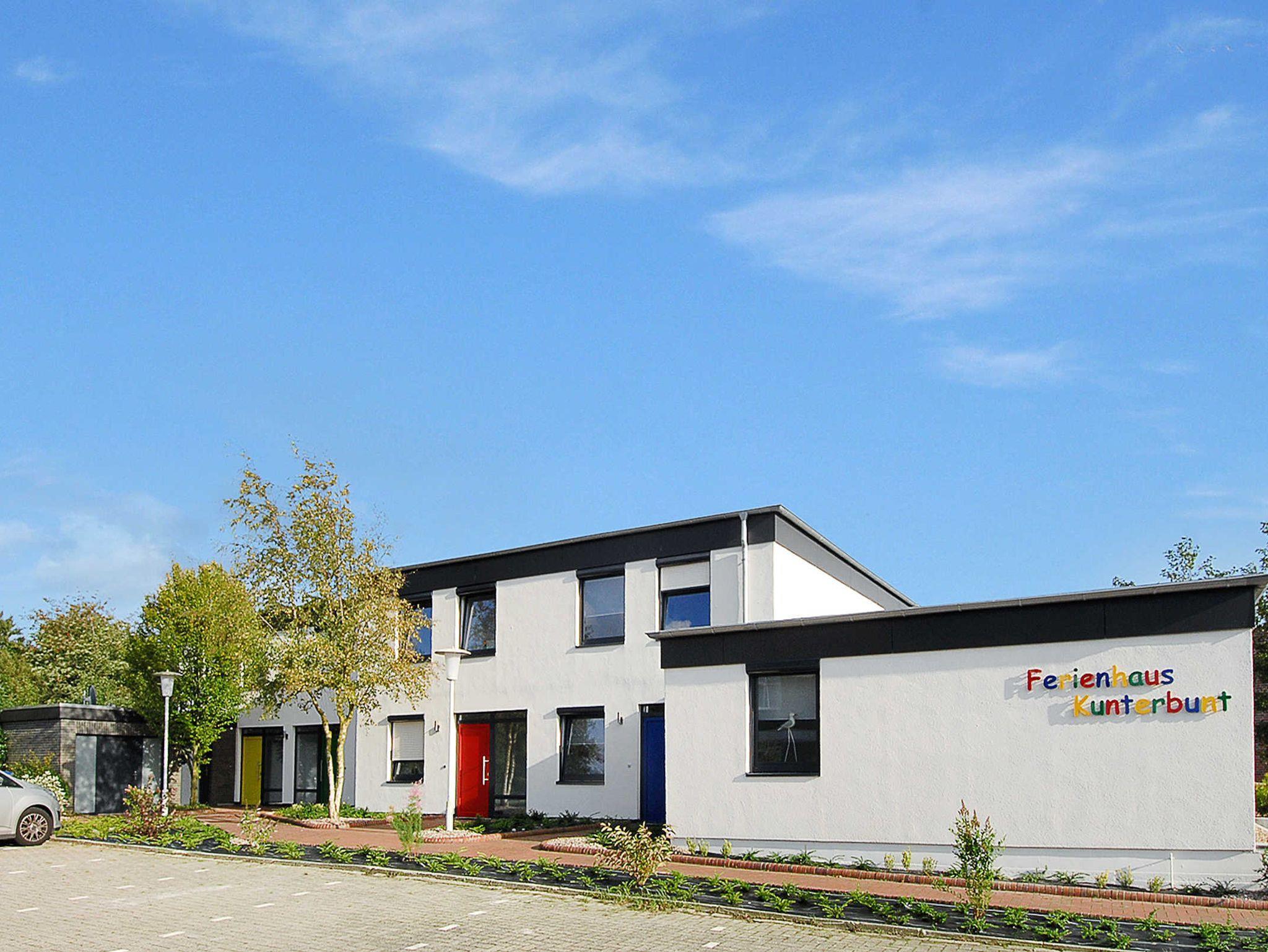 Das „Haus Kunterbunt“ steht im vorderen Teil des „Taddigshörn“ mitten im Nordsee-Heilbad Bensersiel nur knapp 150 Meter vom Deich entfernt. Bensersiel liegt direkt am einzigartigen Naturschauspiel „Nationalpark Niedersächsisches Wattenmeer“, seit 2009 „UNESCO-Weltnaturerbe“.