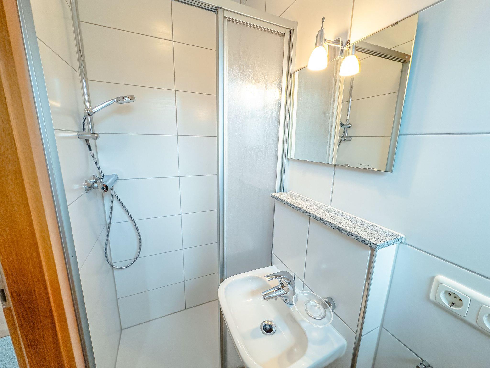 - Badezimmer mit Dusche, Waschtisch und WC