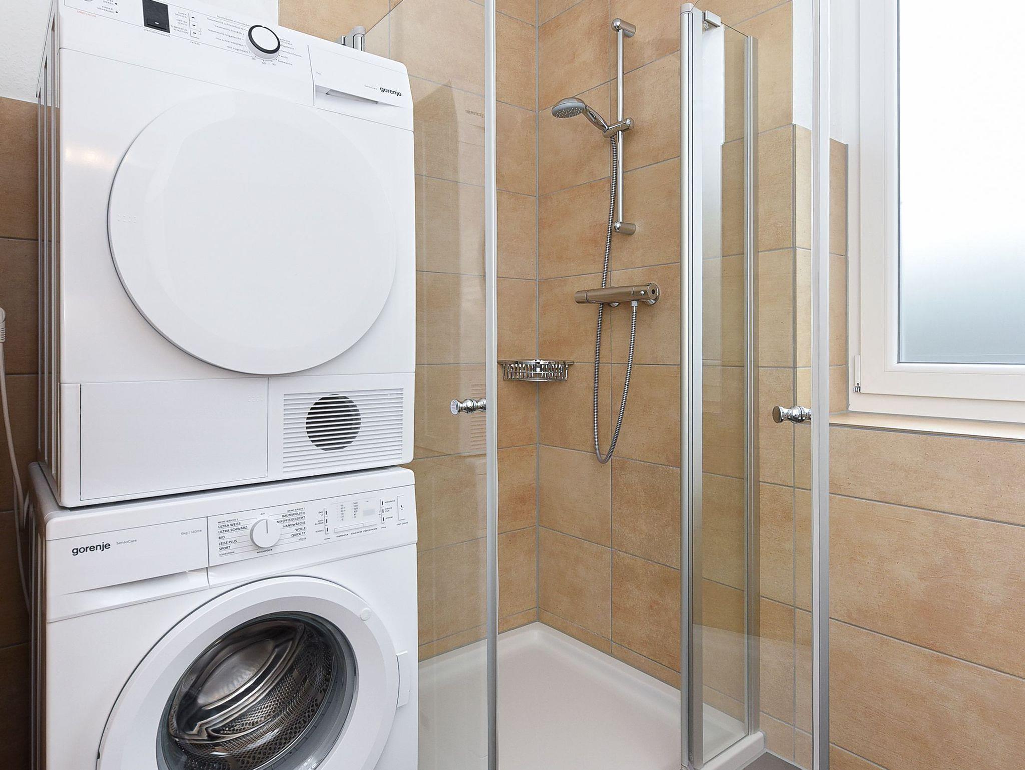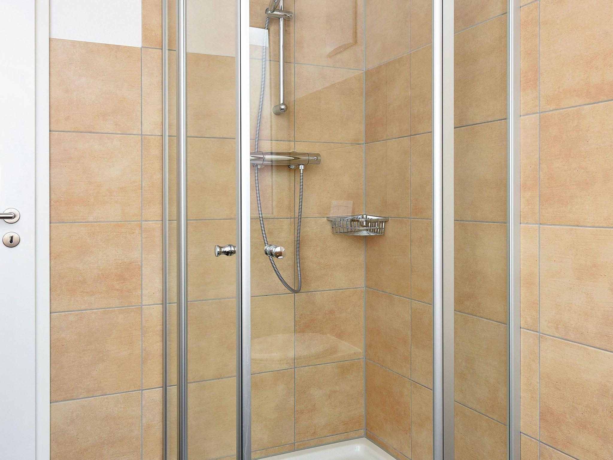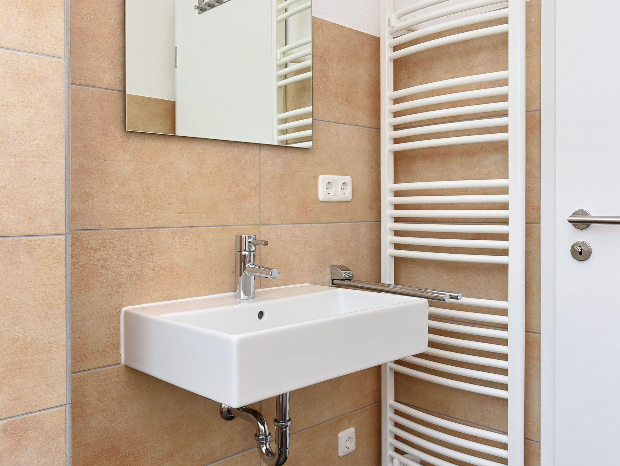 zweites Badezimmer mit Dusche, Waschtisch und WC