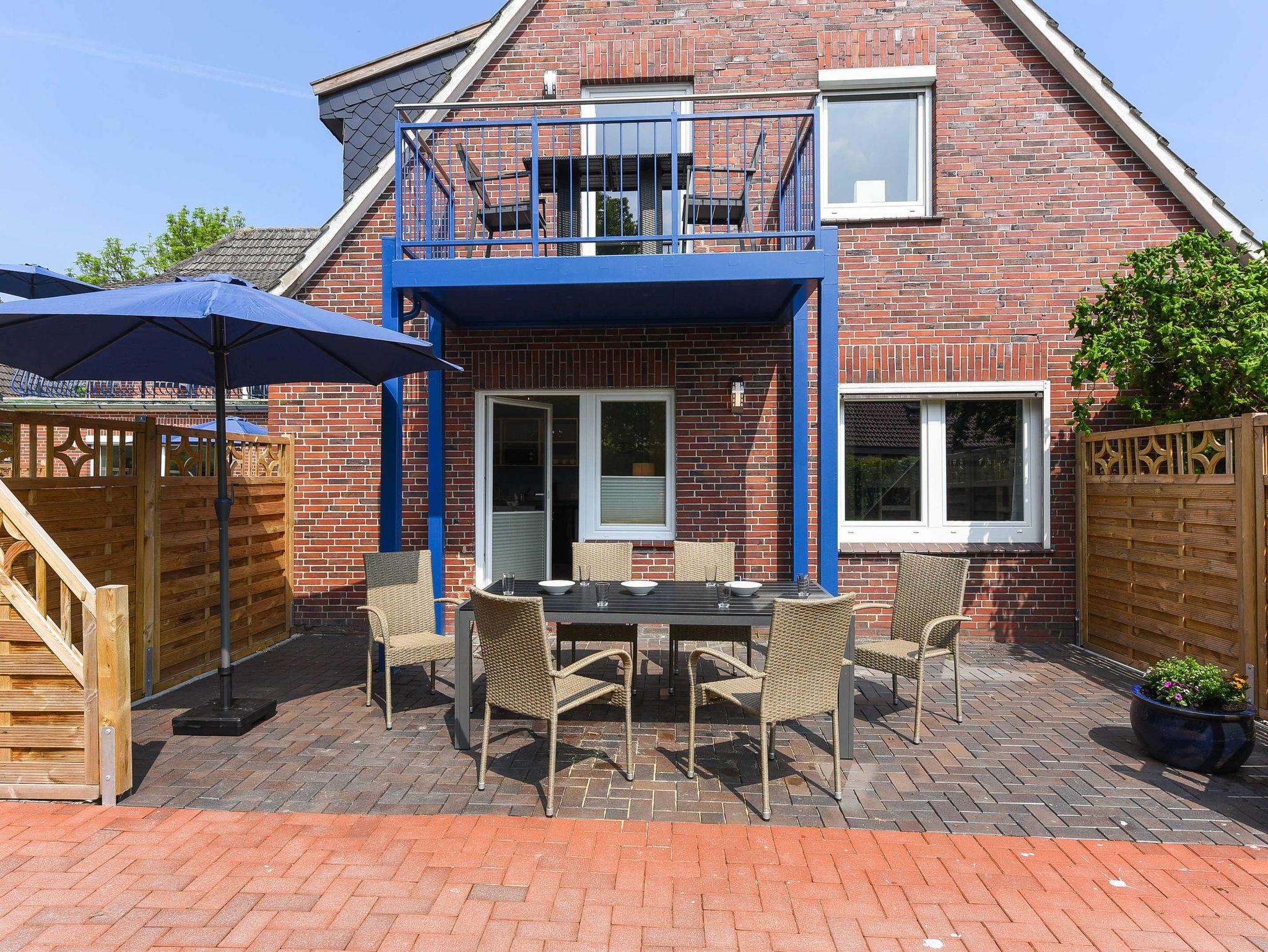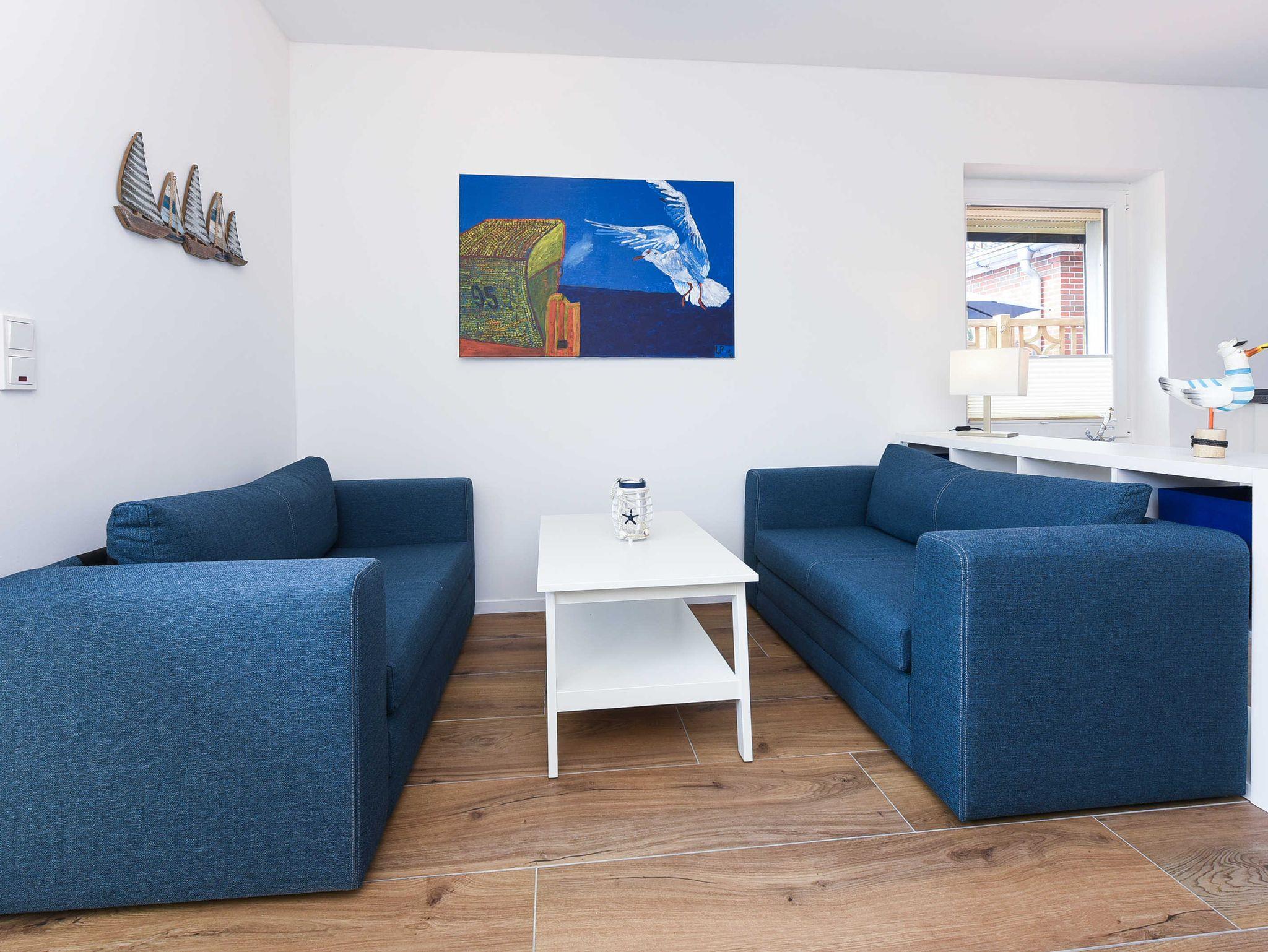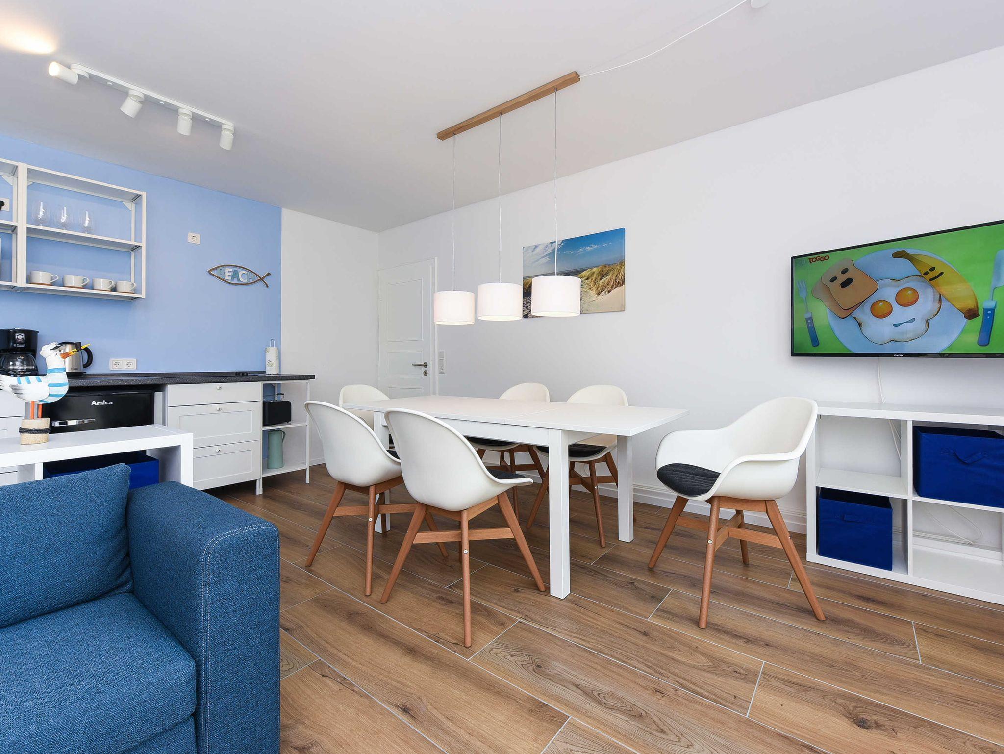 Modern und familienfreundlich: Ferienwohnung 5 im Blauen Haus in Bensersiel, nur 200 Meter vom Nordseedeich entfernt.