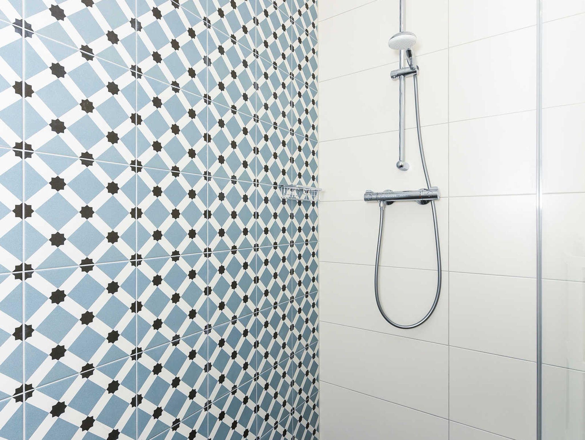 Badezimmer mit Dusche und Waschtisch