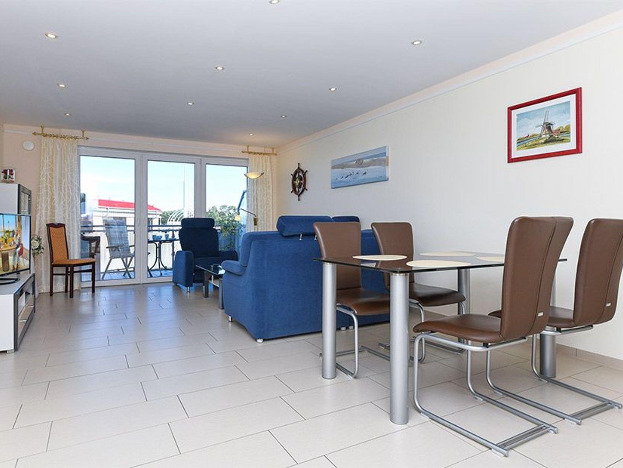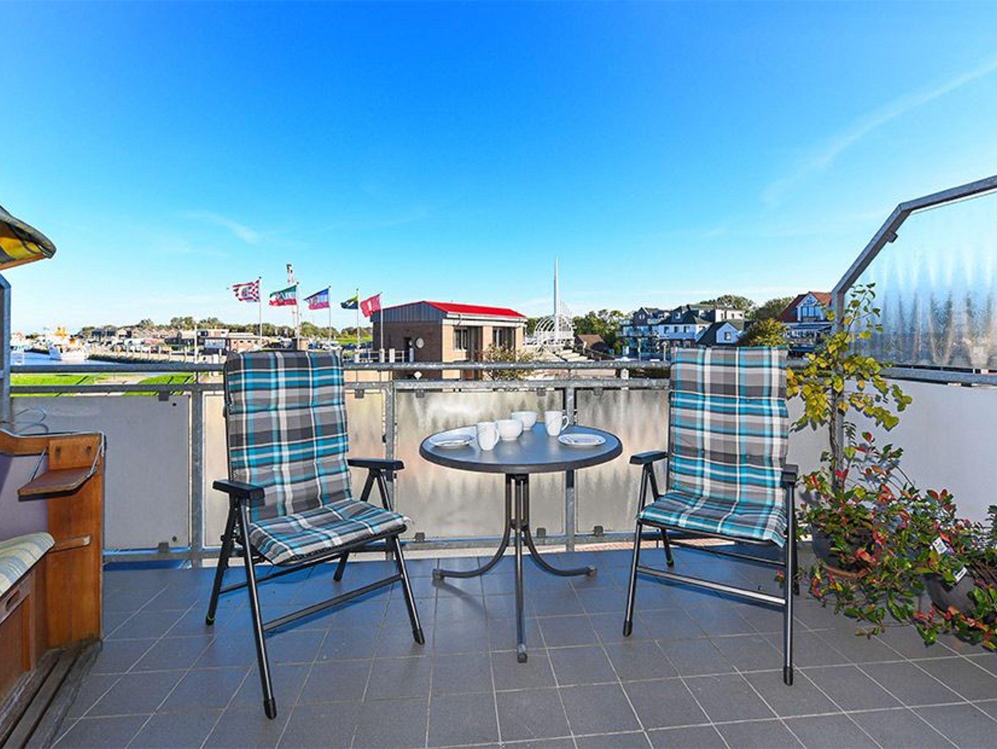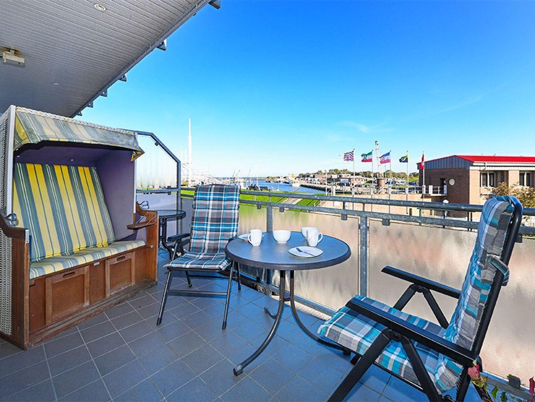 Moderne Ferienwohnung in Bensersiel mit Balkon, Meerblick und direktem Zugang zum Hafen und Strand.