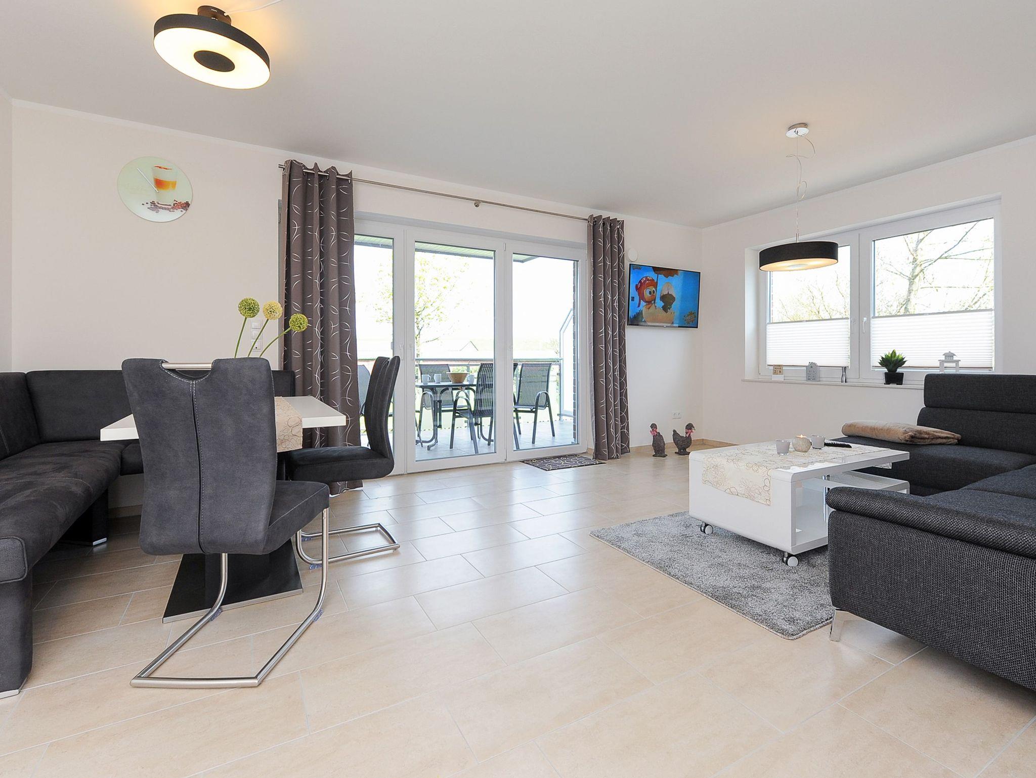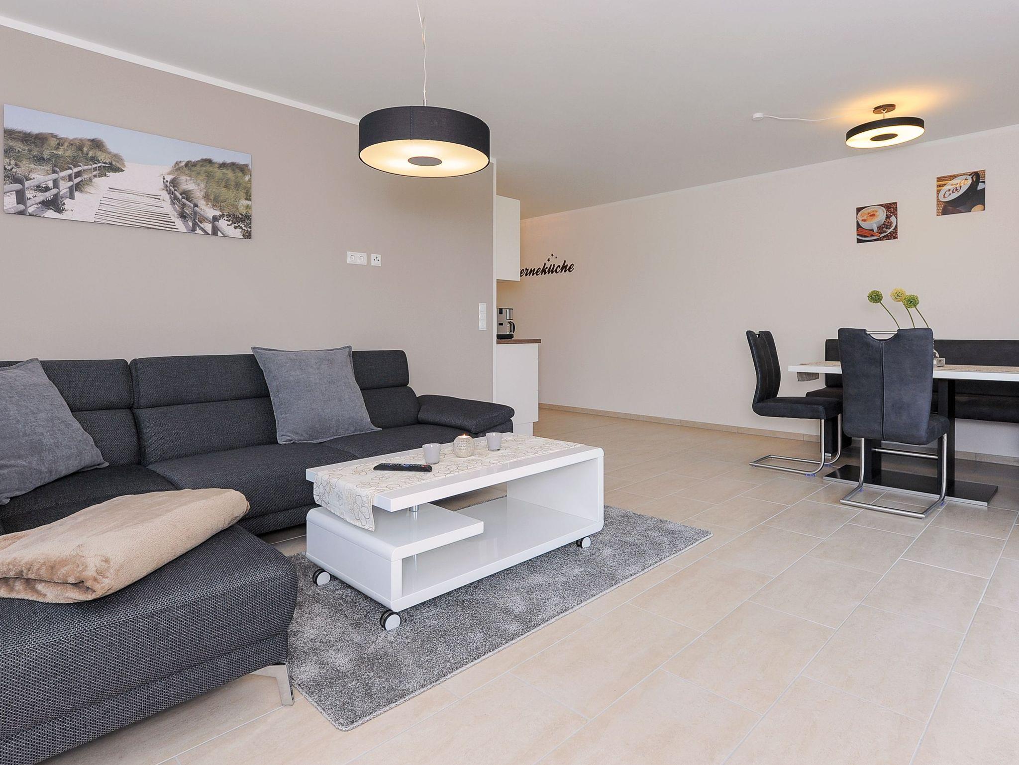 Moderne Ferienwohnung Sommerwind in Bensersiel, direkt an der Nordseetherme mit Terrasse und WLAN.