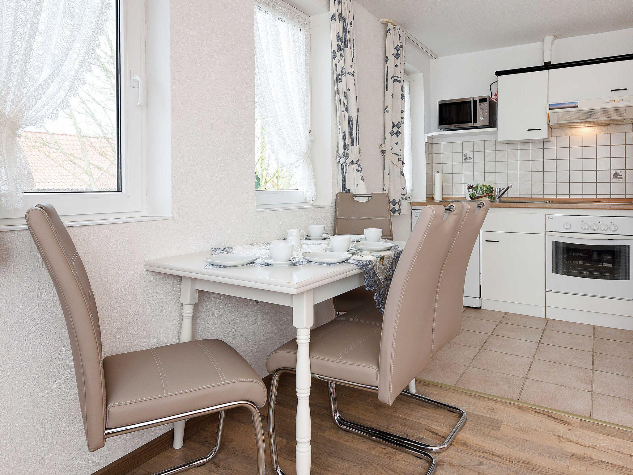 Größe ca. 48 Quadratmeter, Wohnraum mit integrierter Küche, Schlafzimmer, zweites separates, Schlafzimmer/Kinderzimmer, Badezimmer mit Dusche, Waschtisch und WC, Obergeschoss, Terrasse (Sitzgruppe im Garten), optimal für 2 bis 4 Personen und zusätzlich ein Kleinkind.