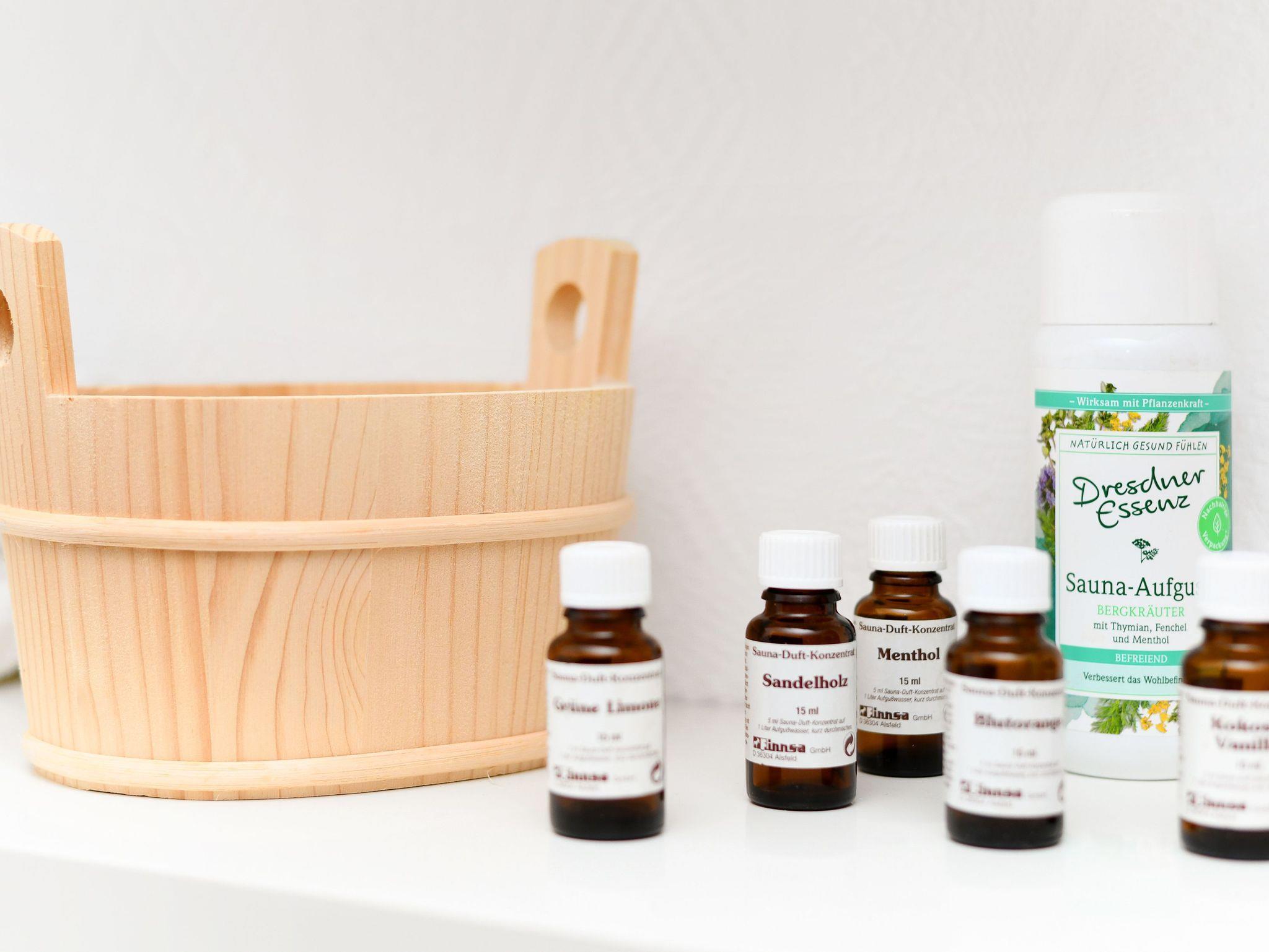 Die hauseigene Sauna kann ebenfalls nach vorheriger Absprache von unseren Gästen genutzt werden.