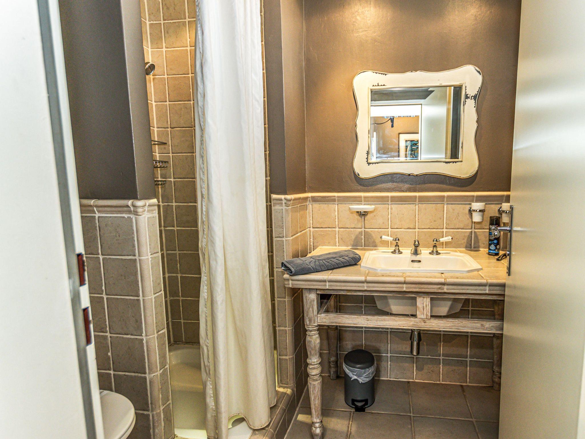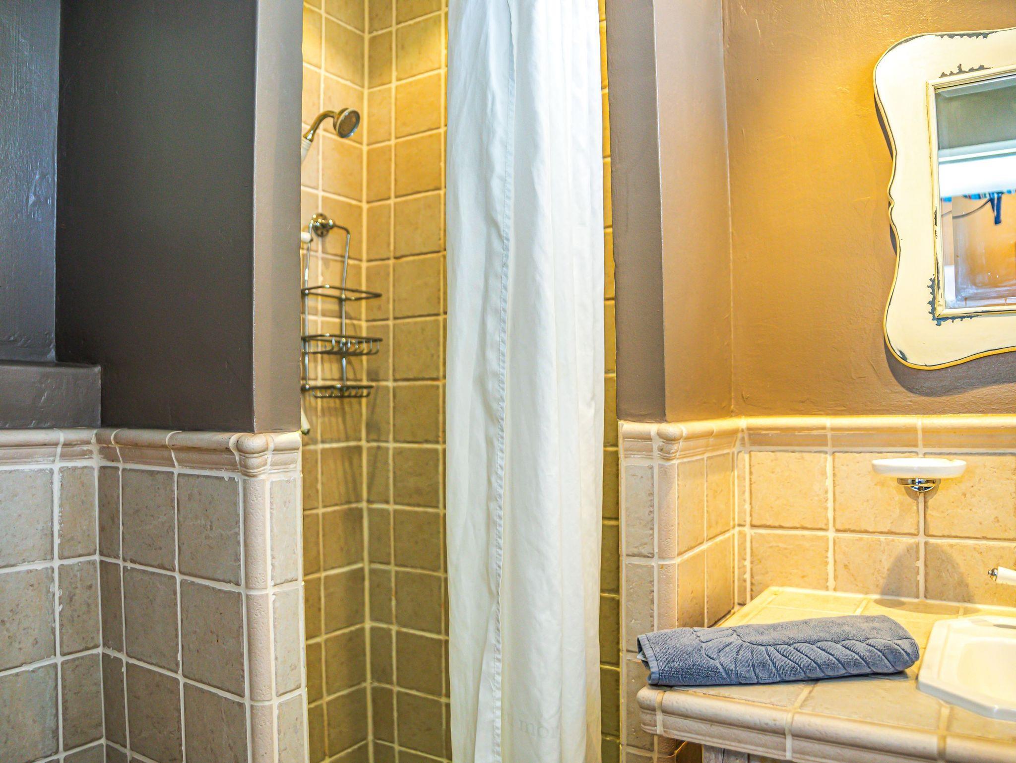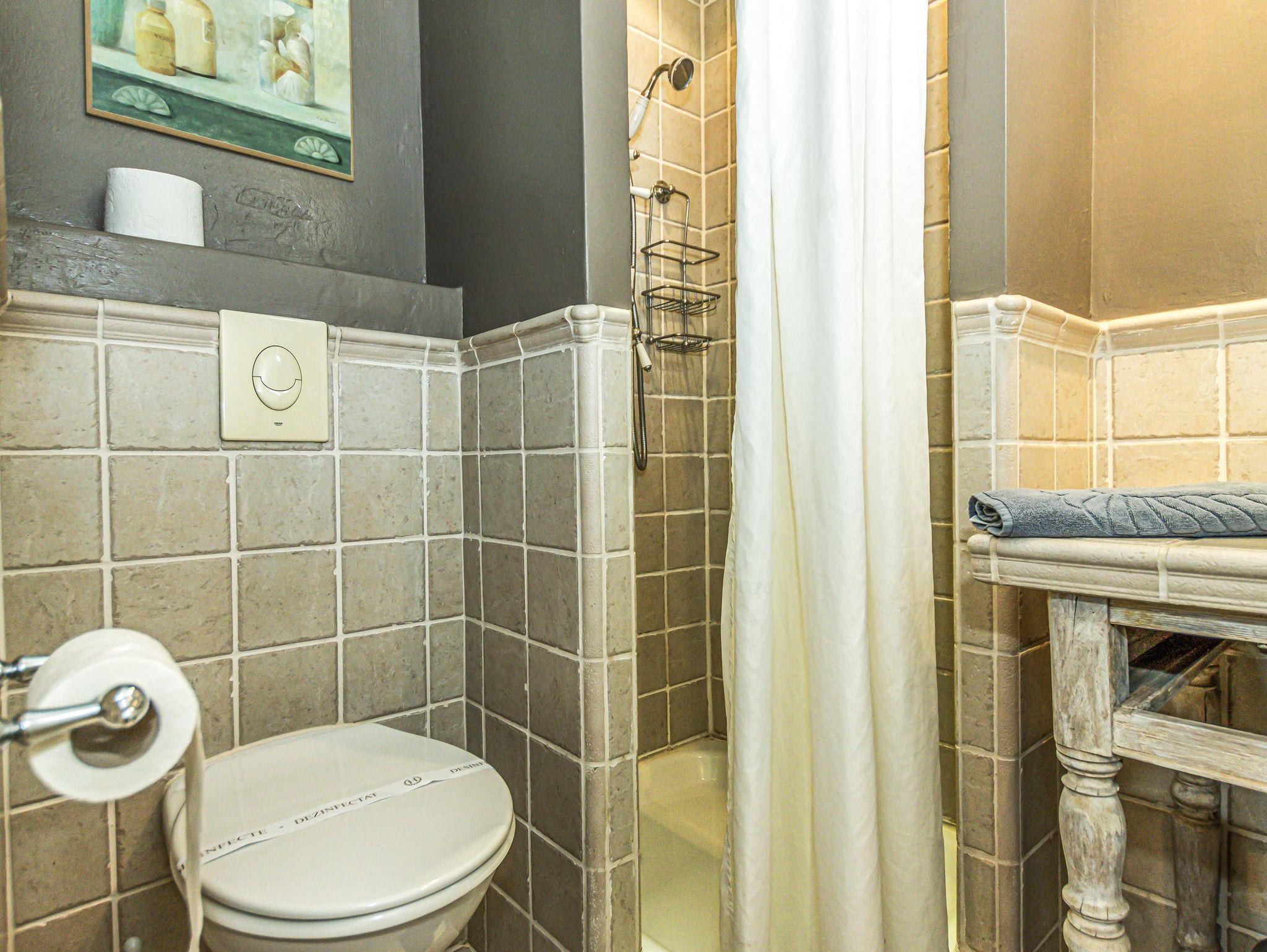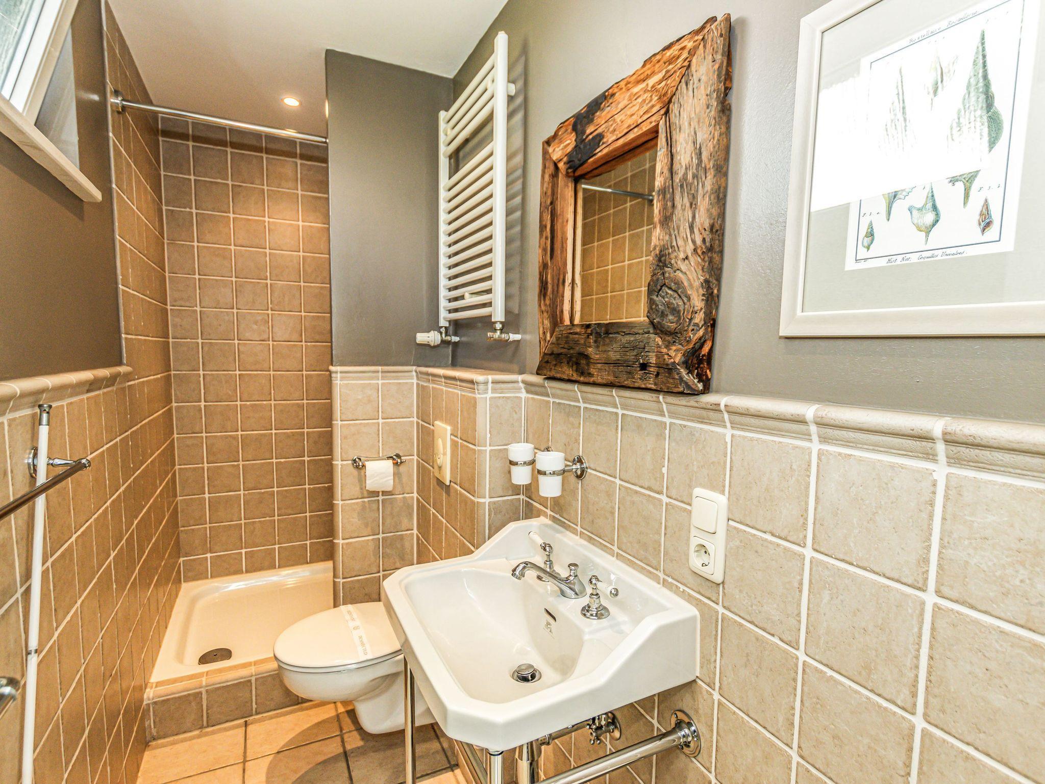 • zweites Badezimmer mit Dusche, Waschtisch und WC