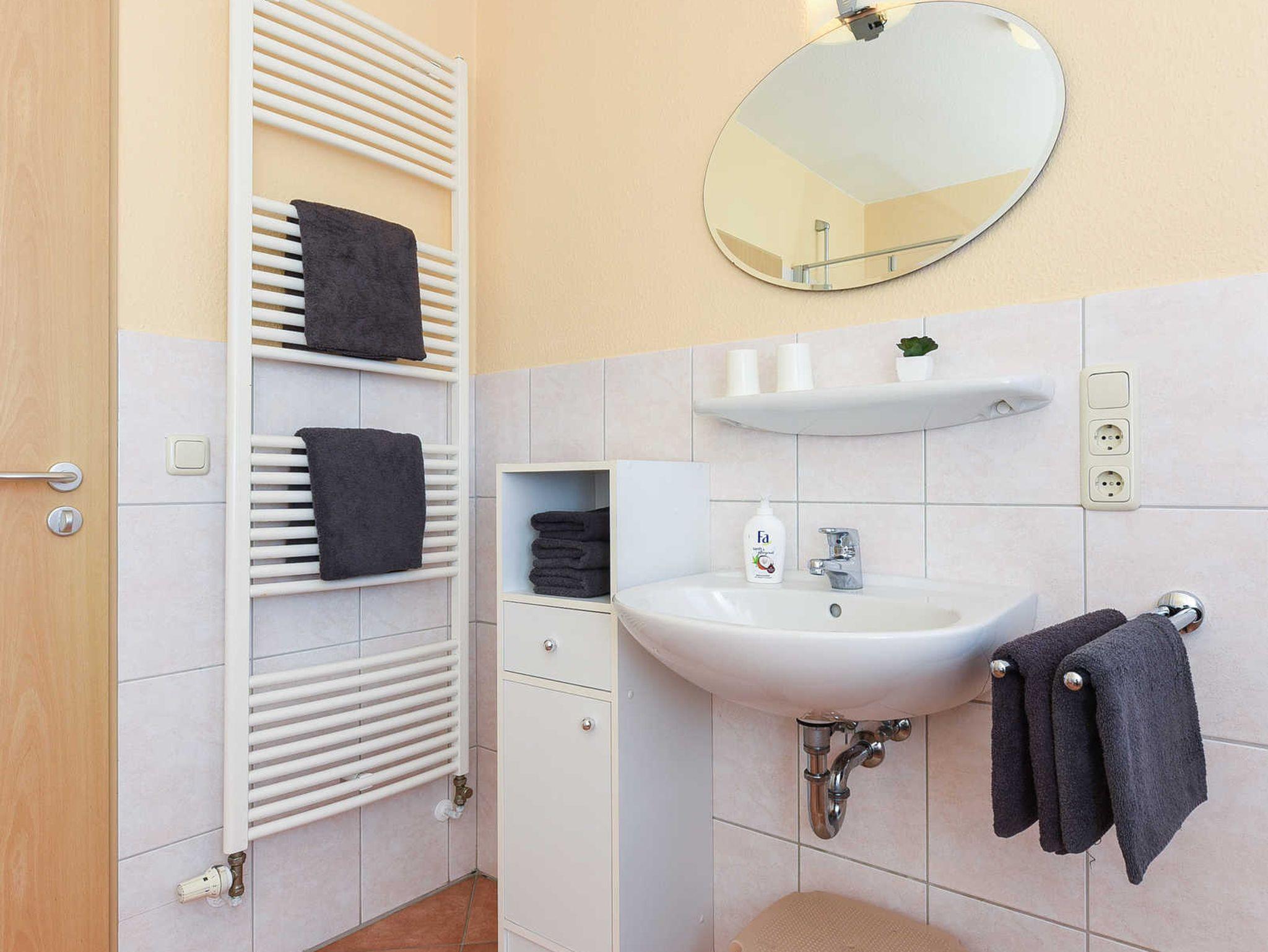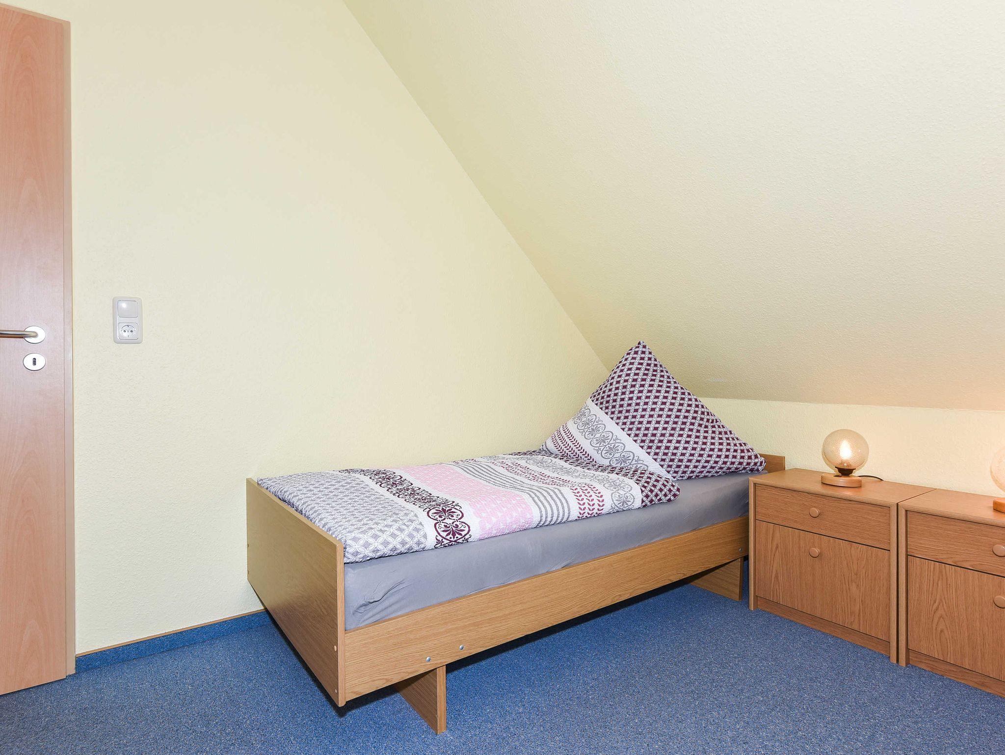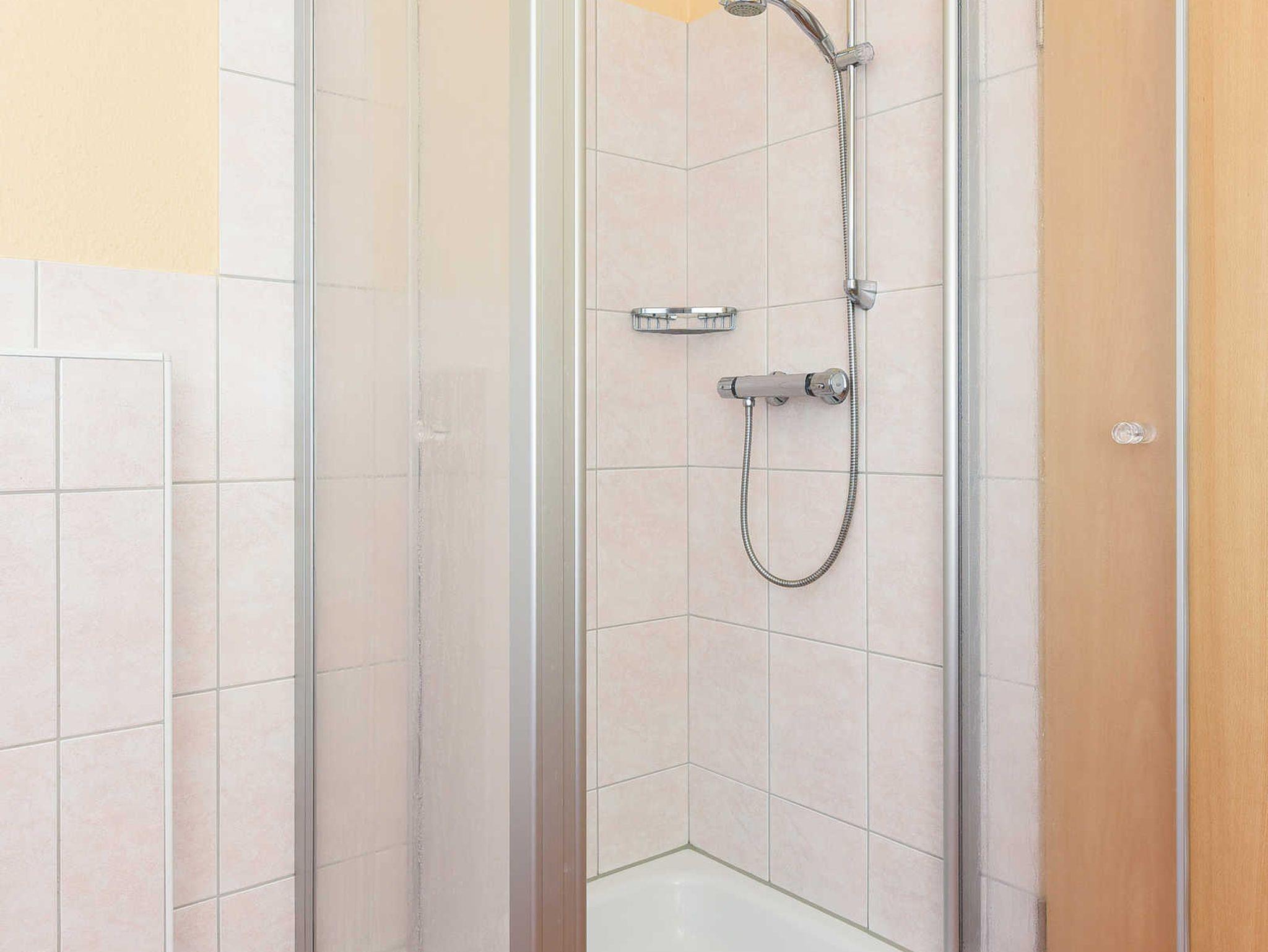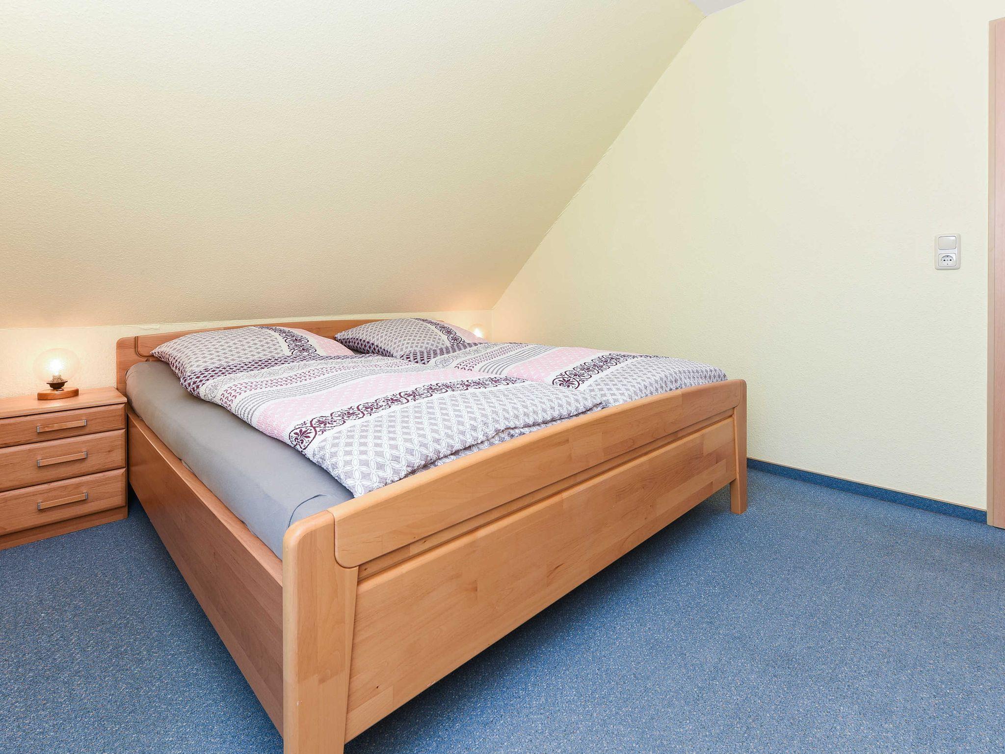 Größe ca. 65 Quadratmeter, Wohnraum mit integrierter Küche, Schlafzimmer, zweites, separates Schlafzimmer, Badezimmer mit Dusche, Waschtisch und WC, Obergeschoss, Balkon, Internetzugang über WLAN möglich, optimal für 2 bis 4 Personen.