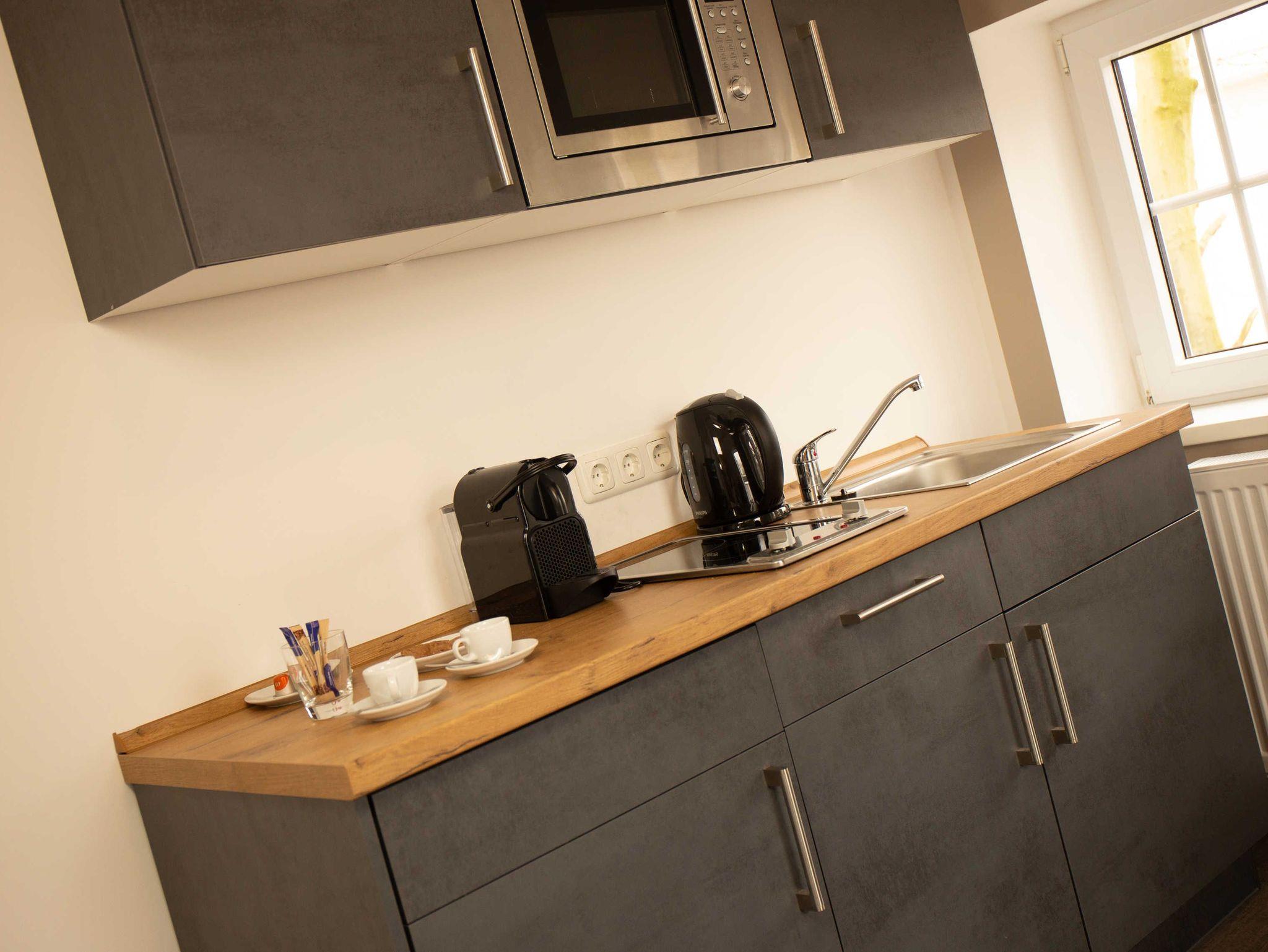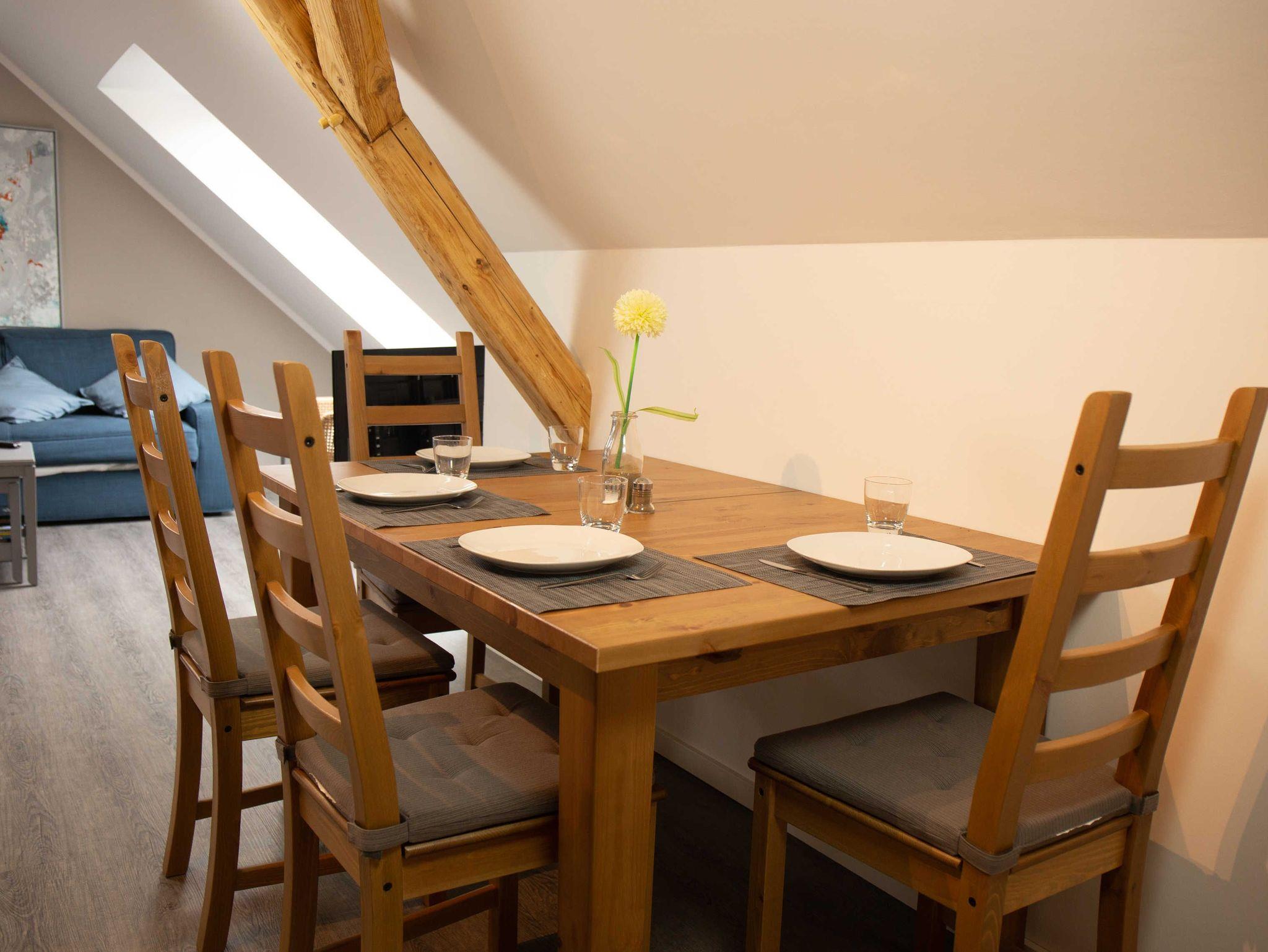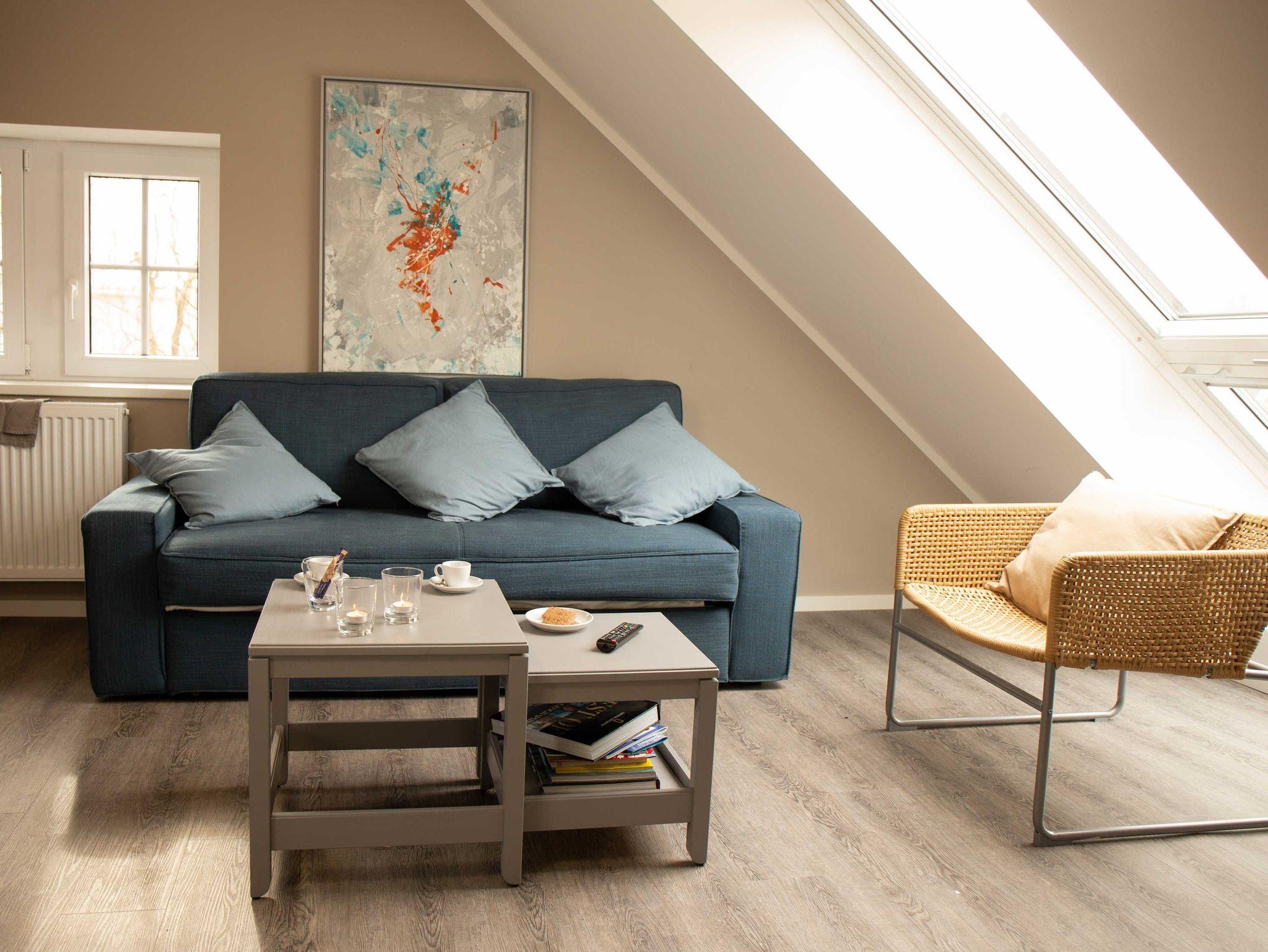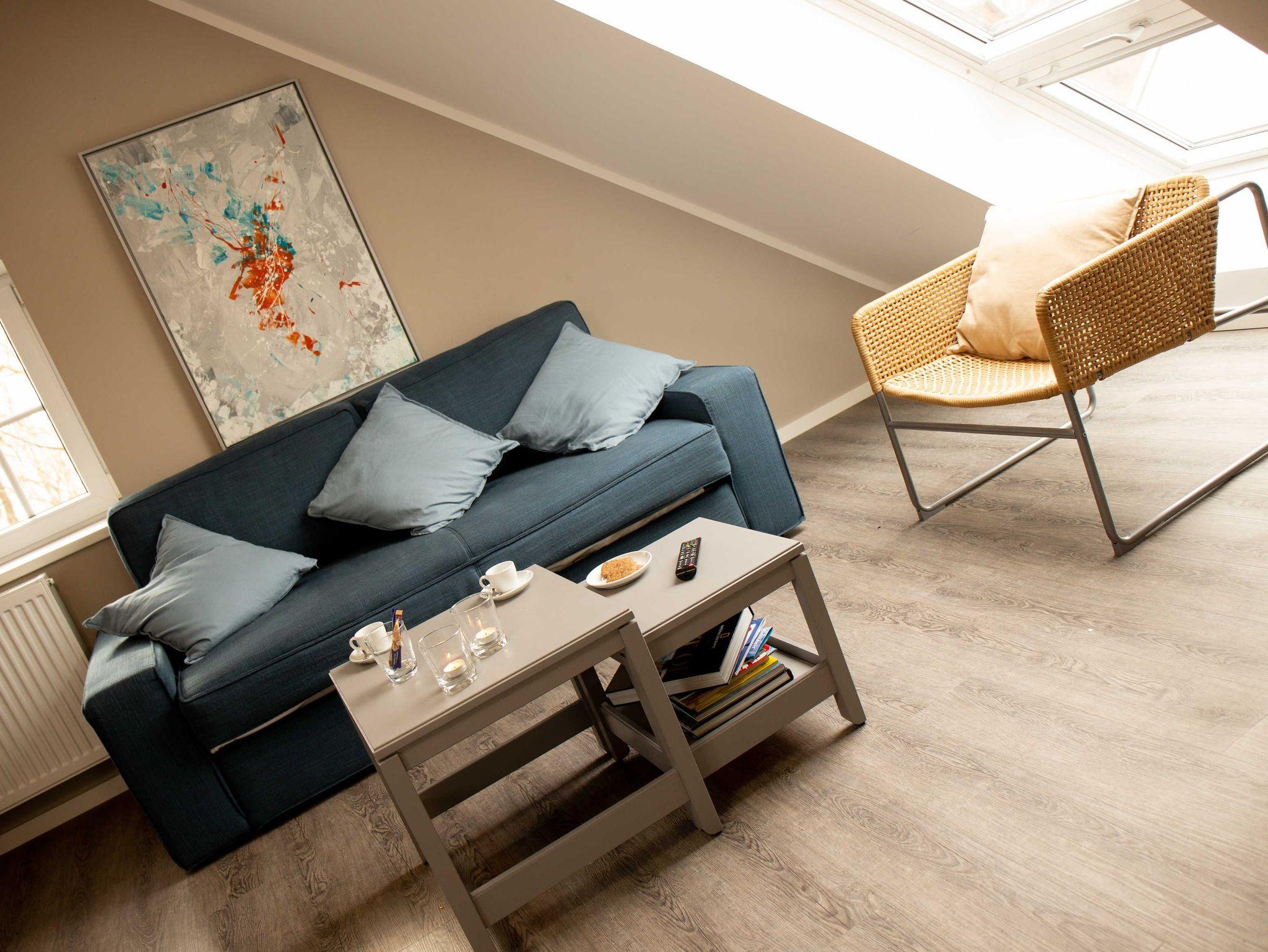 Ihre Unterkunft verfügt über kostenfreies WLAN. Der Wohnbereich mit zusätzlicher Schlafcouch bietet zudem eine gut ausgestattete offene Küchenzeile mit Kühlschrank, Gefrierfach, Kaffeemaschine, Wasserkocher und Mikrowelle. Das Appartement verfügt über einen Esstisch für 4 Personen und einen behaglichen Sitzbereich. im separaten Schlafzimmer steht Ihnen ein komfortables Boxspringbett zur Verfügung. Im stilvollen Badezimmer befinden sich eine große begehbare Dusche sowie ein Waschtisch mit Föhn. Des Weiteren ist im Buchungspreis ein Wäschepaket mit Handtüchern und Bettwäsche enthalten.
