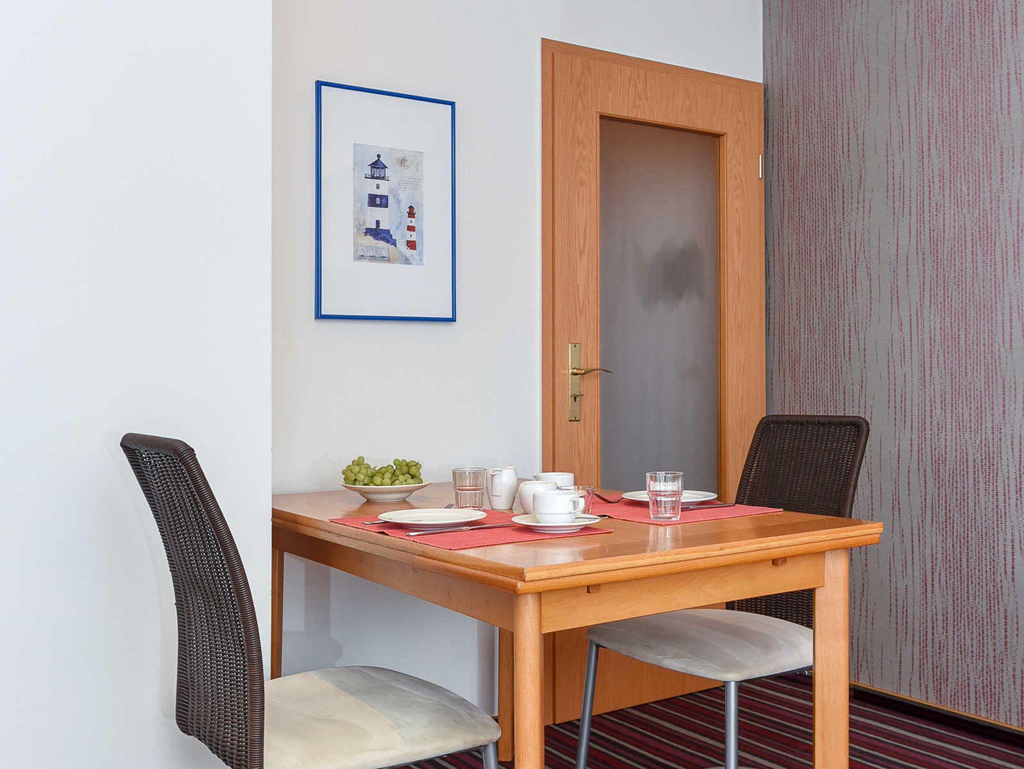 Die Apartments im „Kapitänshaus“ sind ungefähr 33 bis 50 Quadratmeter groß und für jeweils zwei Personen ausgelegt. Sie sind freundlich-modern und sehr komfortabel gestaltet und hervorragend ausgerüstet. So verfügen alle Apartments zum Beispiel über einen eigenen möblierten Balkon, Kabel-Fernsehen, Safe und Telefon mit eigener Durchwahl. Die modernen Küchen sind voll ausgestattet mit allem, was Sie im Urlaub benötigen werden und im Haus stehen Ihnen Waschmaschine und Wäschetrockner zur Verfügung.