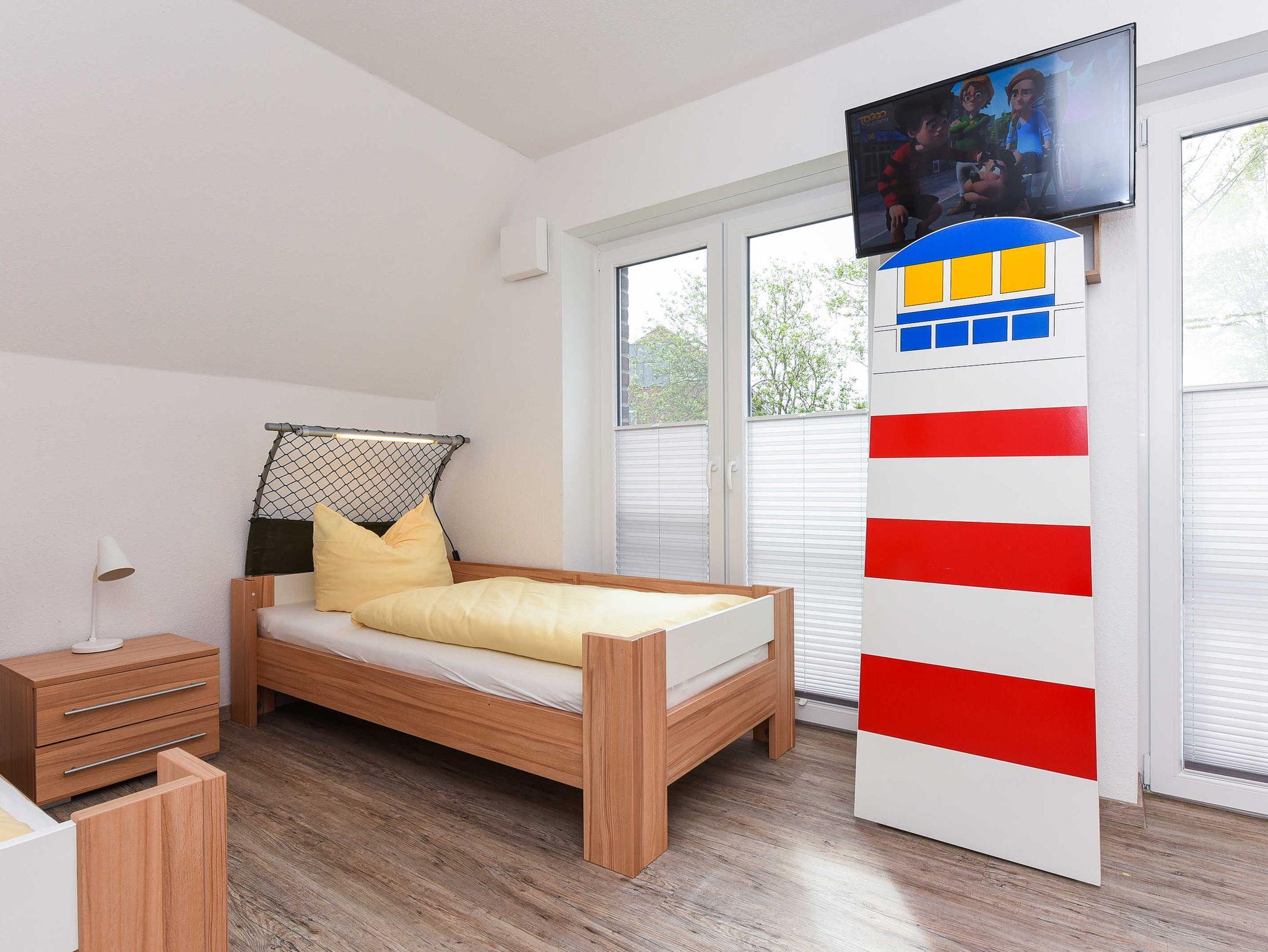 Im Dachgeschoss befindet sich ein Spielzimmer für die Kinder sowie ein separater Fernseher mit einer Playstation 4. Auf der Terrasse befindet sich zusätzlich noch ein Strandkorb.