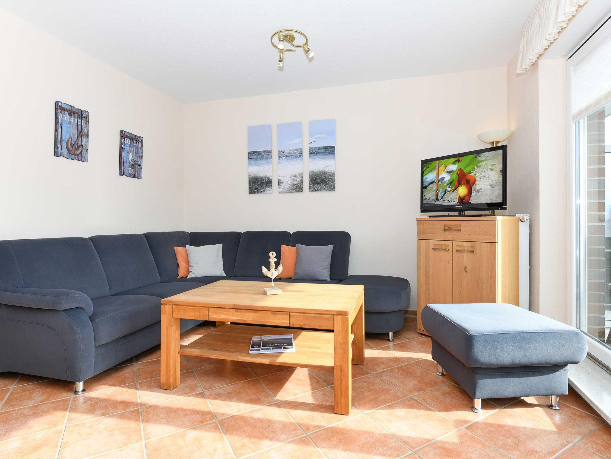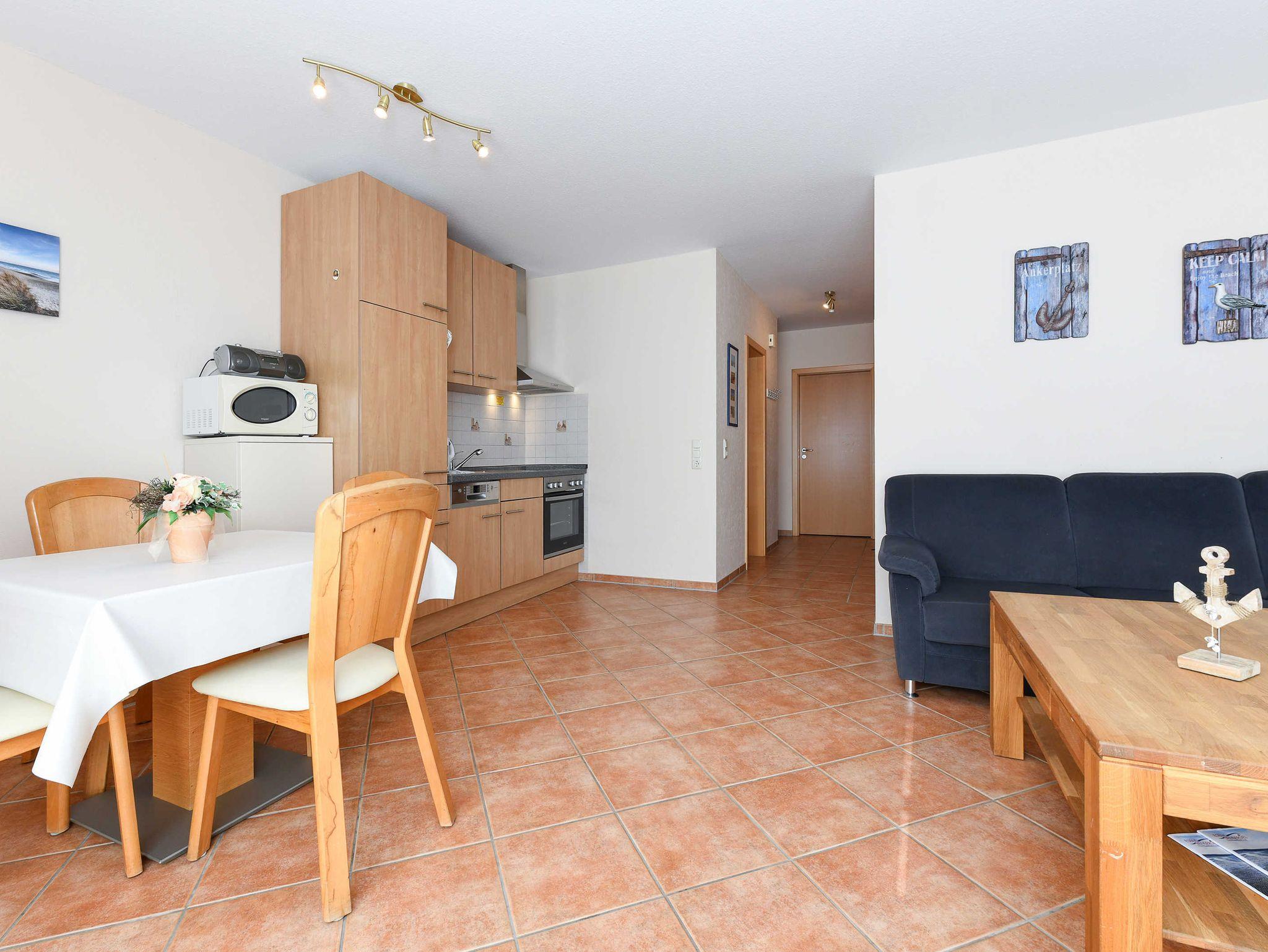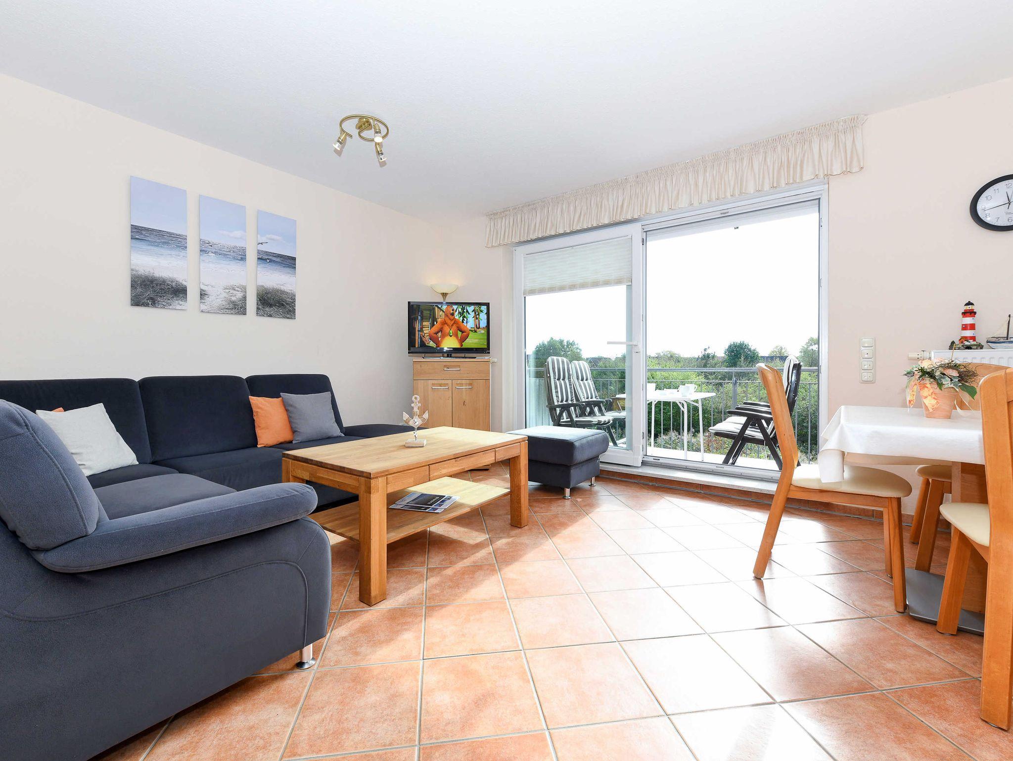 Moderne Ferienwohnung mit Balkon und Blick auf Hafen und Nordsee im Nordseegartenpark Friesenstolz in Bensersiel.