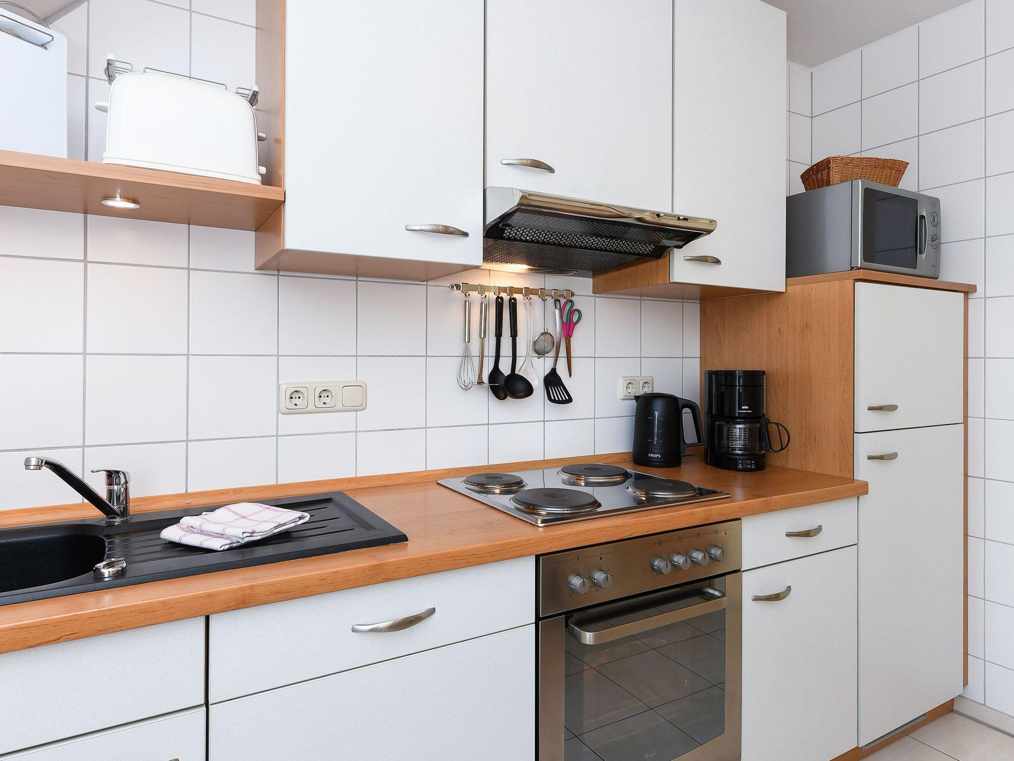 Größe ca. 70 Quadratmeter, Wohnzimmer, Küche, Schlafzimmer, zweites separates Schlafzimmer/Kinderzimmer, Badezimmer mit Dusche, Waschtisch und WC, Obergeschoss, Balkon, optimal für 1 bis 4 Personen und zusätzlich ein Kleinkind.