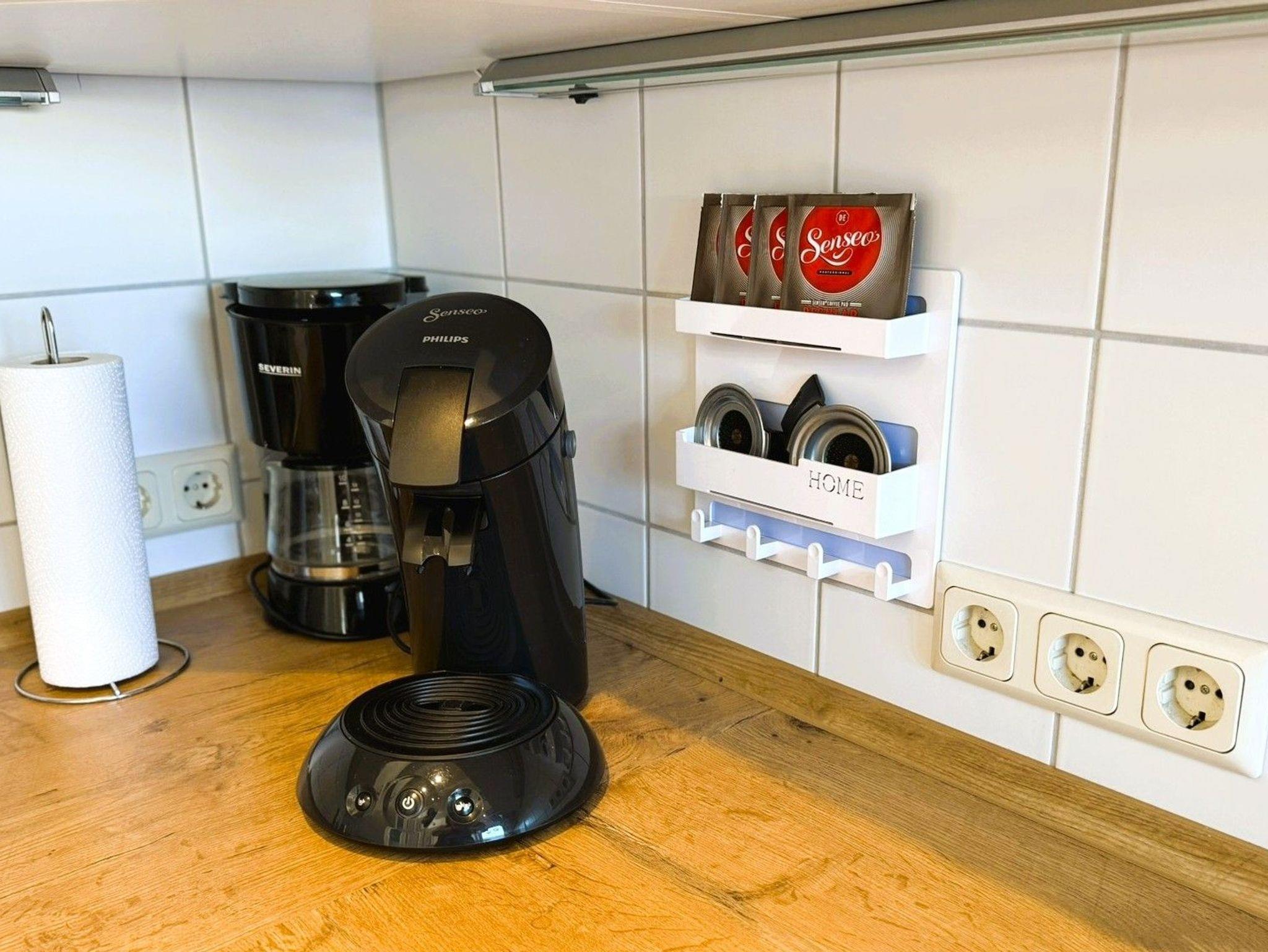 Gut ausgestattete Küche (Spülmaschine, Waschmaschine, Mikrowelle, Toaster, Mixer, Stabmixer, Backofen etc.). Es stehen eine Senseo Kaffeemaschine, eine Kaffeemaschine und eine Heißluftfritteuse zur Verfügung. 4 Küchentücher liegen für Sie bereit.