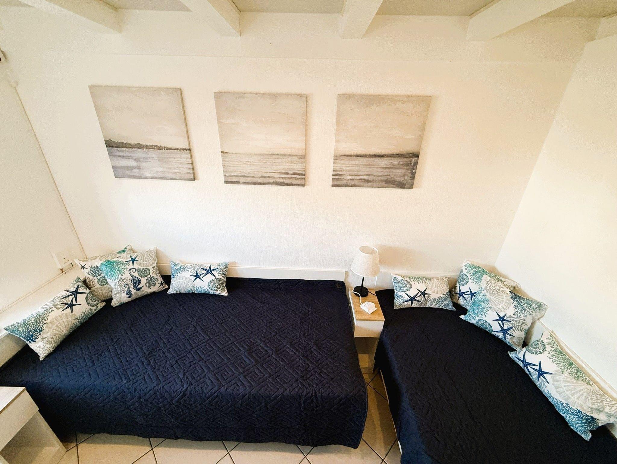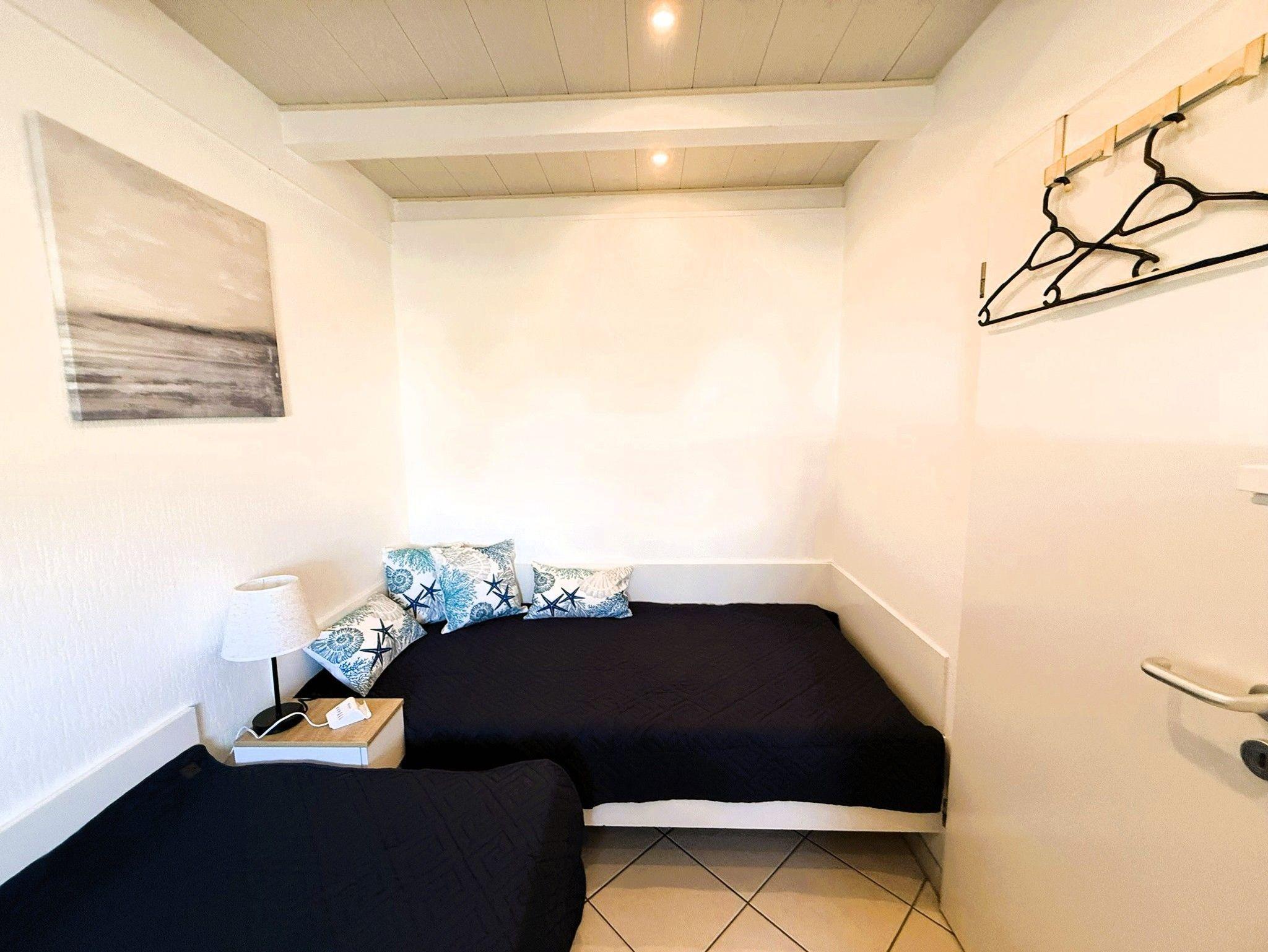 3. Schlafzimmer im Erdgeschoss: 2 feststehende Einzelbetten und eine Kommode.