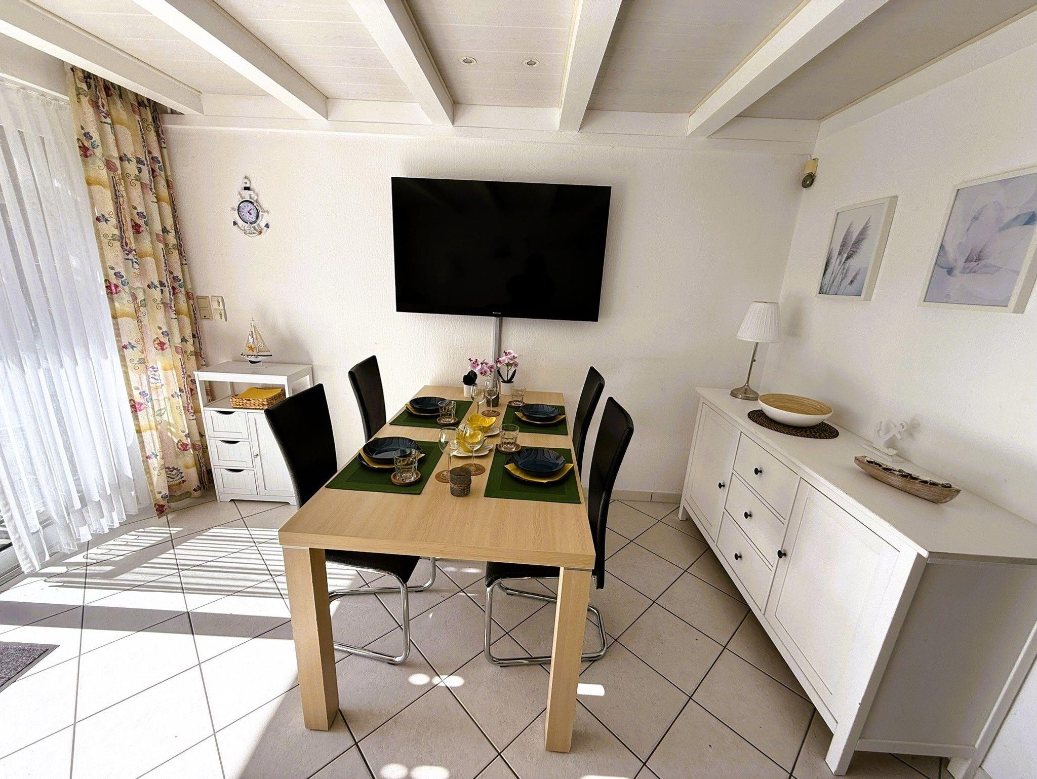 Charmantes zweistöckiges Ferienhaus in Bensersiel mit WLAN, Terrasse, eingezäuntem Garten und Platz für bis zu 6 Personen.