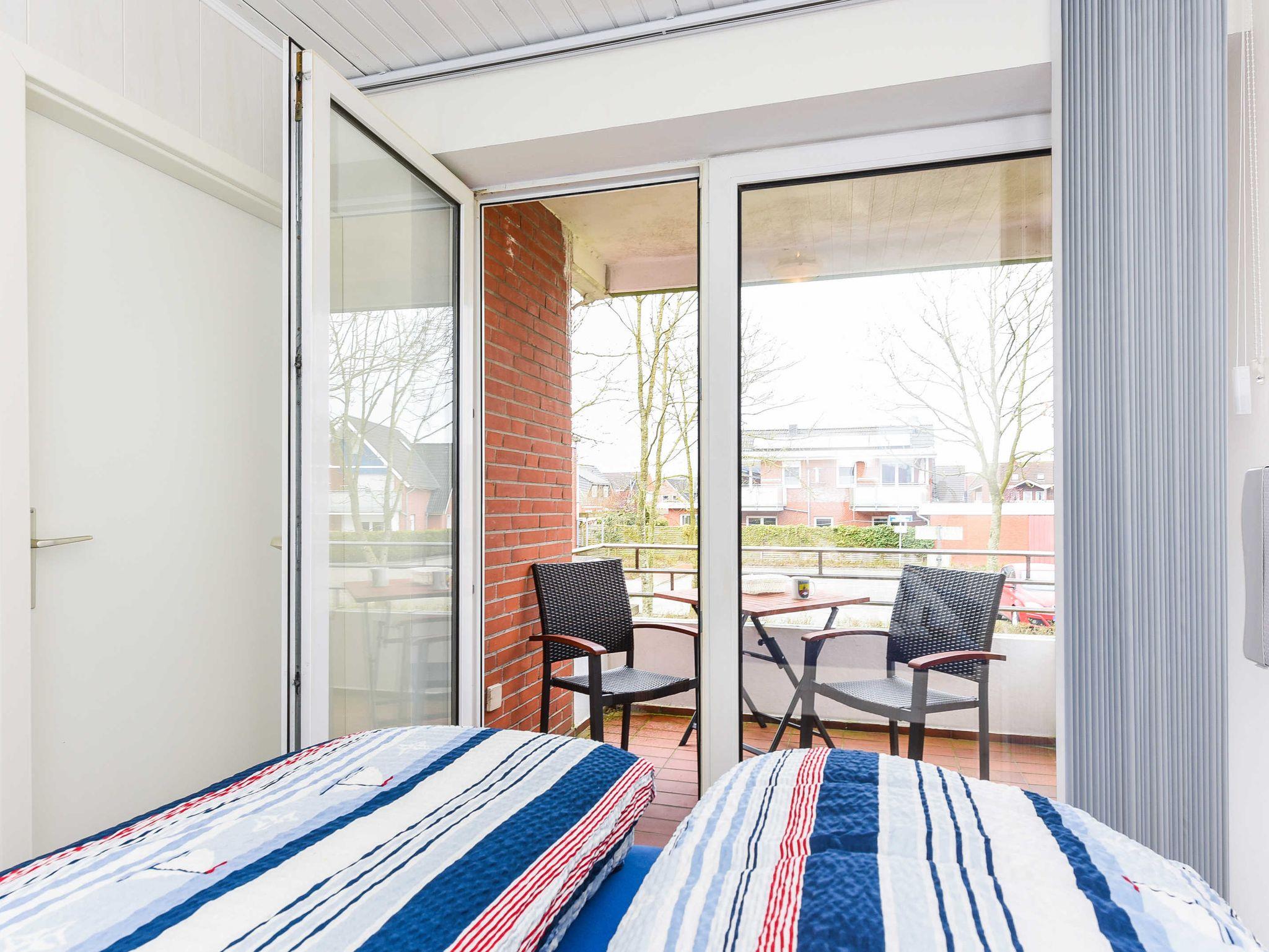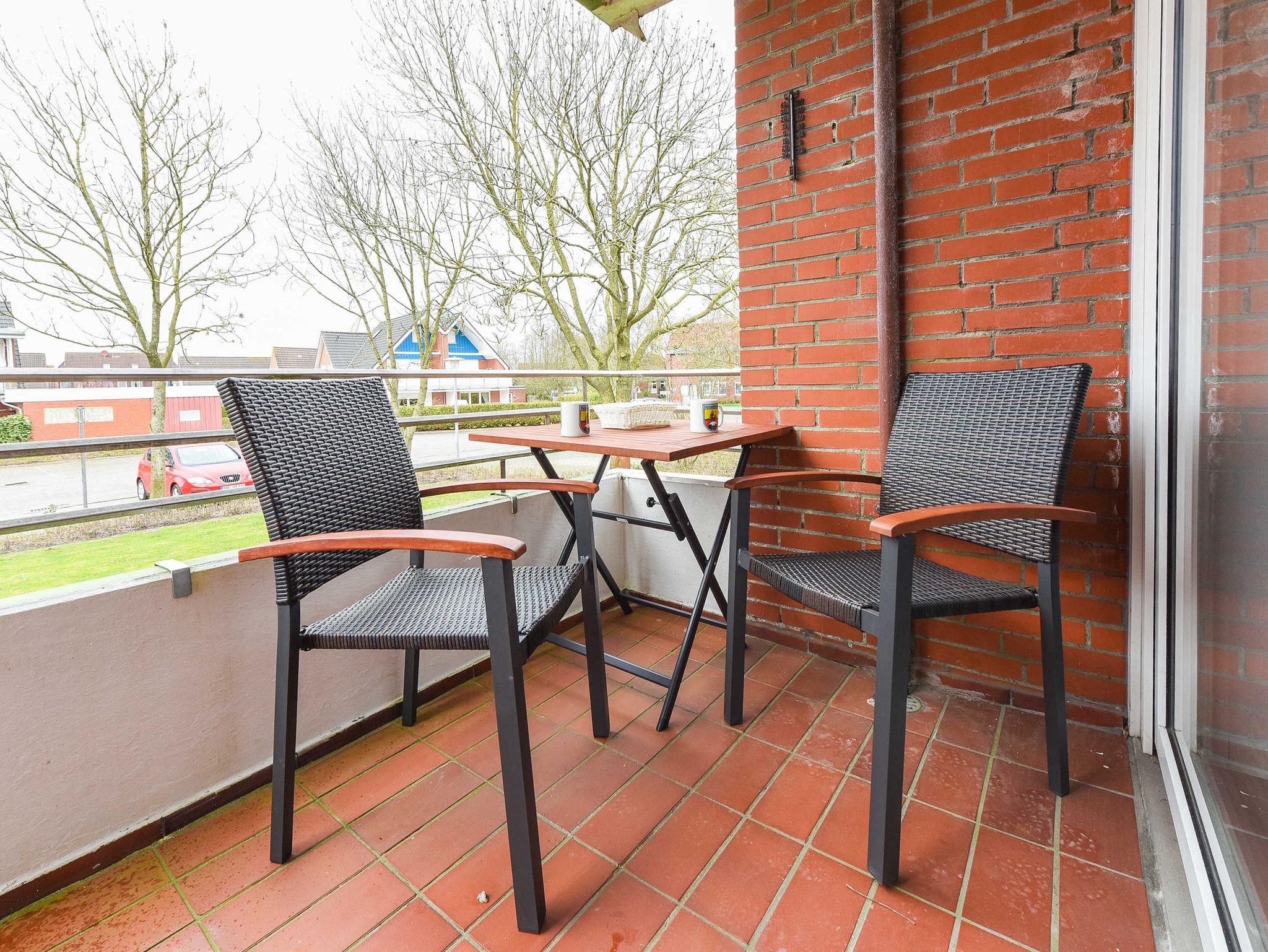 Gemütliche Ferienwohnung Perlmuschel in Bensersiel mit Balkon, WLAN und nahe Nordsee, ideal für ruhigen Urlaub.